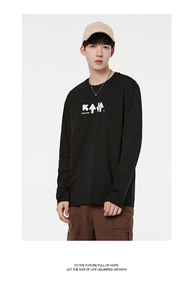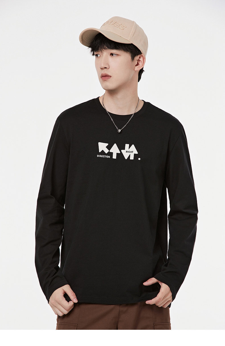 GXG男装【100%棉】秋季时尚简约字母男士圆领百搭长袖t恤K&C