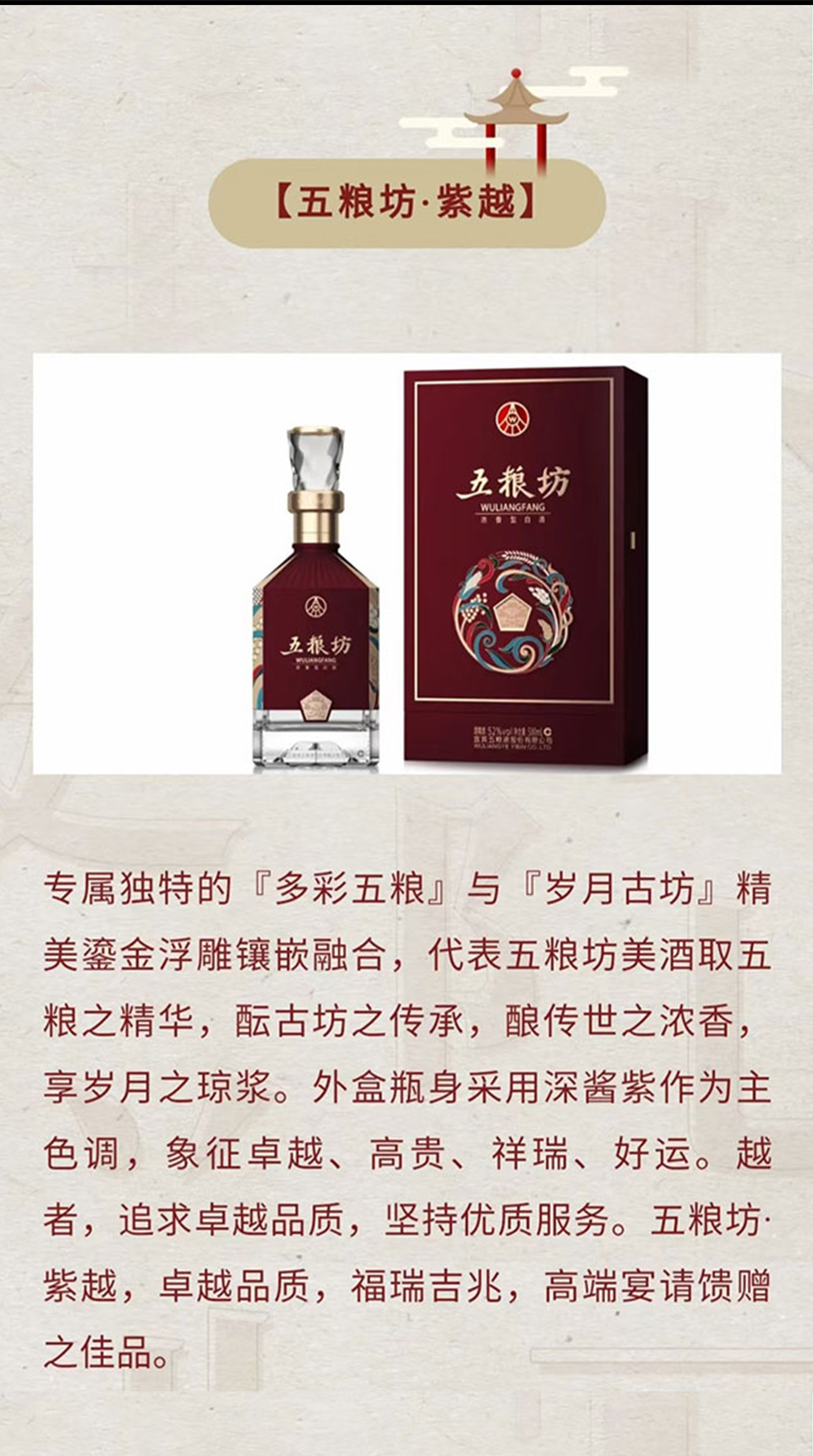 五粮坊酒·紫越52度浓香型白酒500ml*1瓶