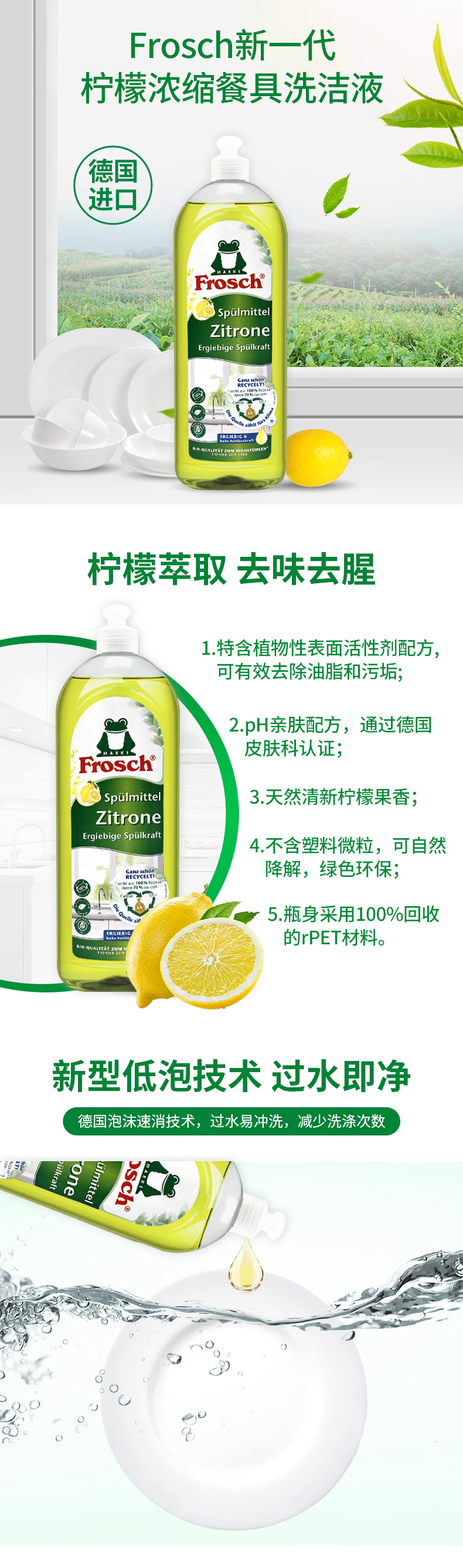 德国进口Frosch新一代柠檬浓缩餐具洗洁液750ml