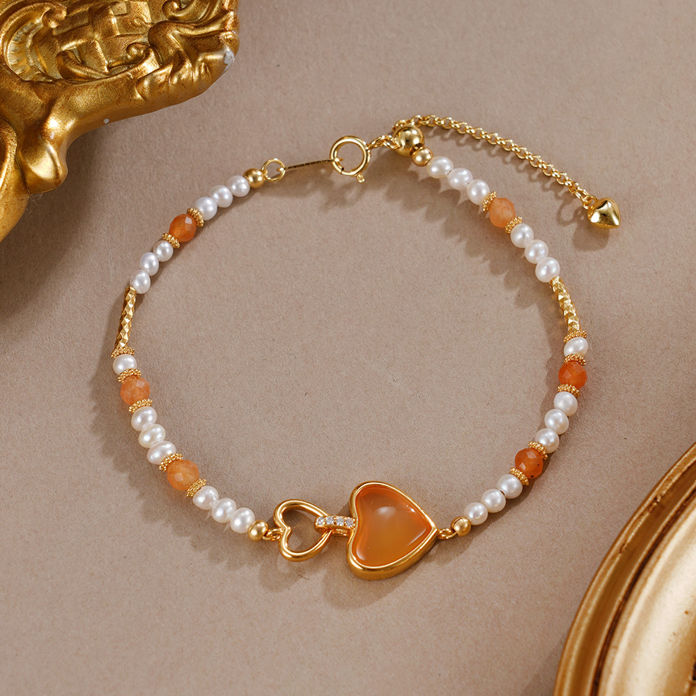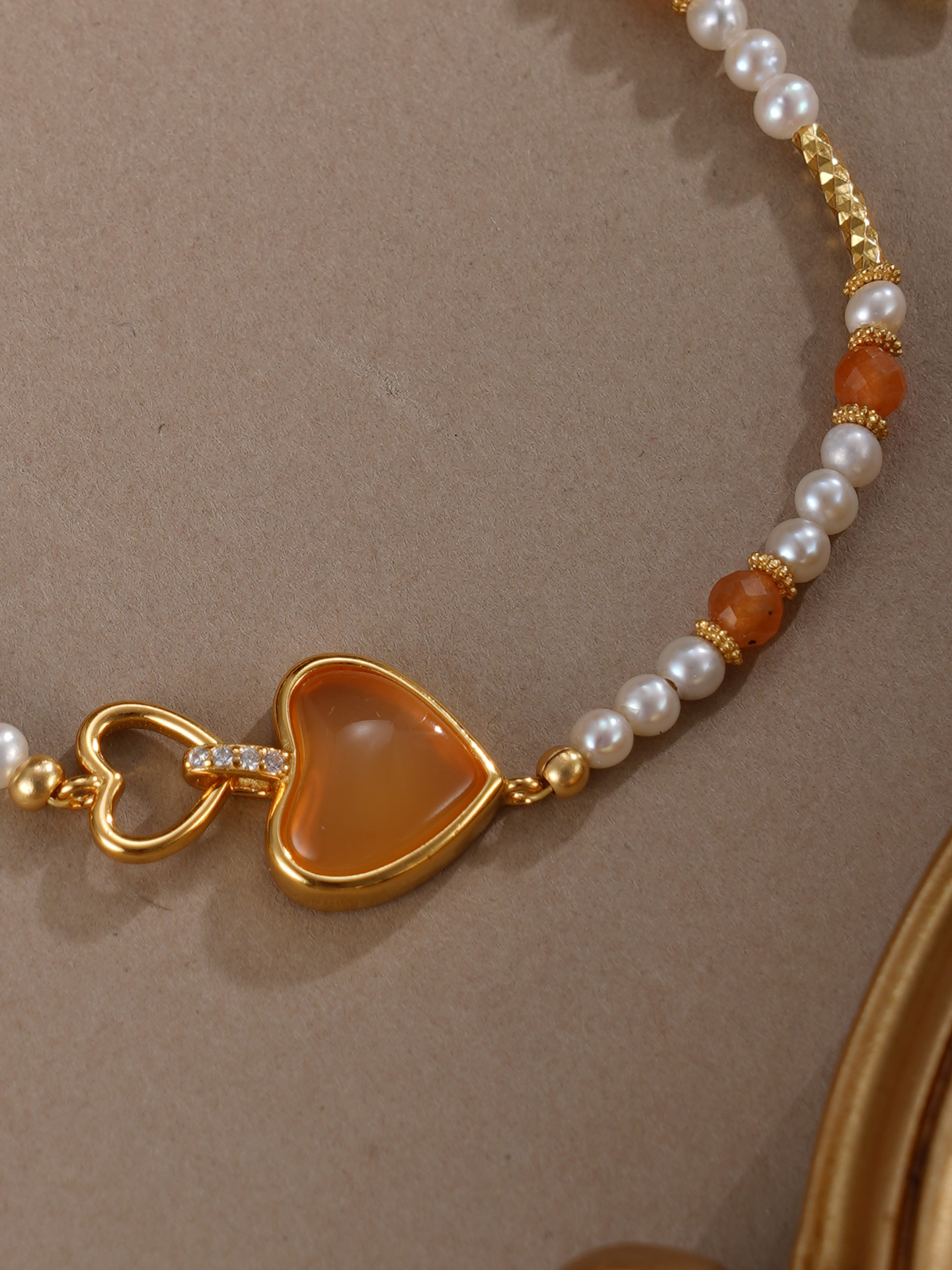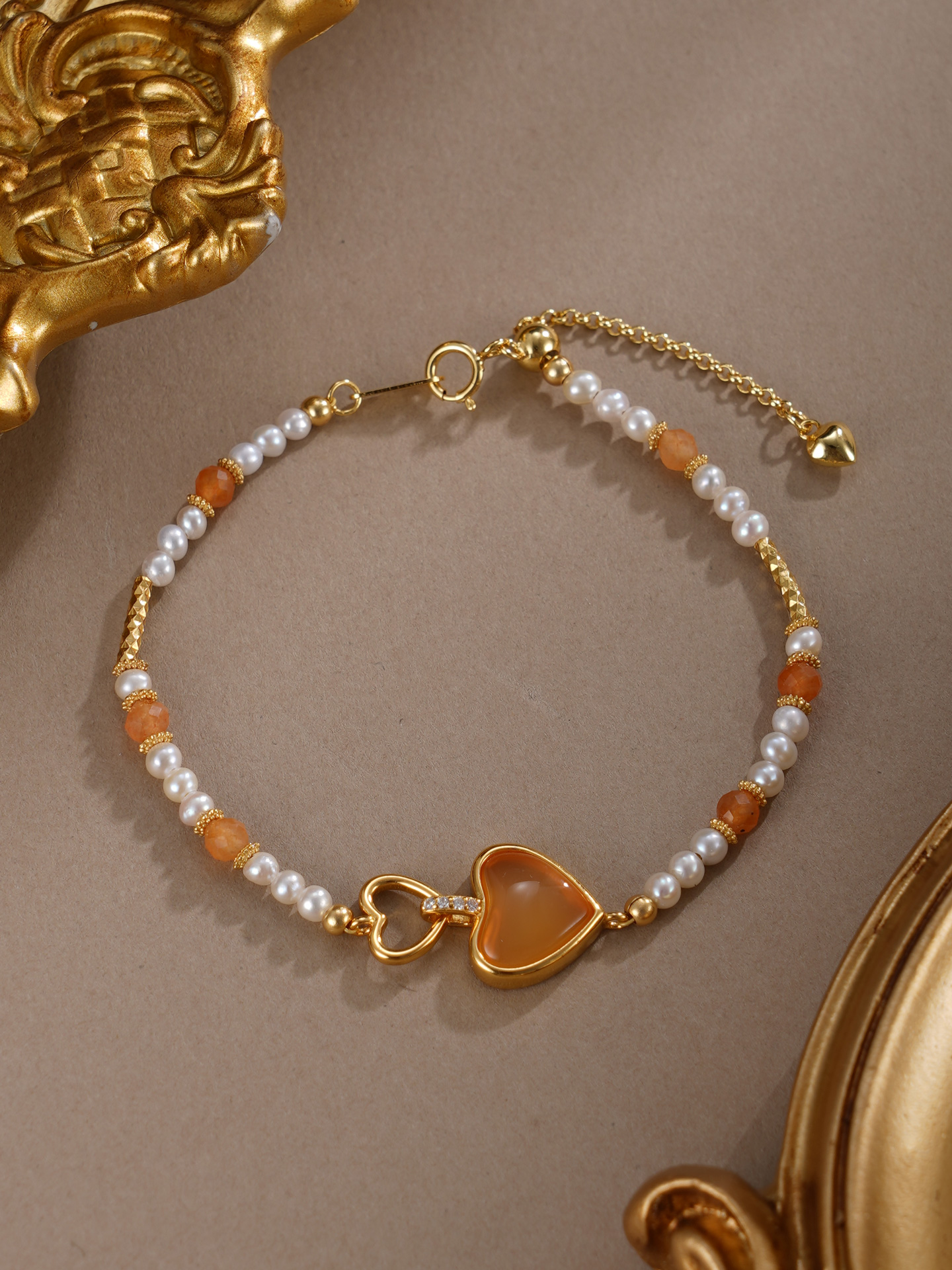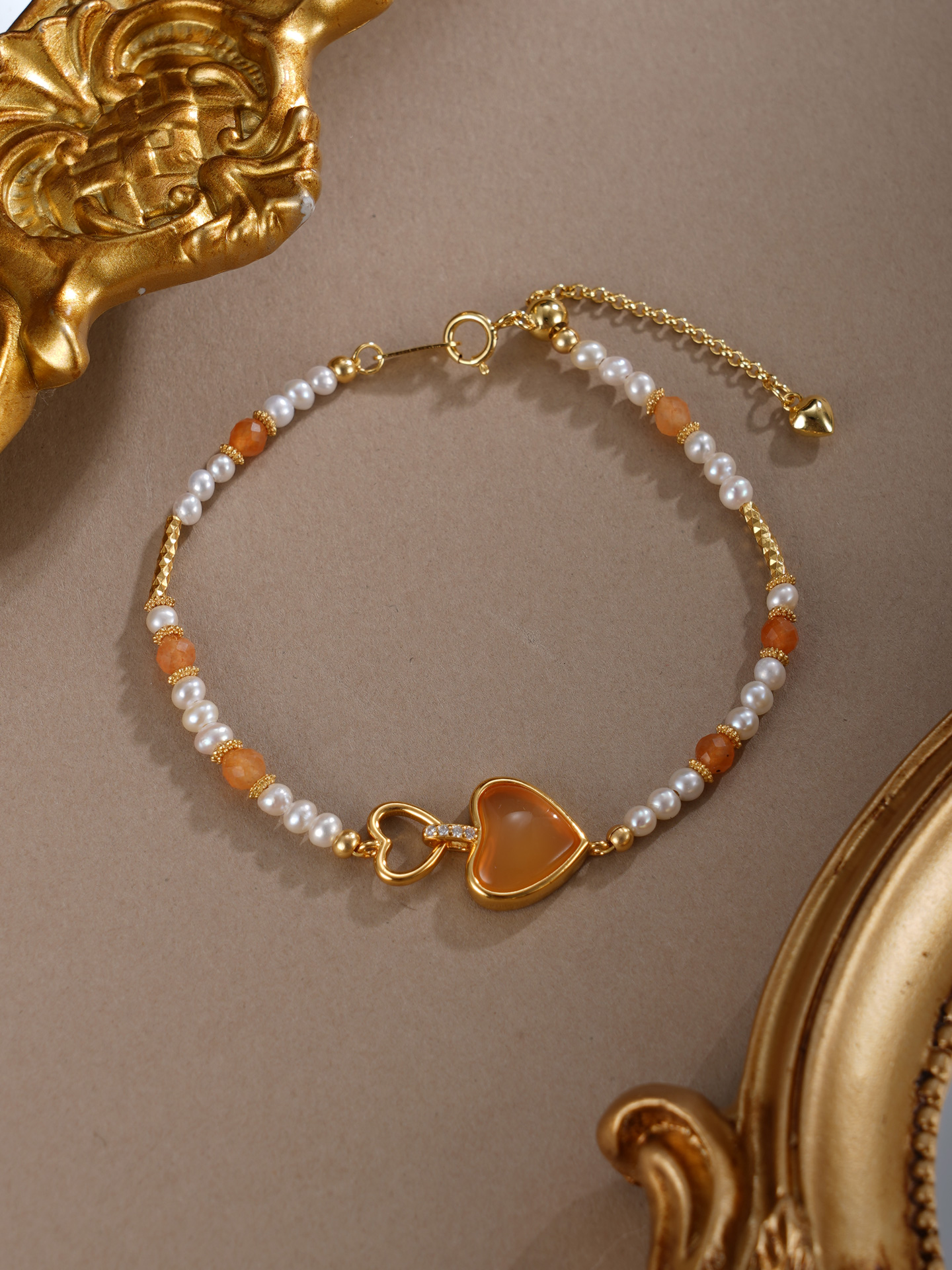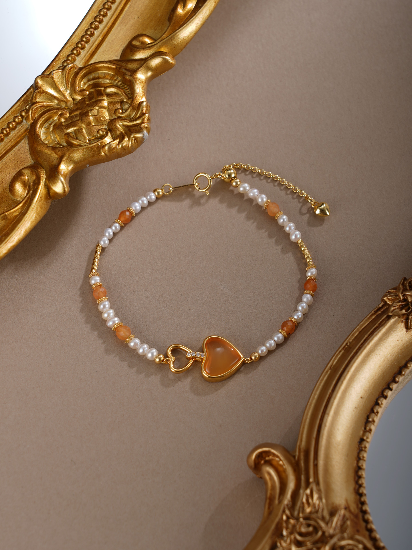 子佩集【灵珀珍爱】银S925珍珠惜王妃手链【SGB0747008】2.8mm珠爱心镀金2601