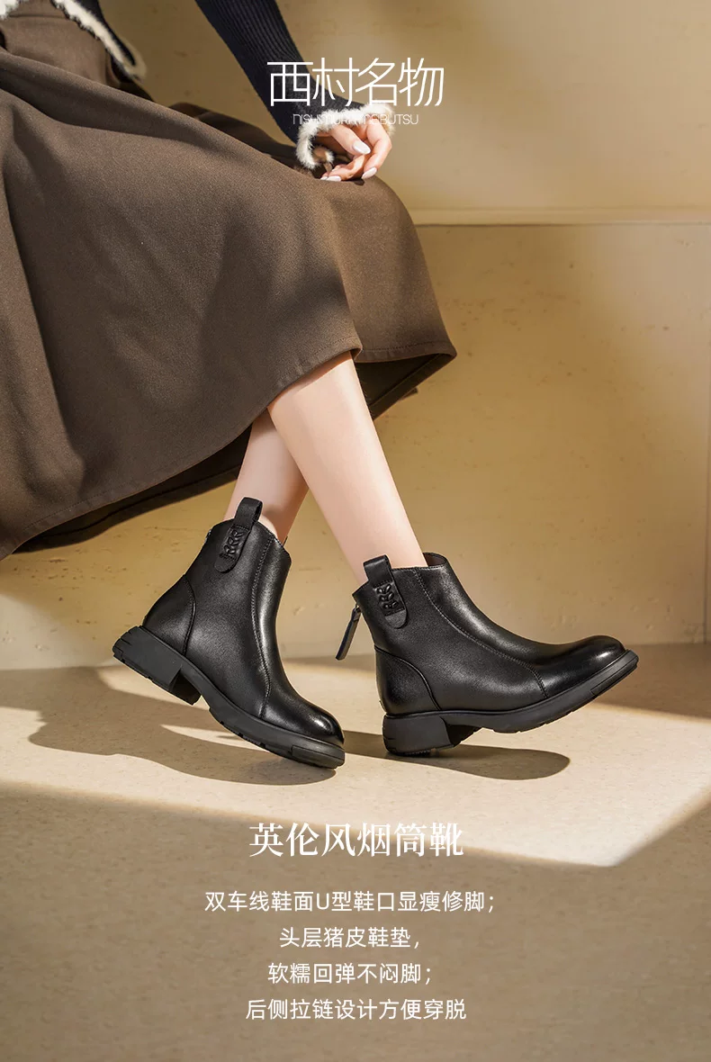 西村名物2025年秋冬新款英伦风洋气高级厚底防滑舒适切尔西靴短靴T25DS49181
