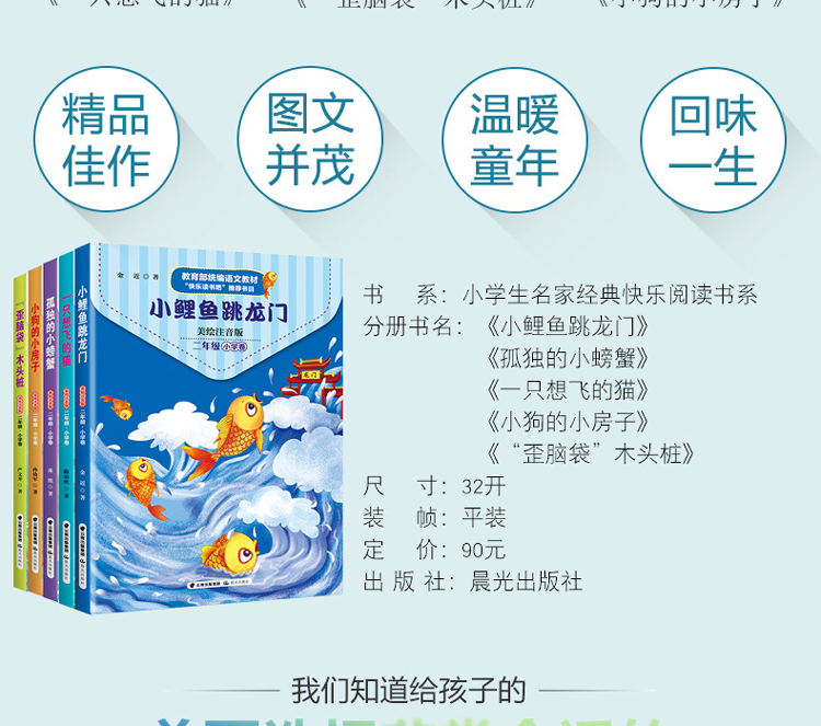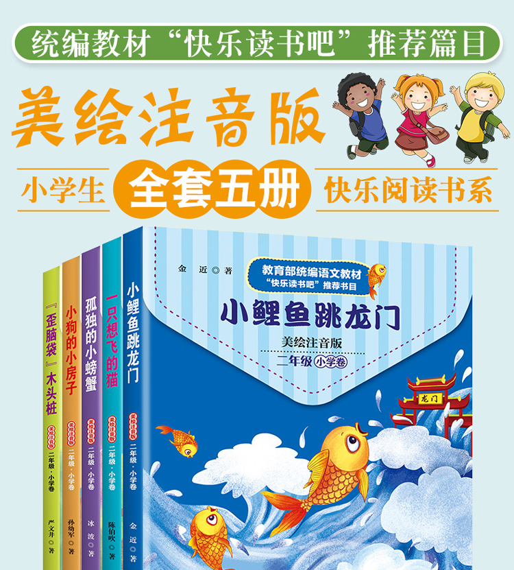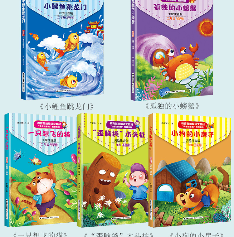(仓发) 小学快乐读书吧二年级上册小鲤鱼跳龙门+一只想飞的猫+小狗的小房子+孤独的小螃蟹+歪脑袋木头桩注音版全套5本/晨光出版社/金近,陈伯吹,冰波,孙幼军,严文井/9787571501556