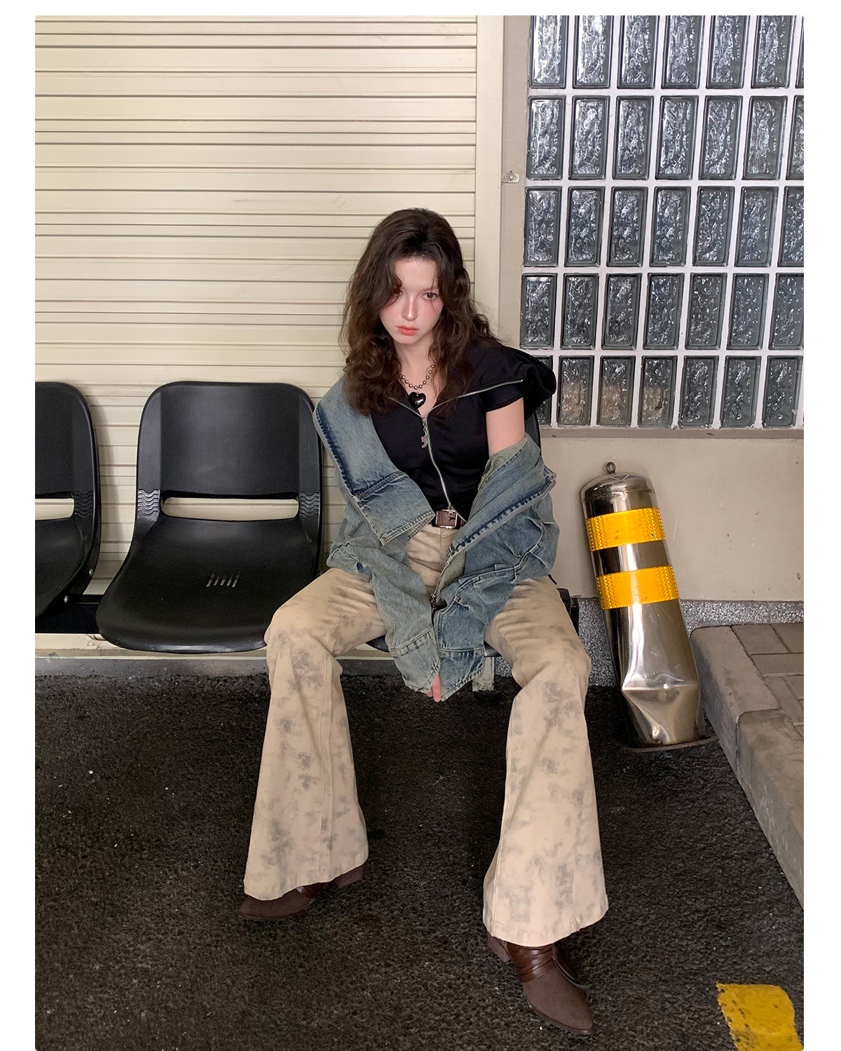 FTT FlyTheTruth『废土蔷薇』 小众牛仔裤女高街休闲显瘦微喇长裤