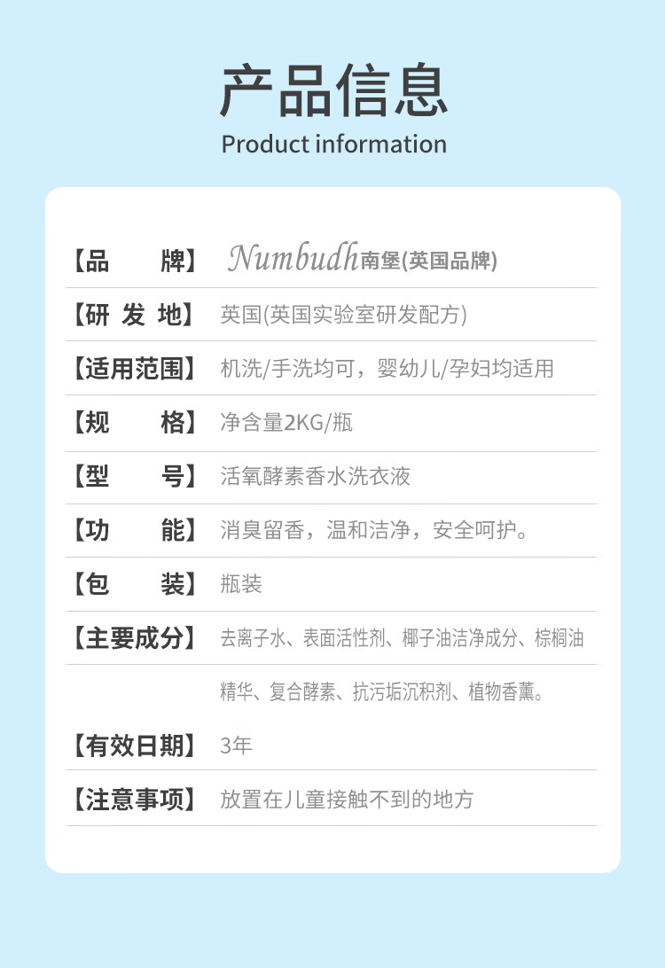 南堡(Numbudh)活氧酵素香水洗衣液 2kg*4瓶