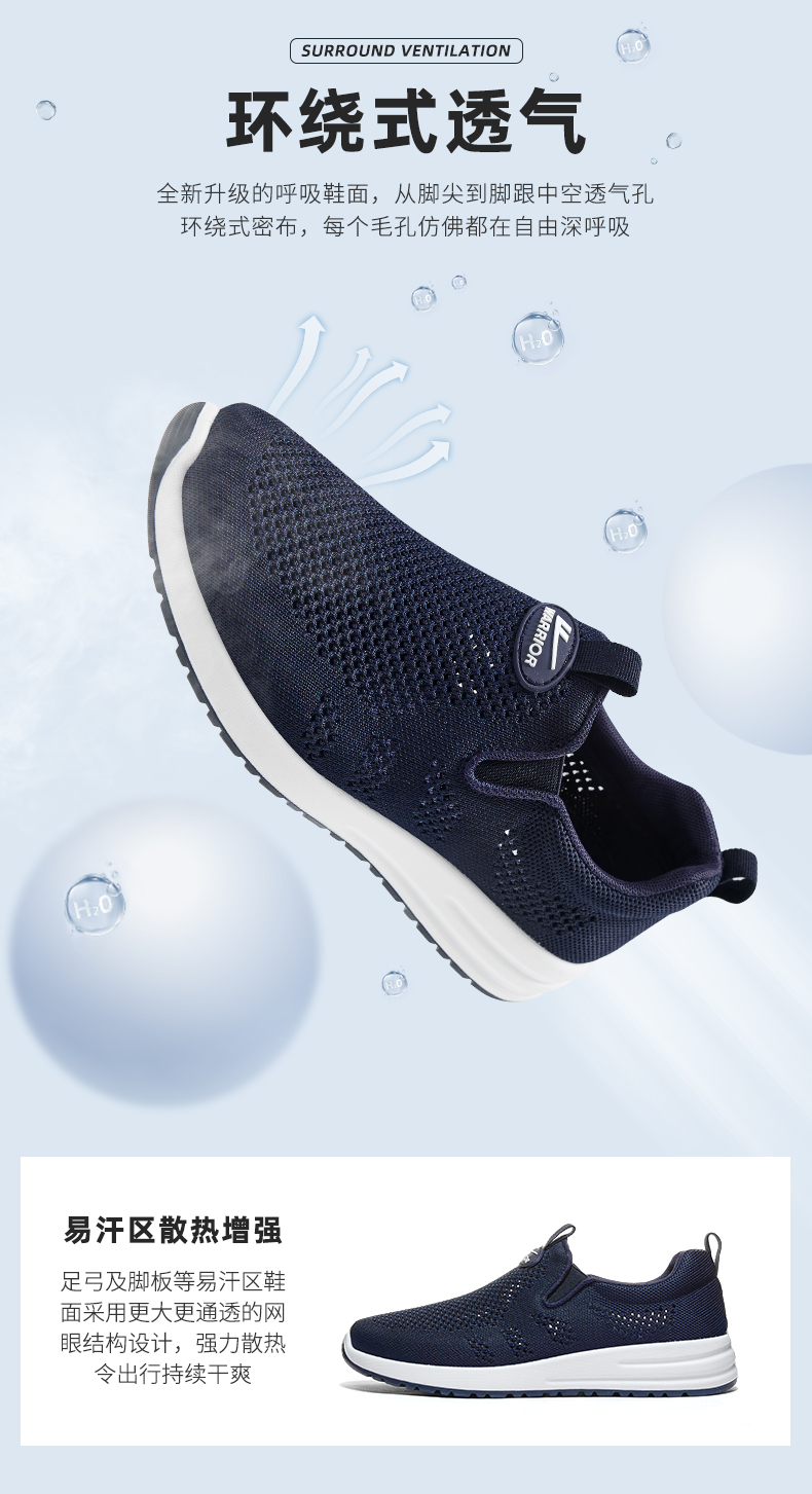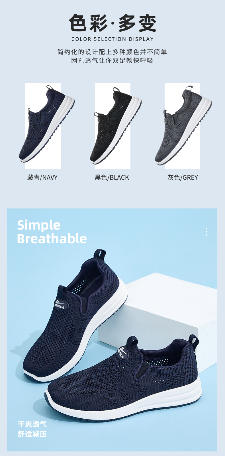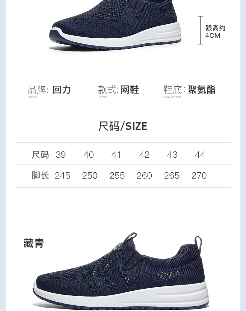 回力老人鞋爸爸春季一脚蹬男鞋软底网面透气老北京布鞋中老年鞋子 WXY(JS)-1460