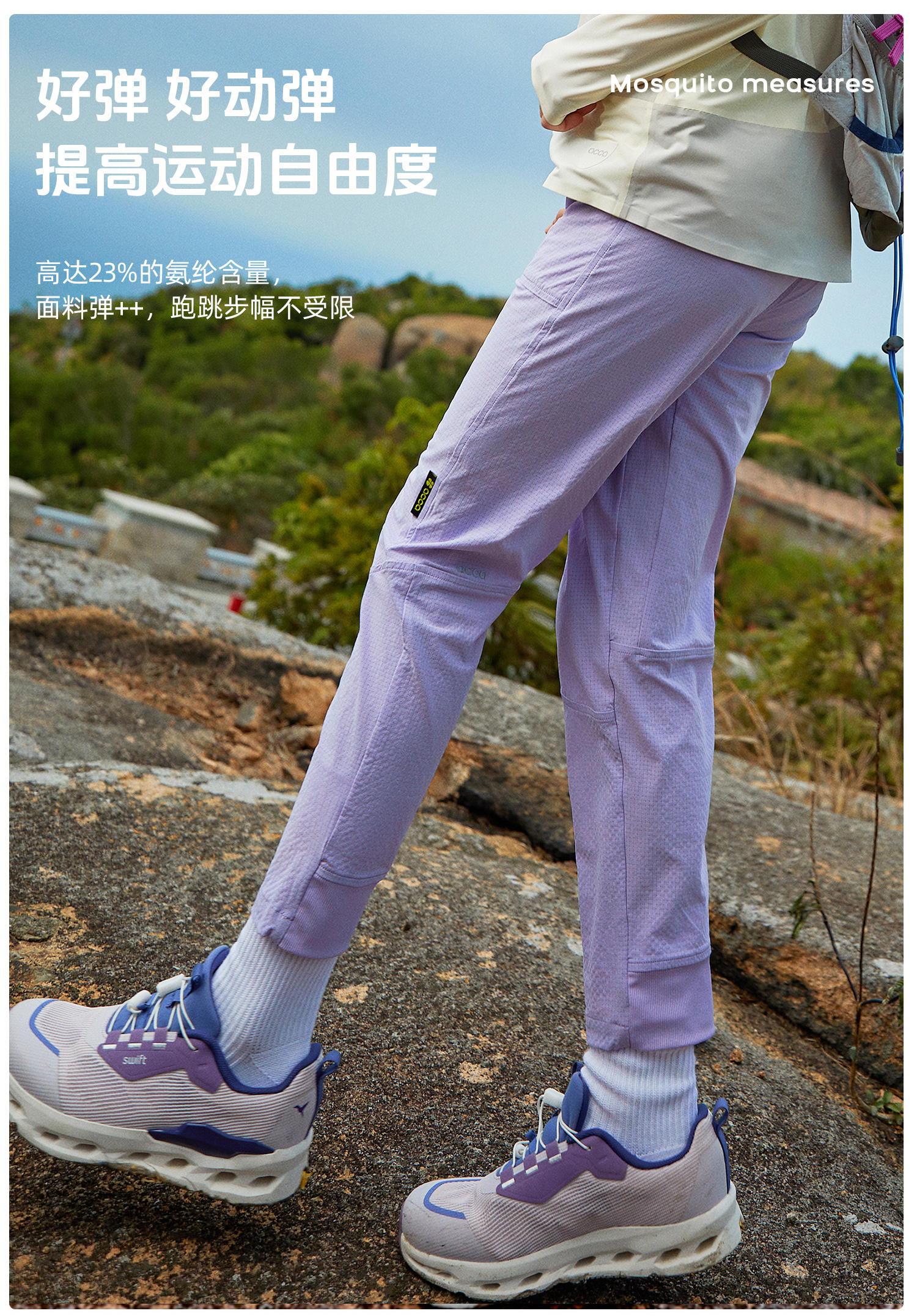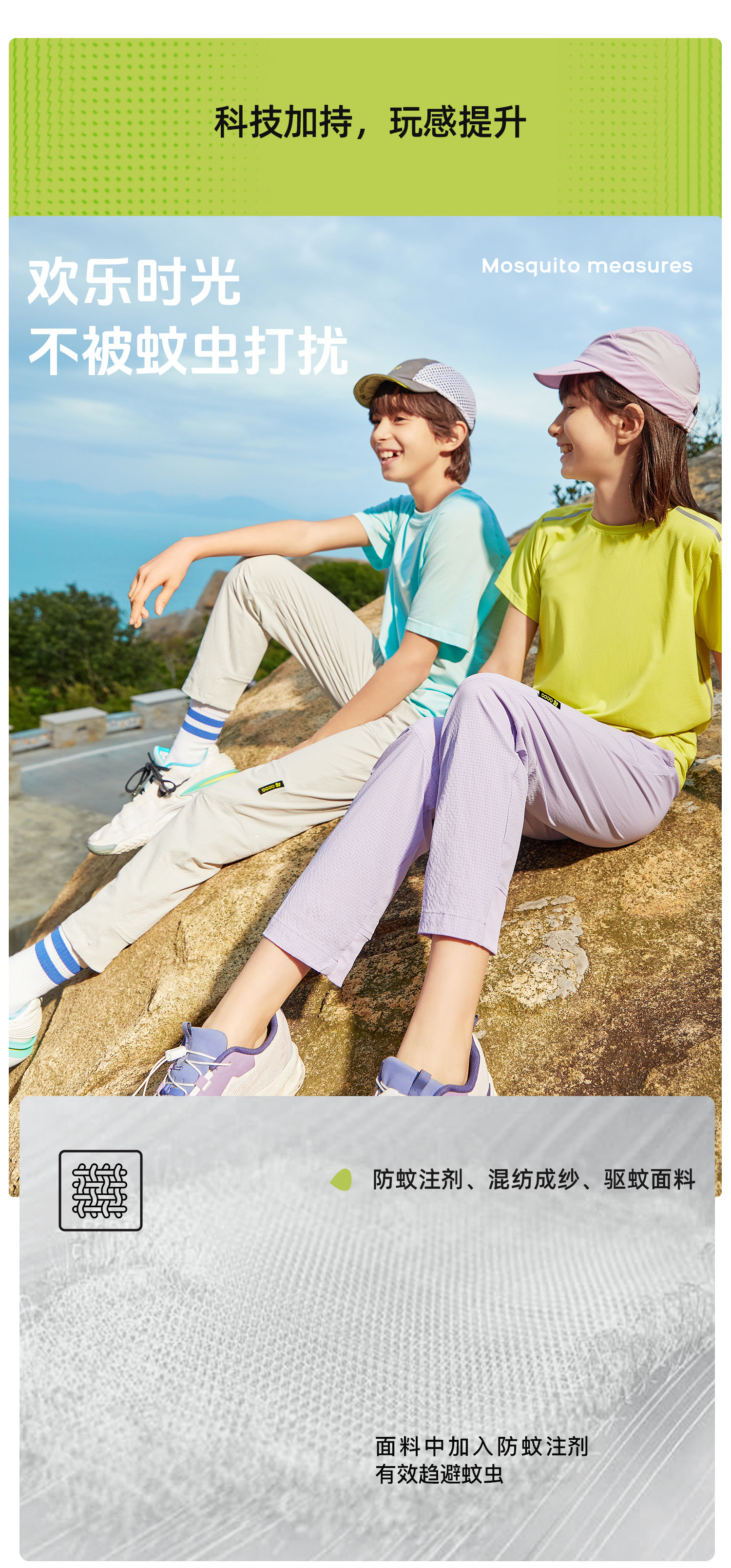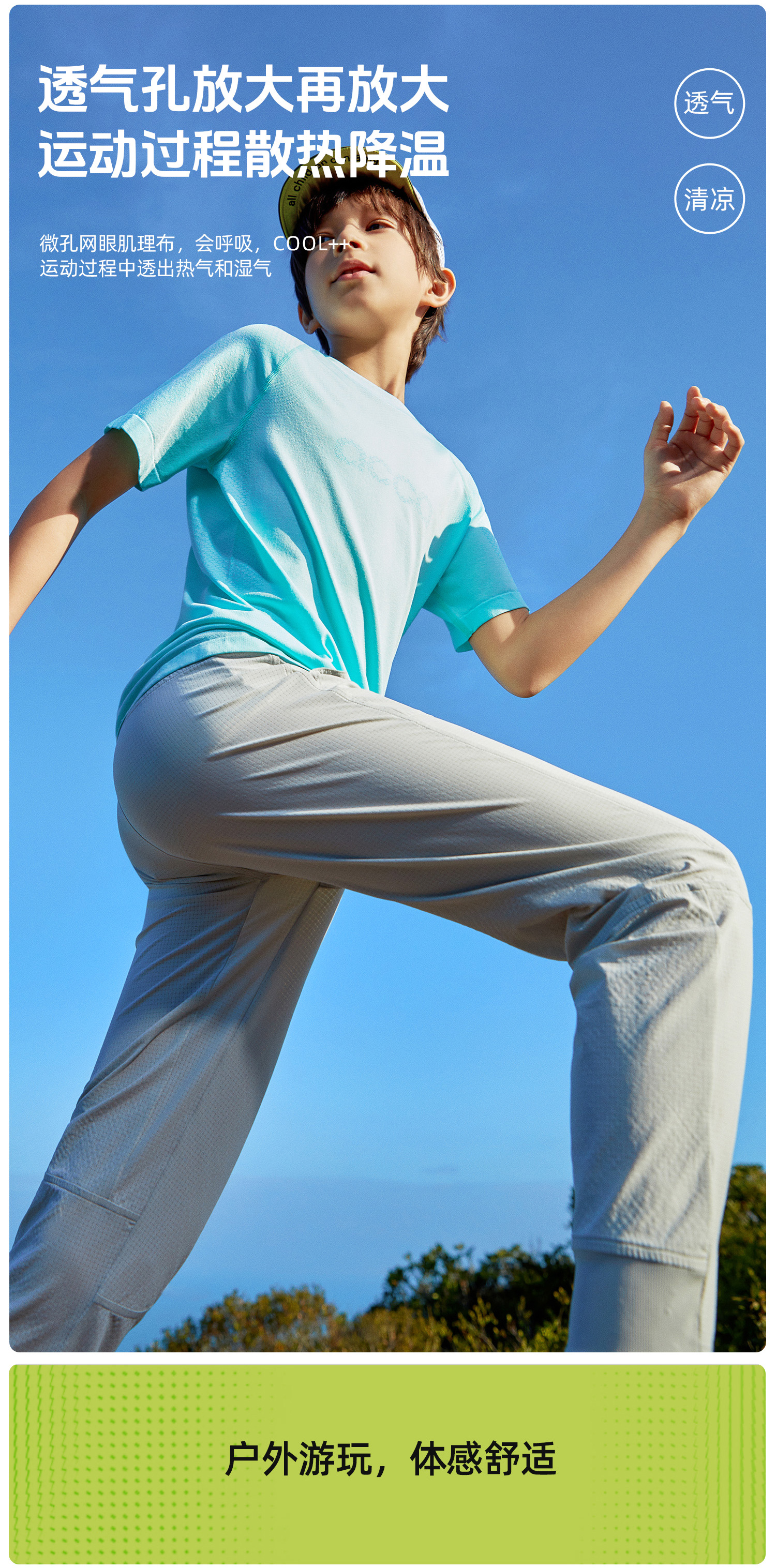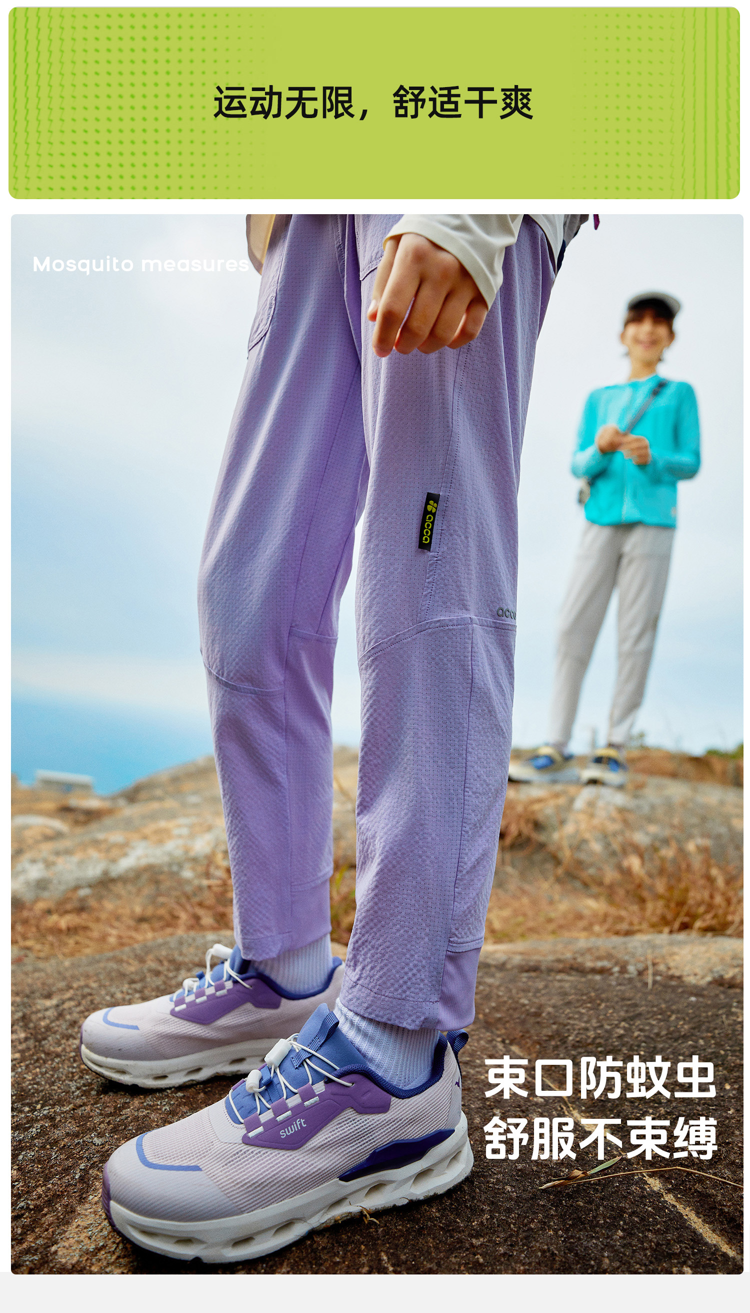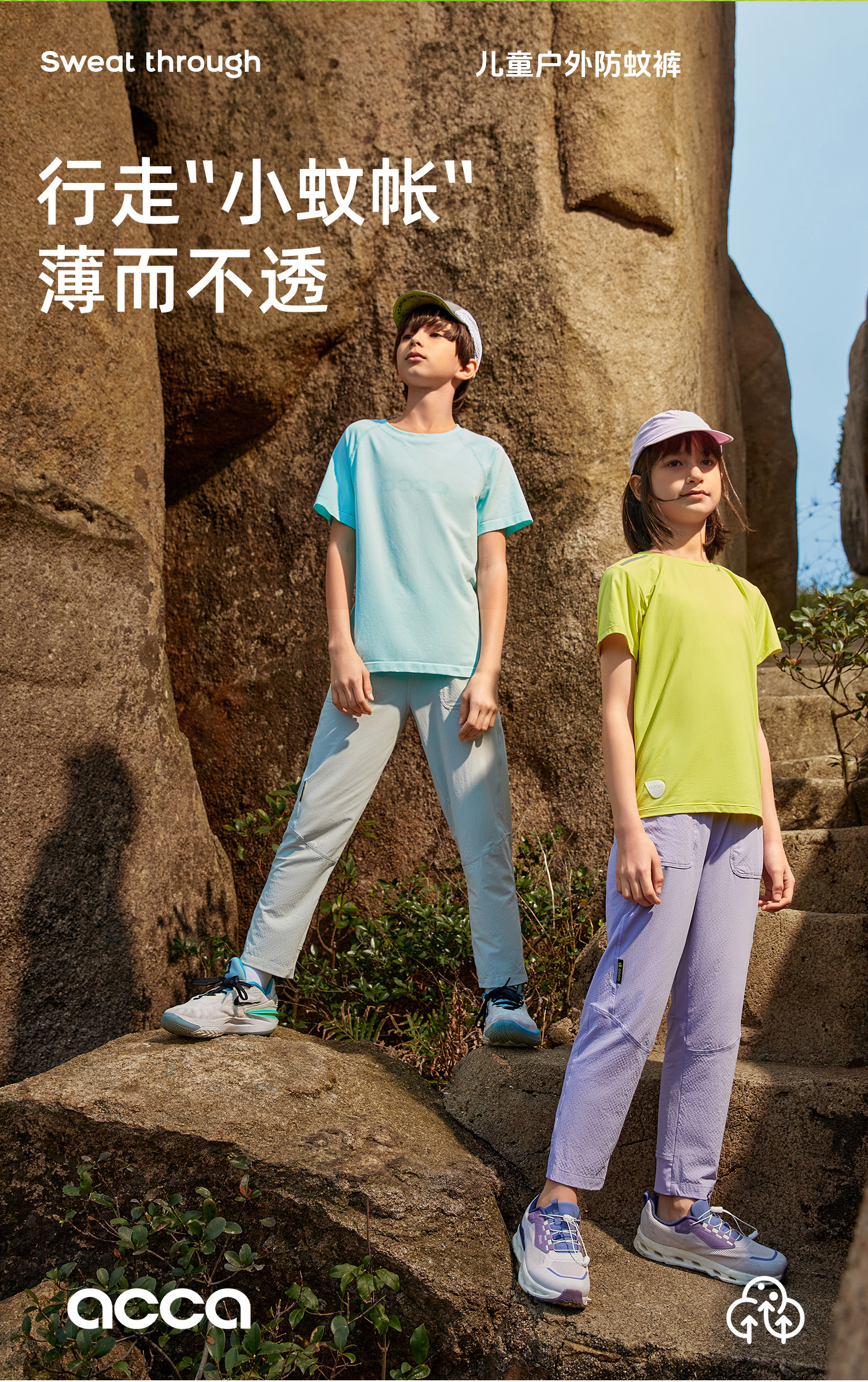 acca春夏男女童速干同期户外防蚊裤运动排汗网眼裤子