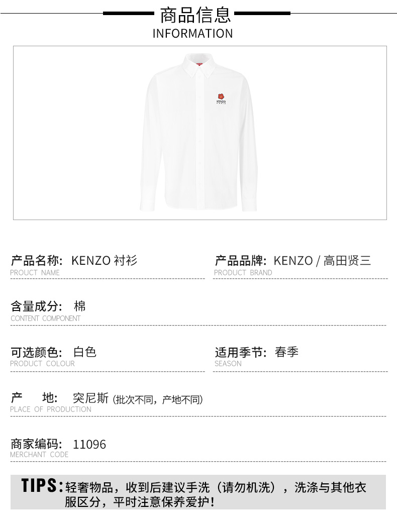 【超惠秒】KENZO 高田贤三 男士全棉海棠花刺绣logo百搭休闲长袖衬衣11096