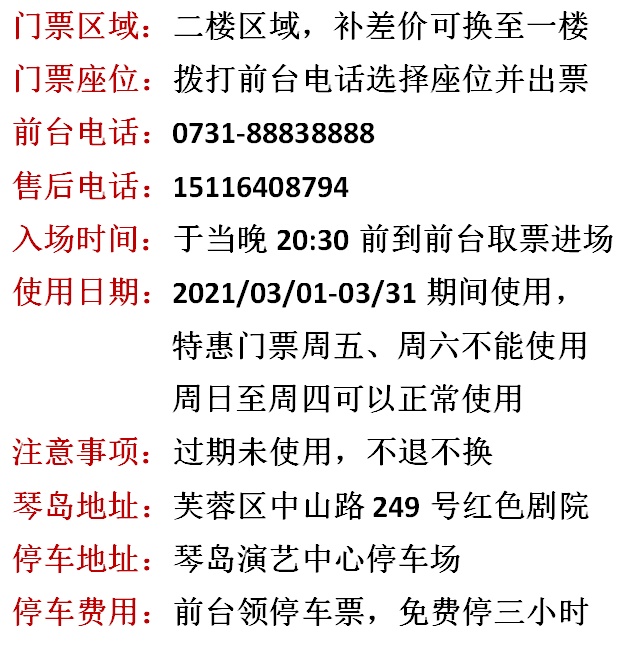 《琴岛之夜》一楼VIP区门票(需提前半天预约)