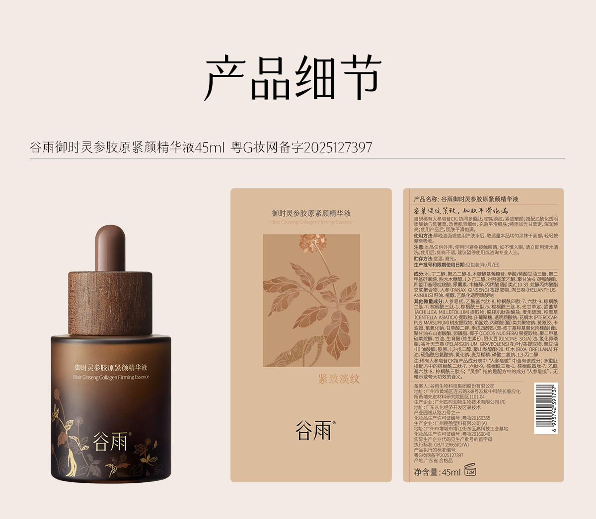 【双十二狂欢节】谷雨御时灵参胶原紧颜精华液45ml/75ml 山参精华 淡旧纹 防新纹