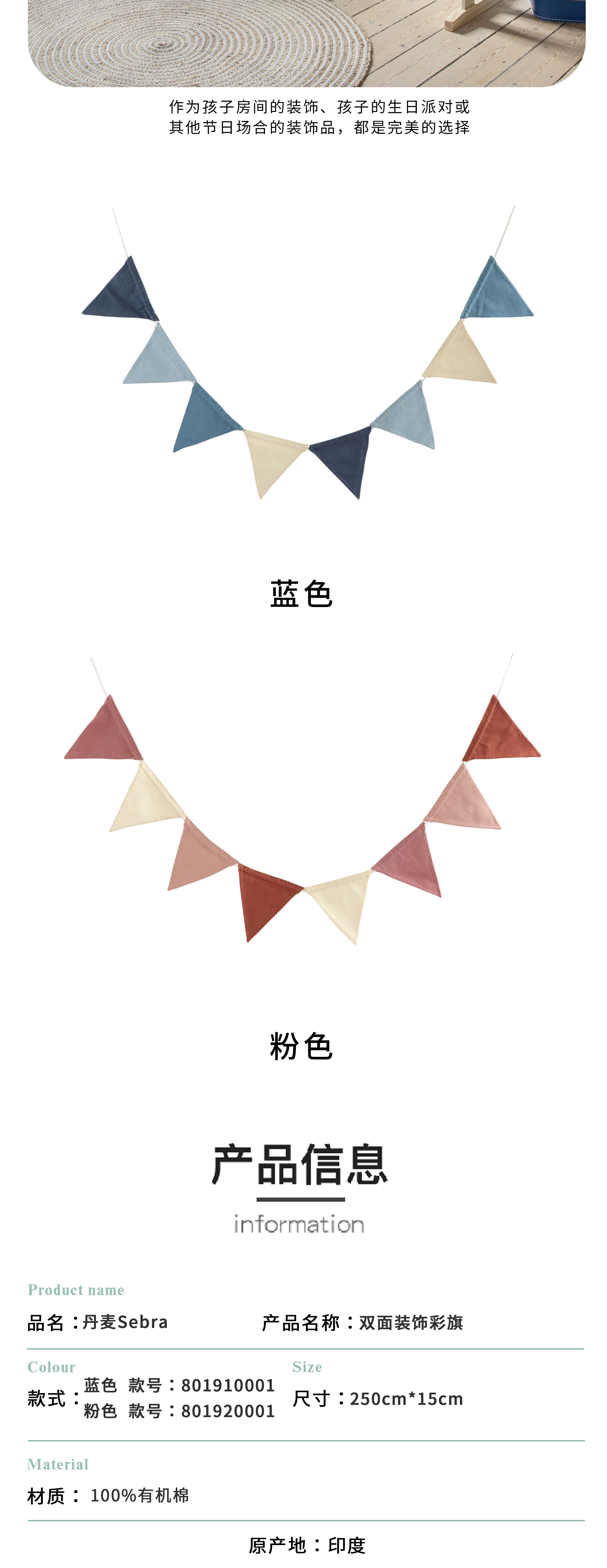 Sebra 双面装饰彩旗 家居房间墙面生日节日莫兰迪多色旗帜装饰品