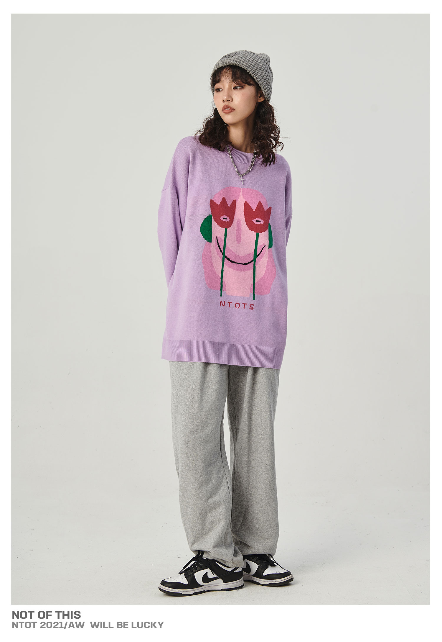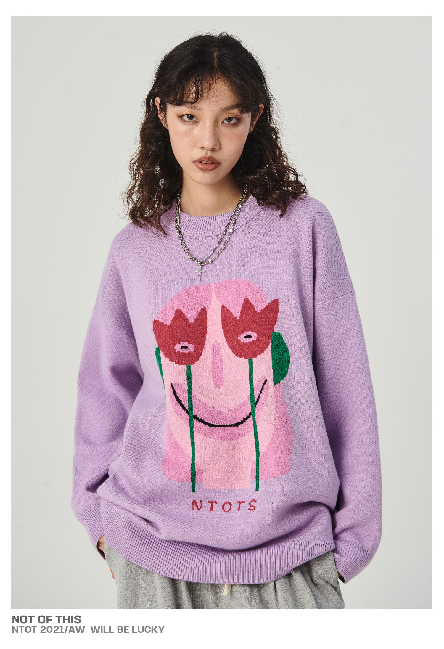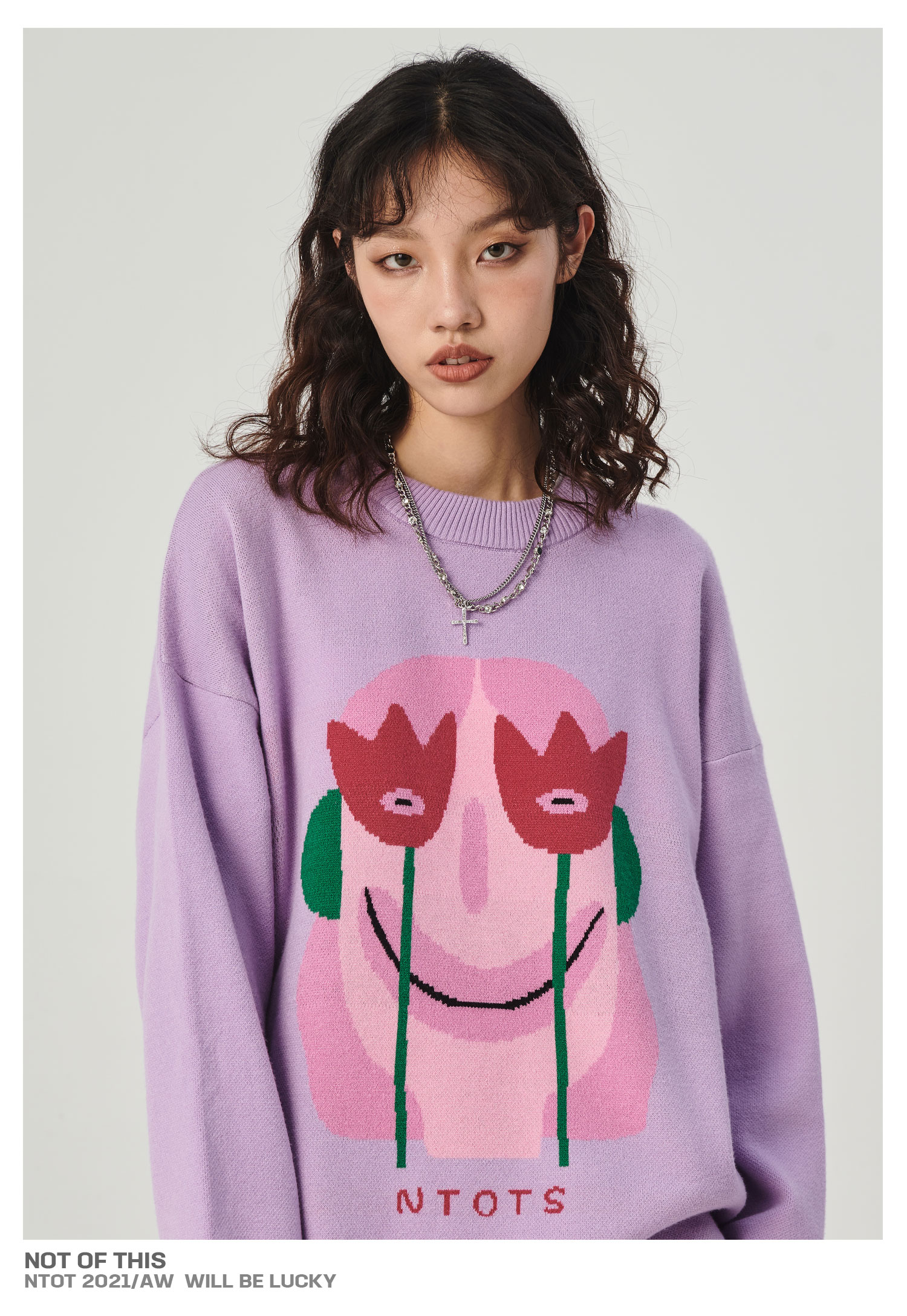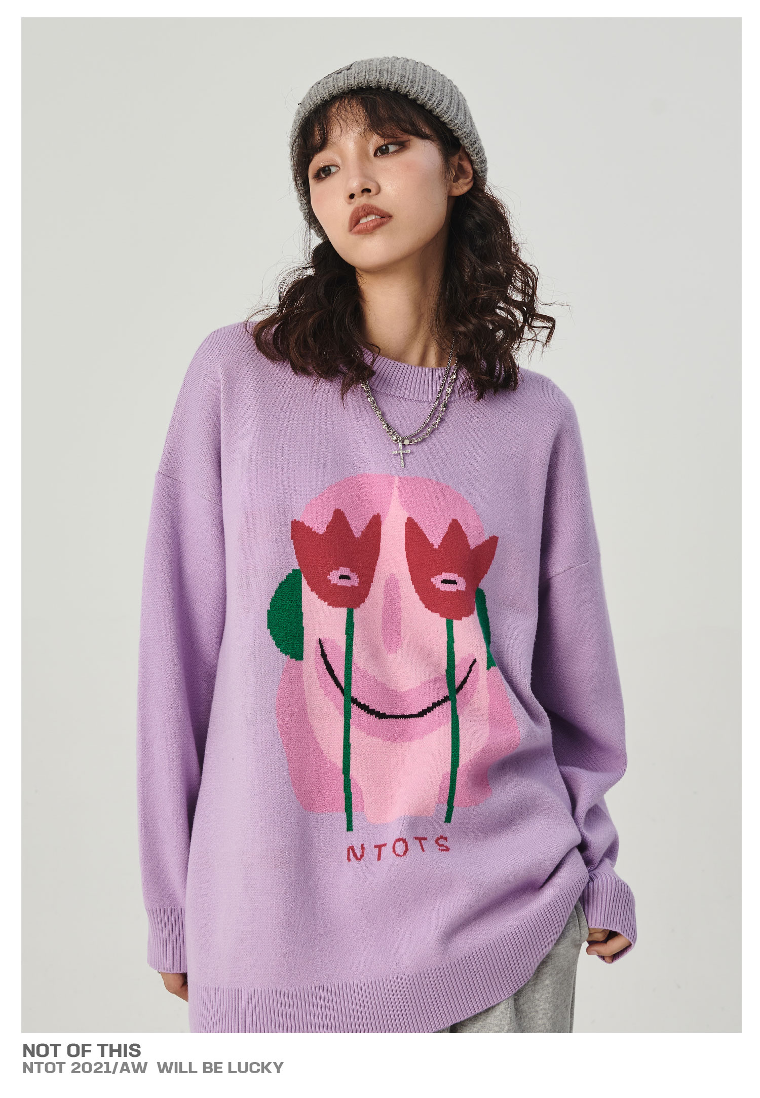 NTOT/NOTMY21046/抽象人脸提花毛衣