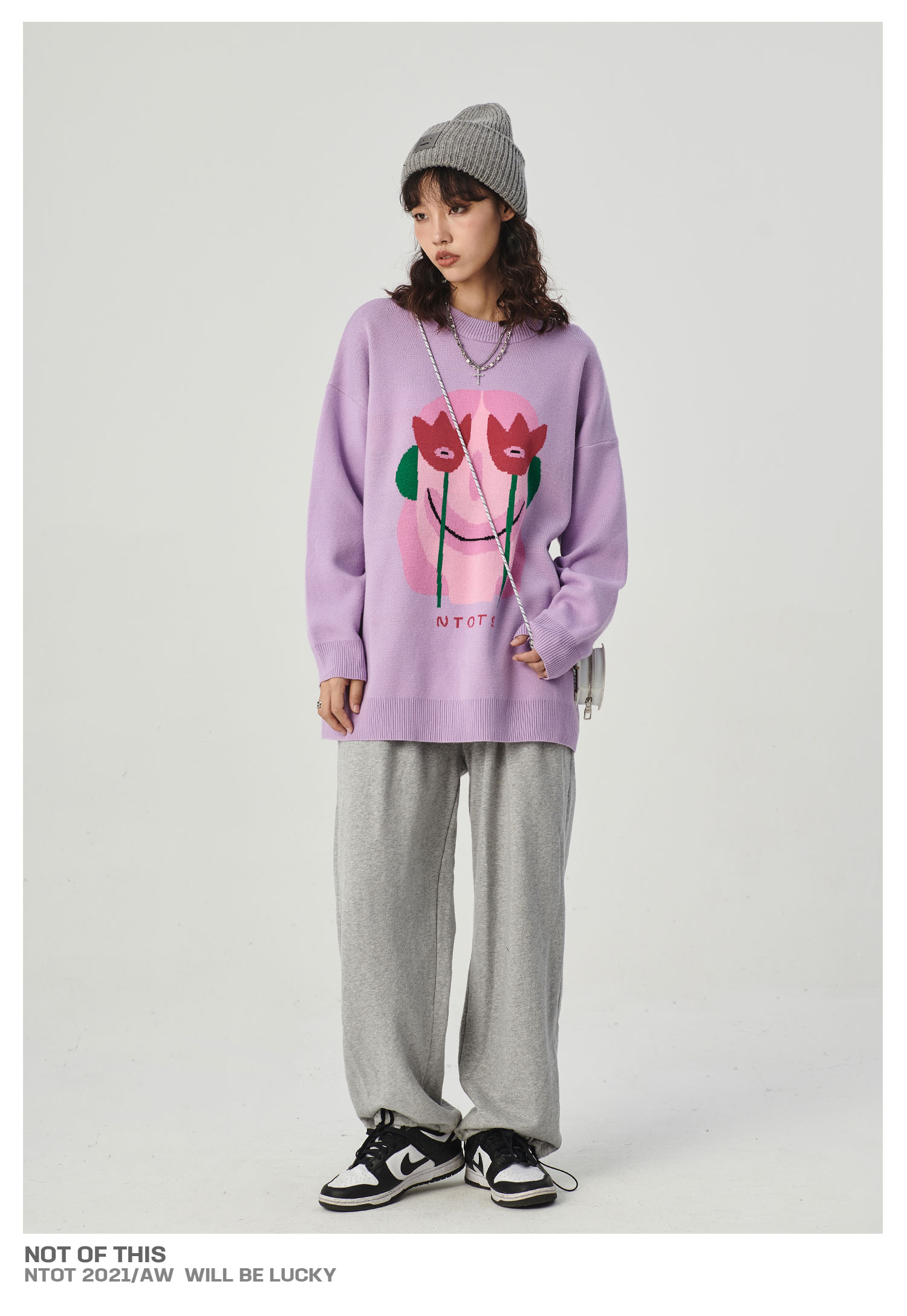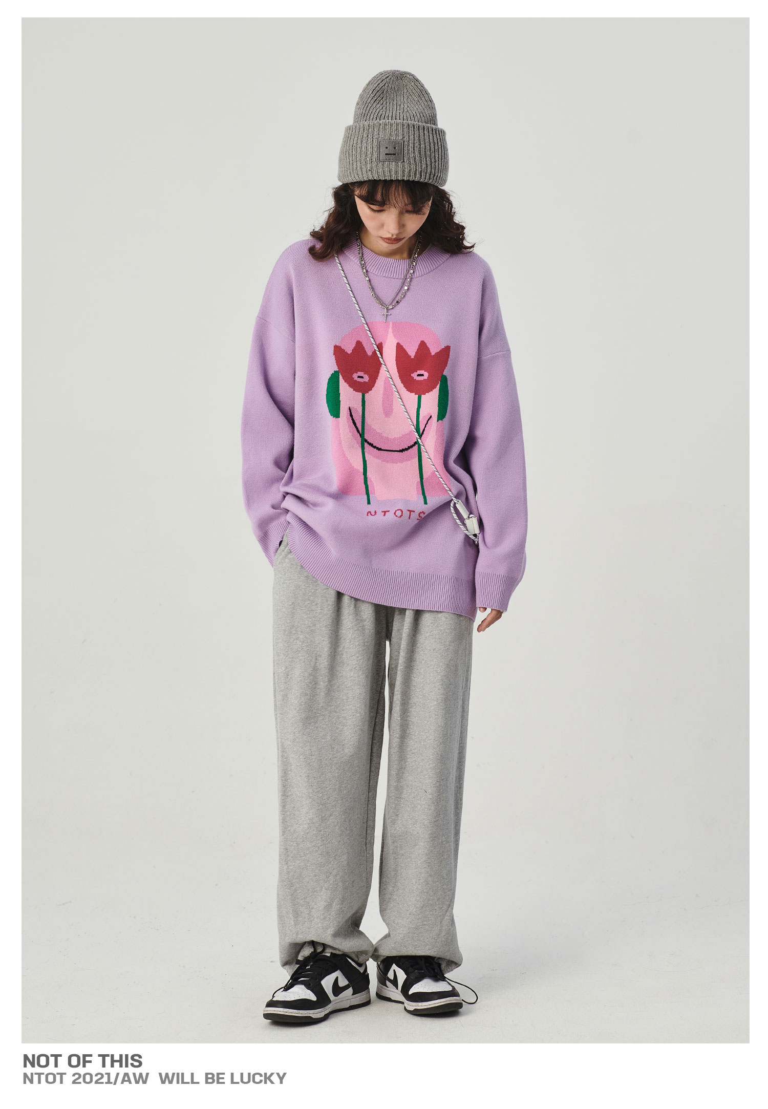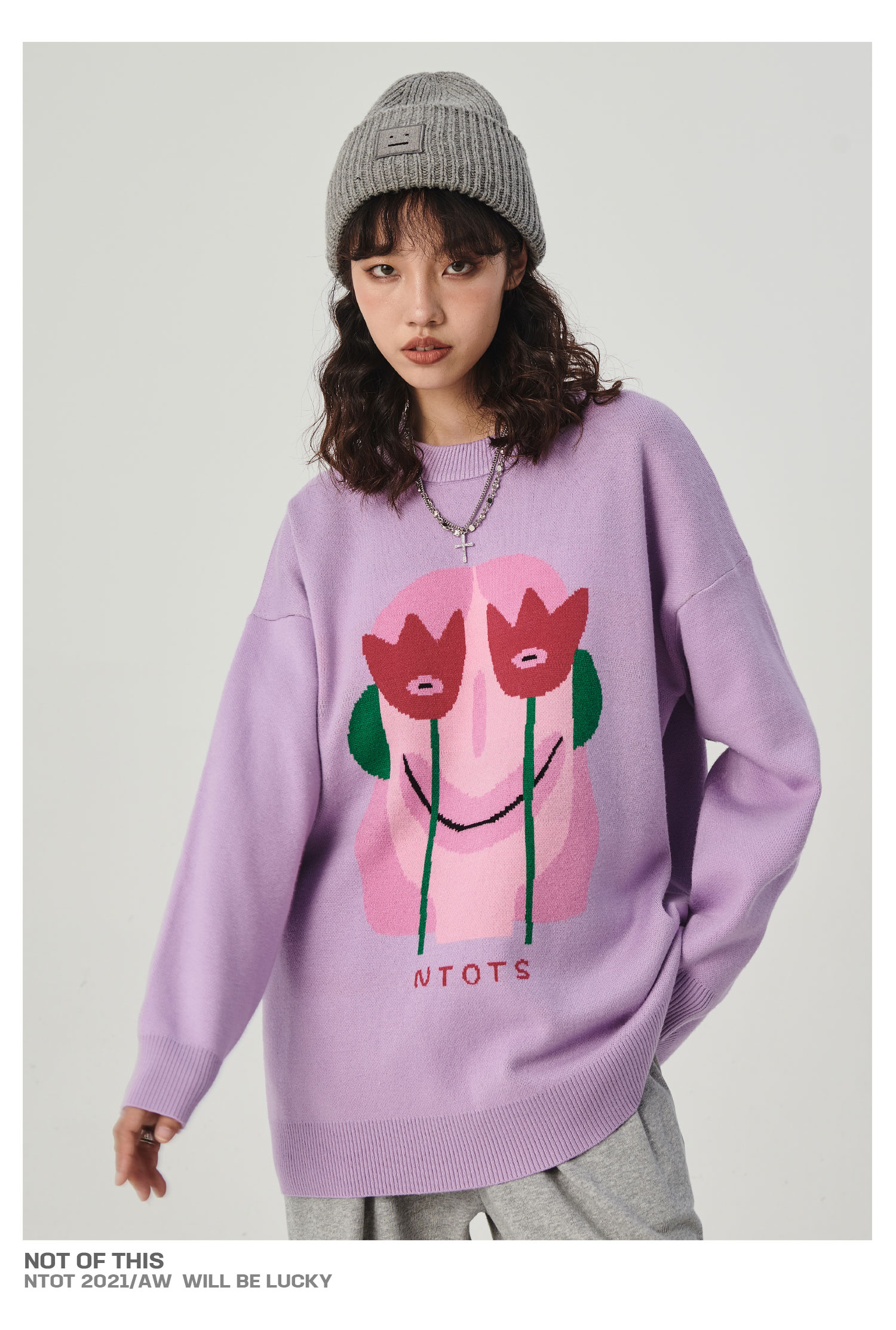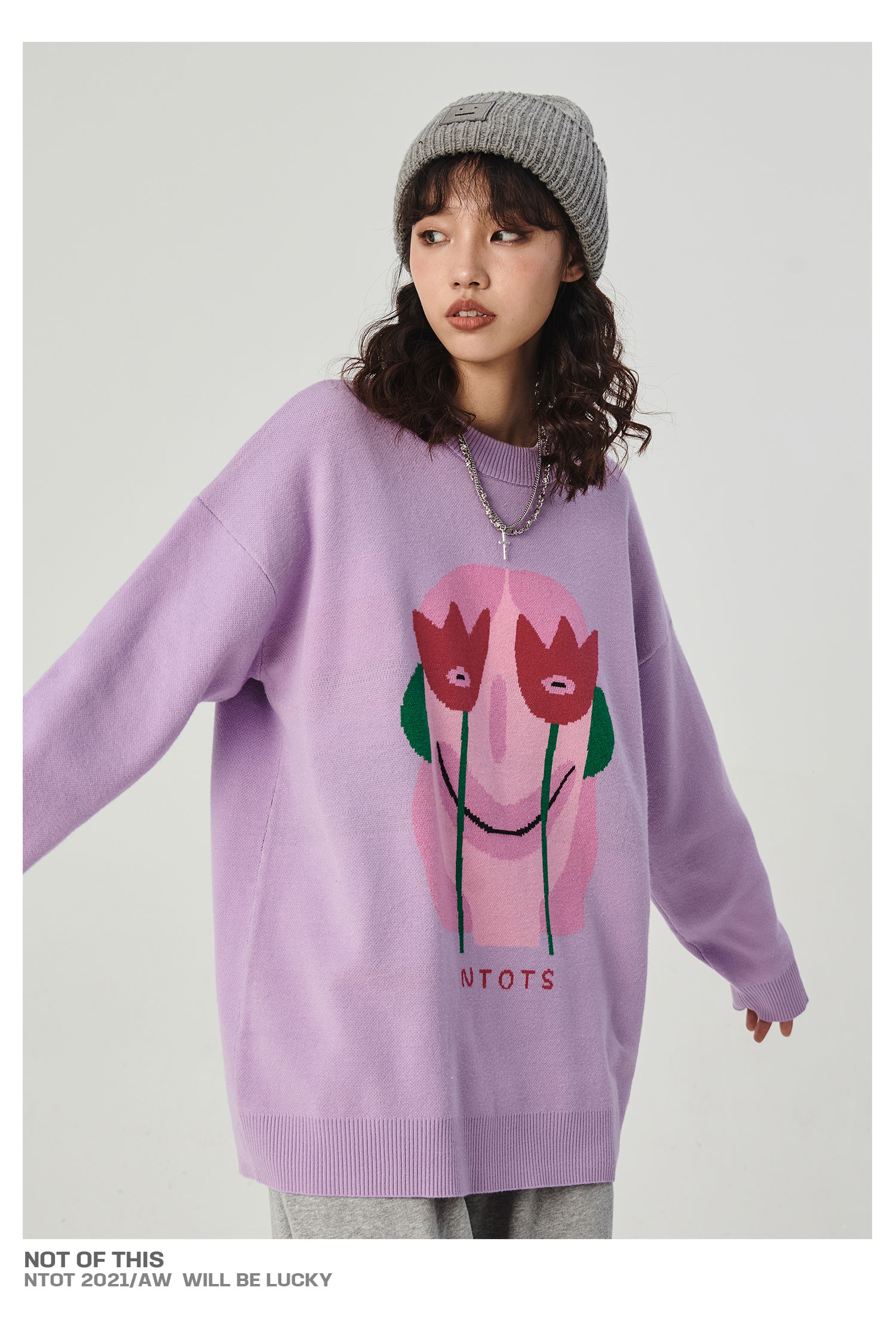 NTOT/NOTMY21046/抽象人脸提花毛衣