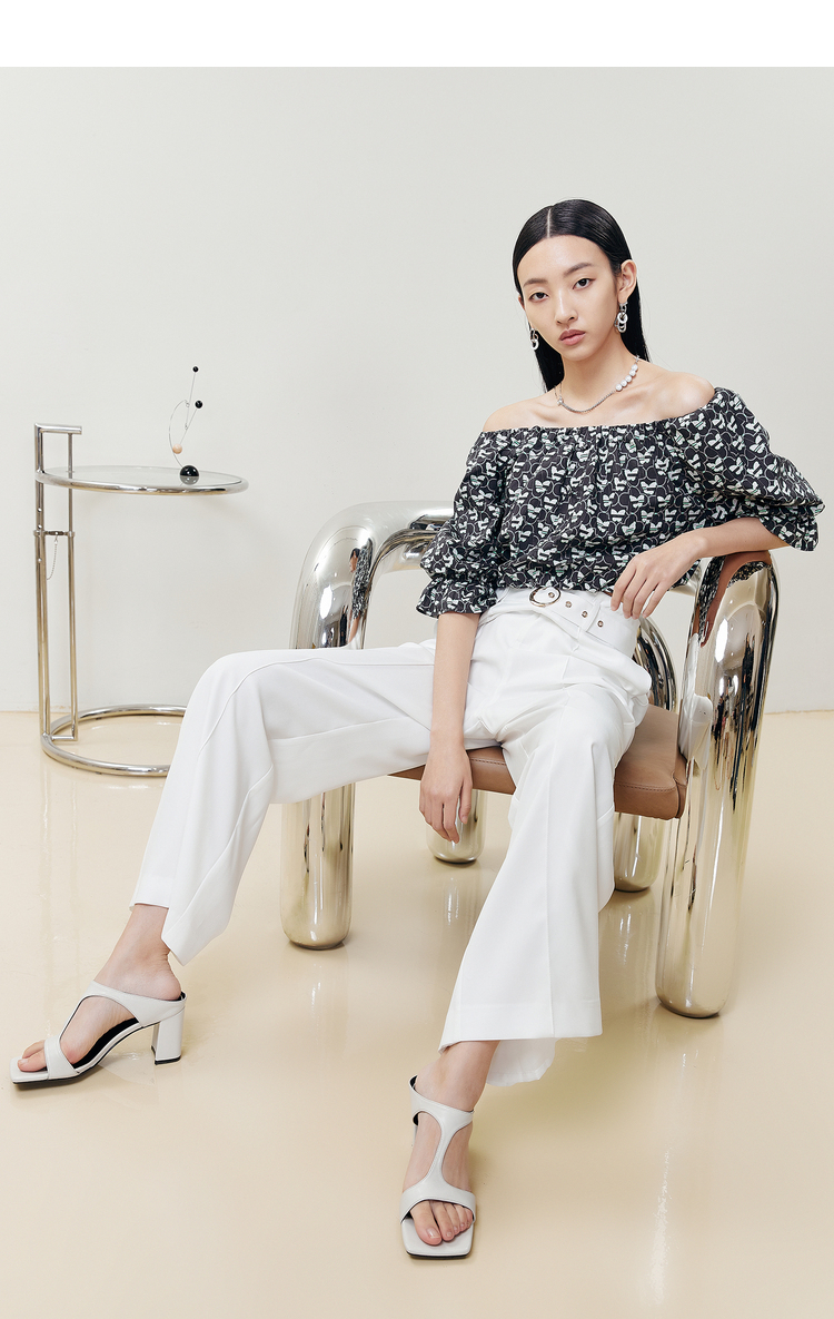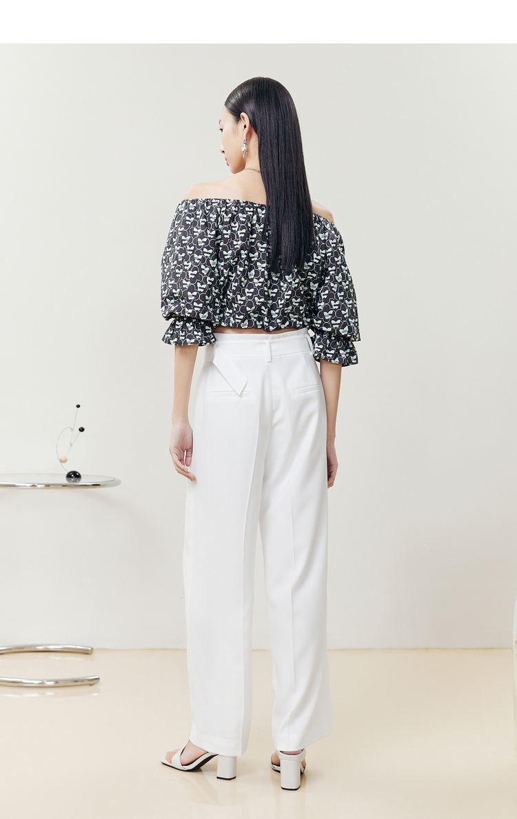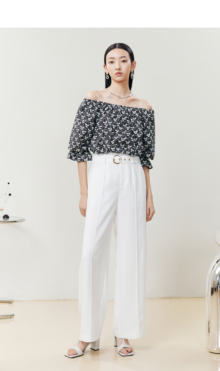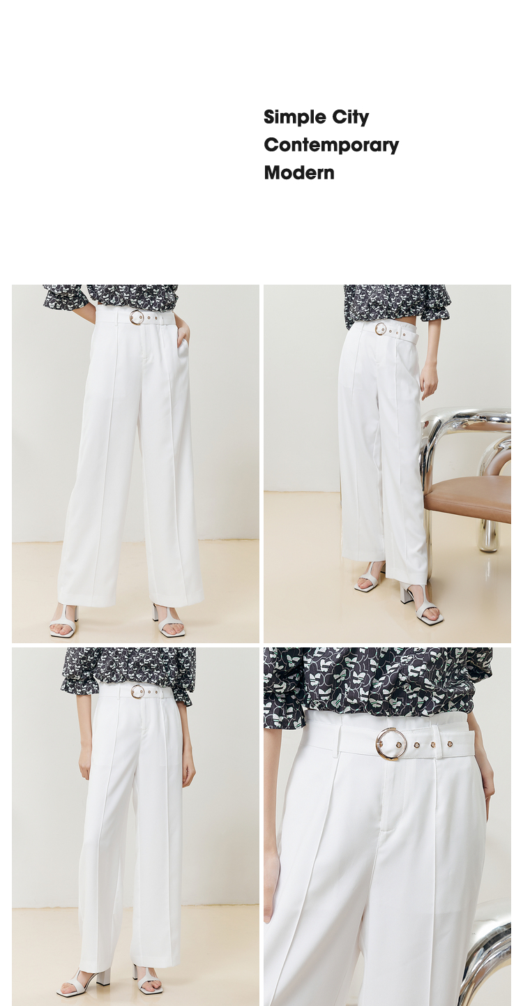 NEELLY纳俪商场同款夏季新款高腰阔腿裤女白色休闲长裤百搭直筒裤N22051H01144