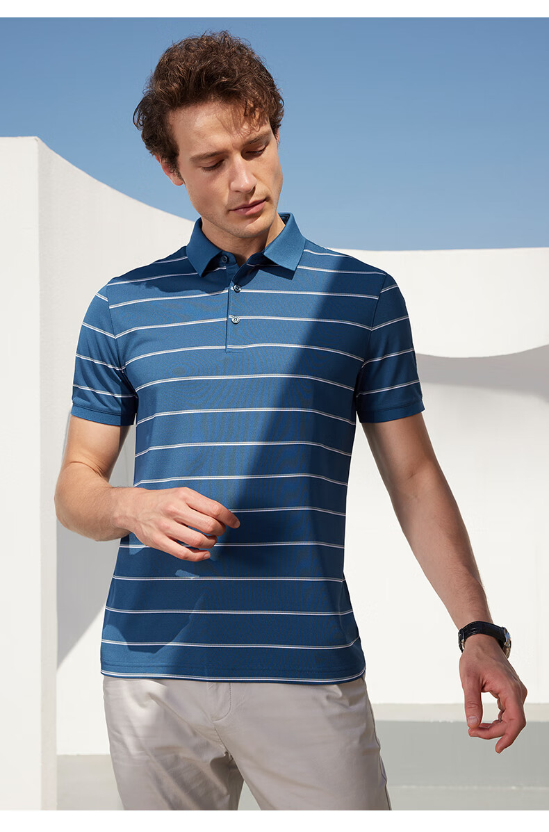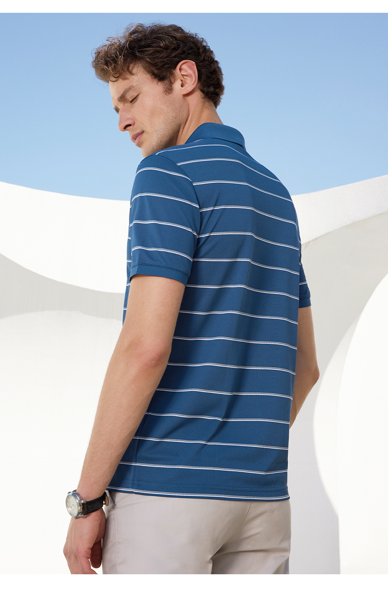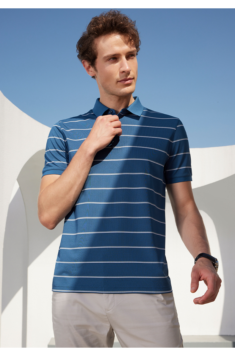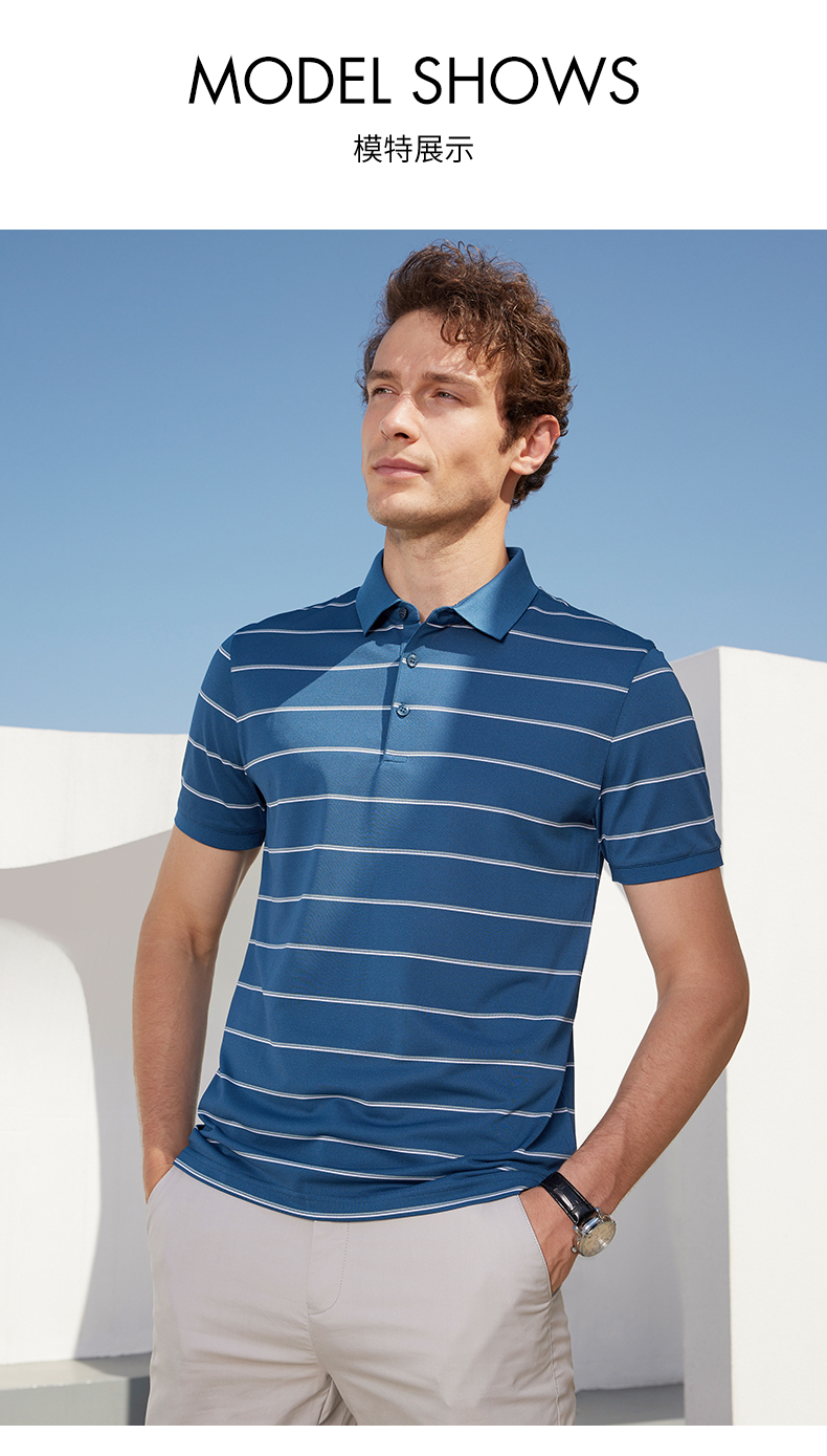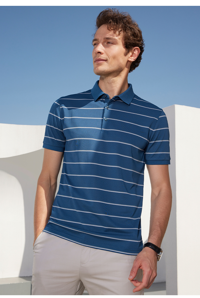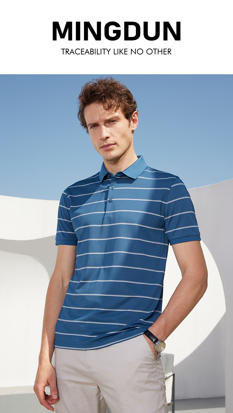 MD名盾桑蚕丝翻领条纹时尚Polo衫夏季新款男士半袖商务休闲T