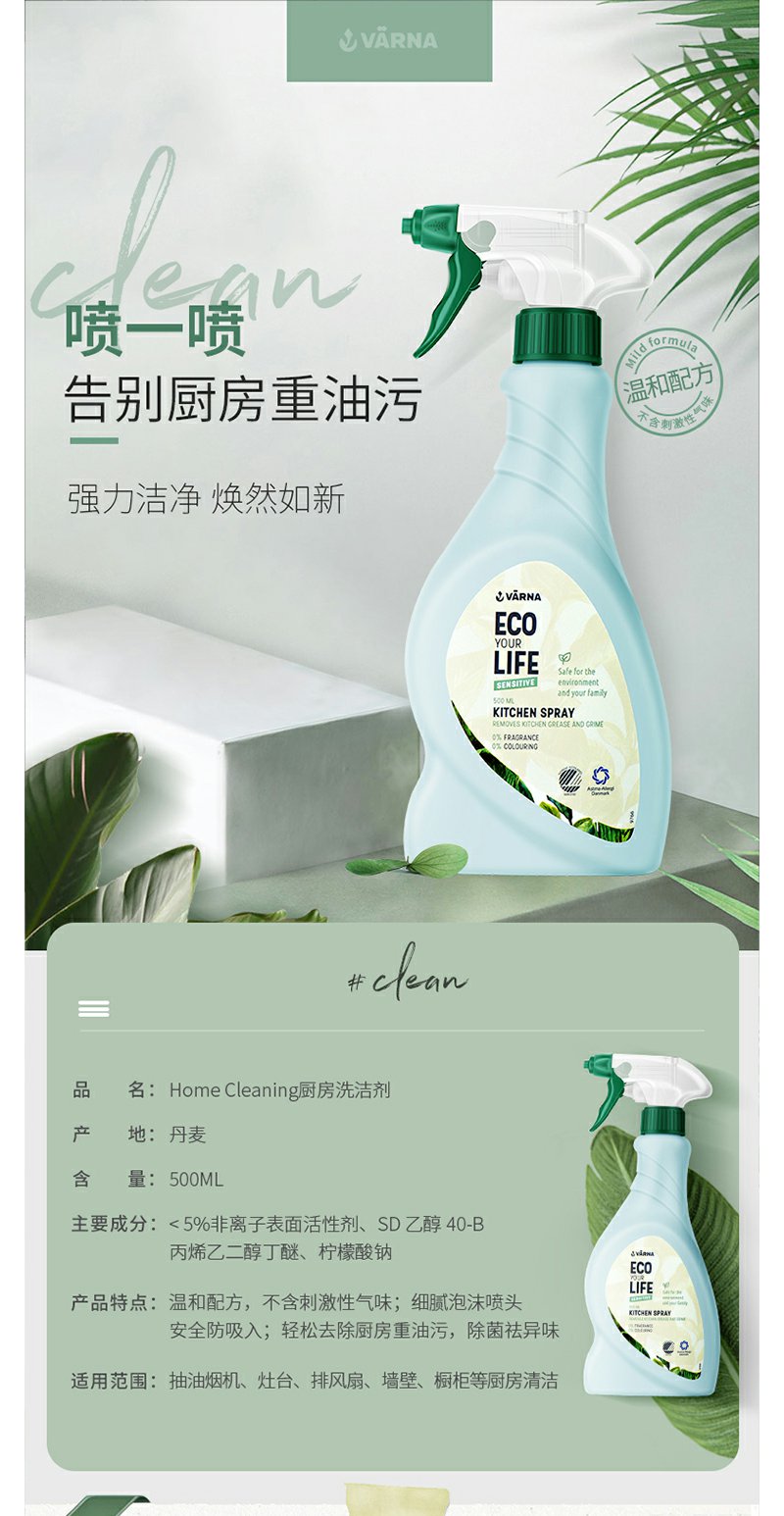 丹麦原装 VARNA/瓦娜 Ecolife home系列厨房洗洁剂500ml