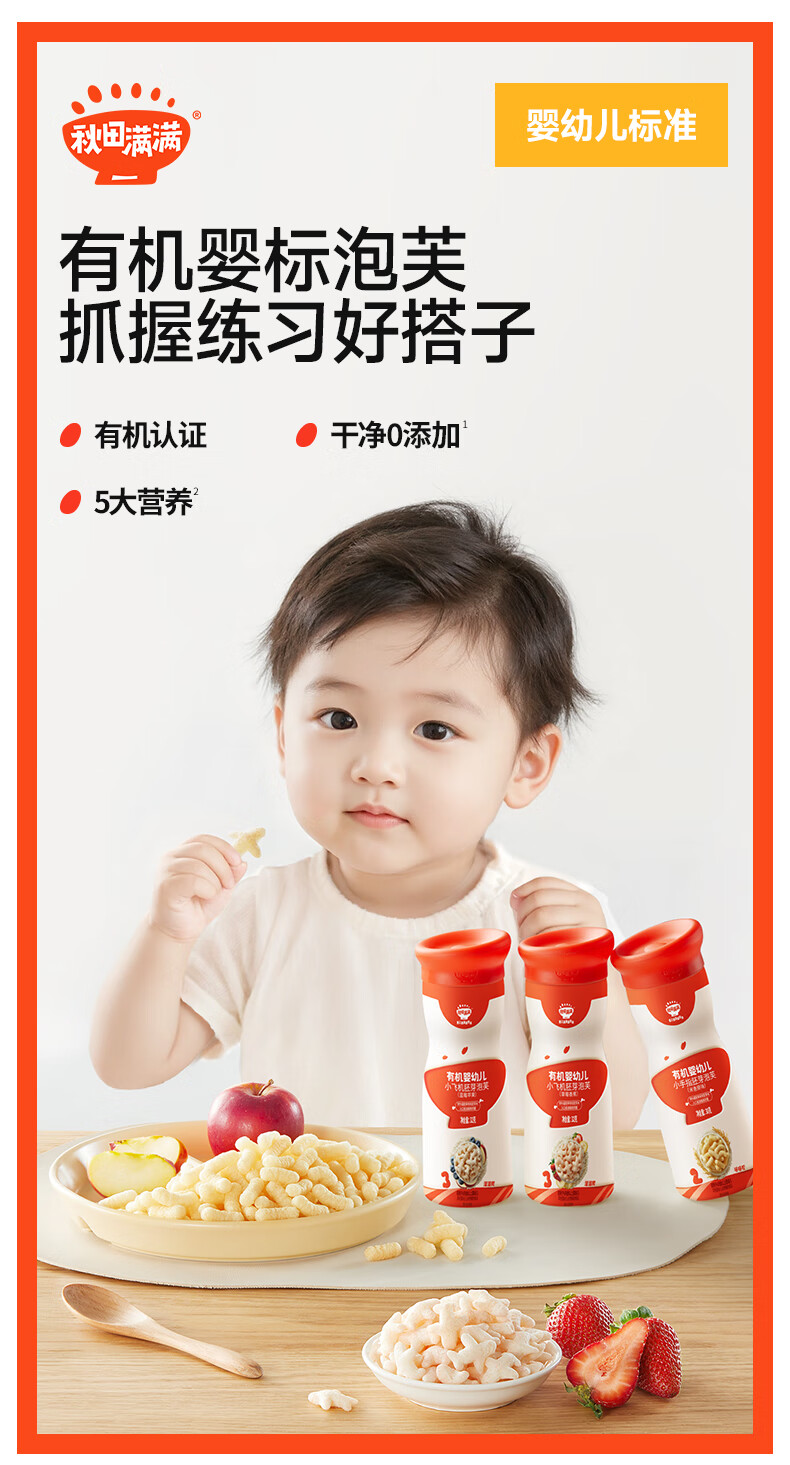 秋田满满--(高罐)有机婴幼儿小手指胚芽泡芙(米香原味)30g