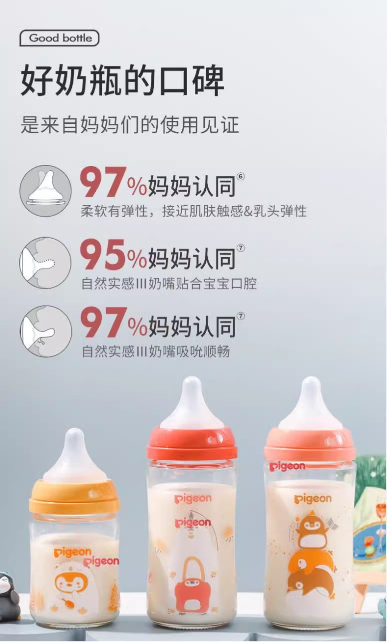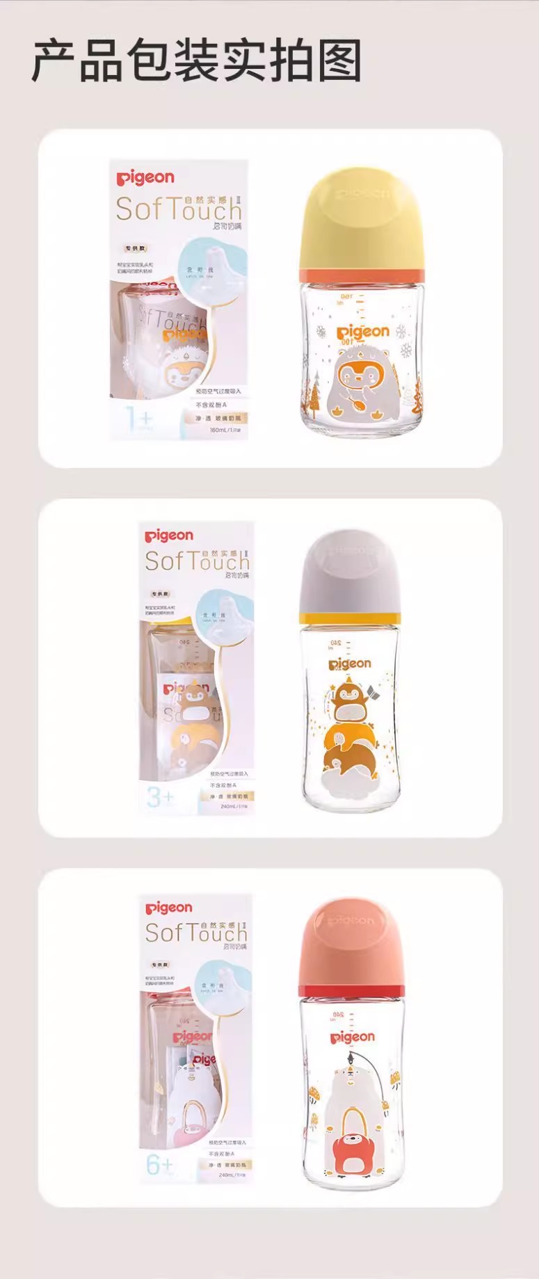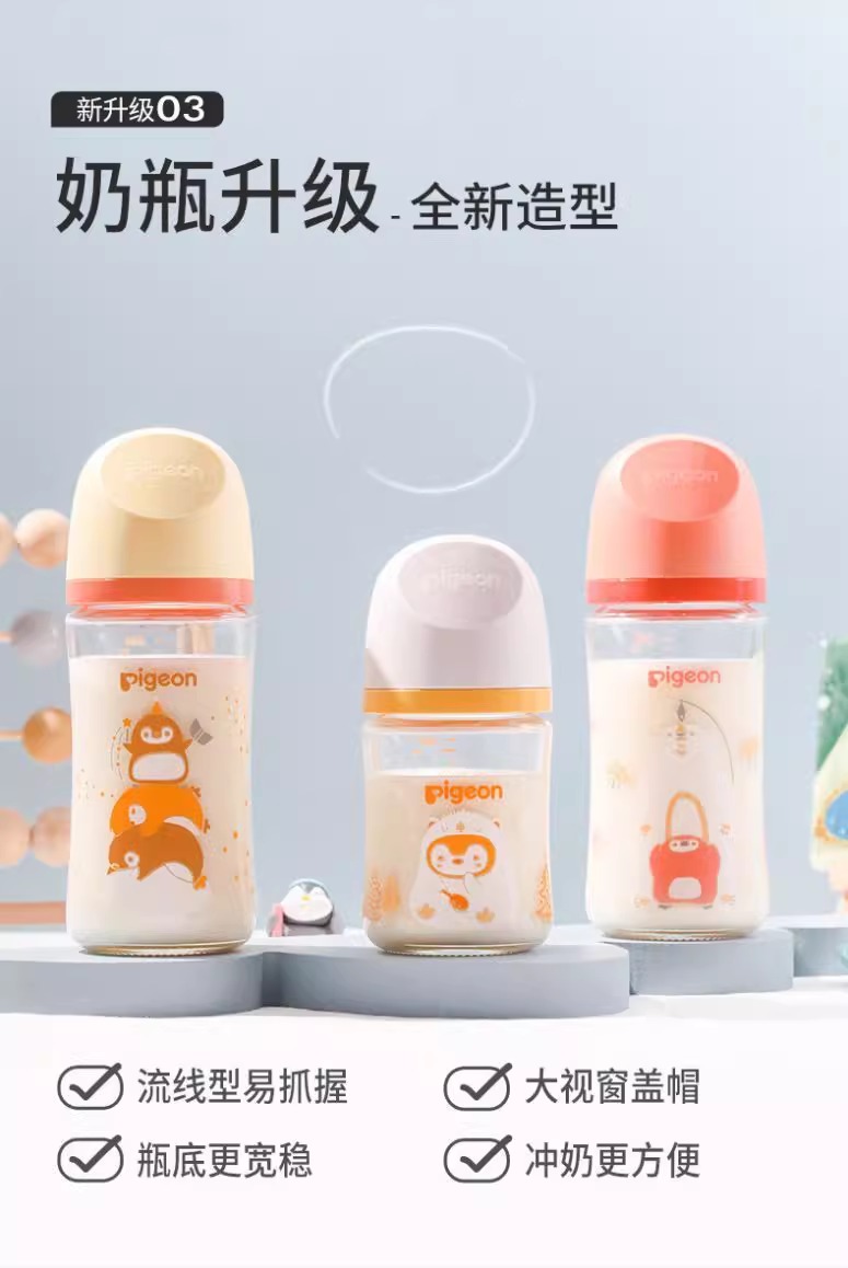 240mL一起钓鱼贝亲PIGEON宽口径III彩绘玻璃奶瓶L