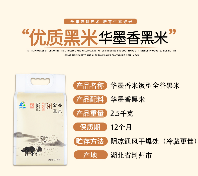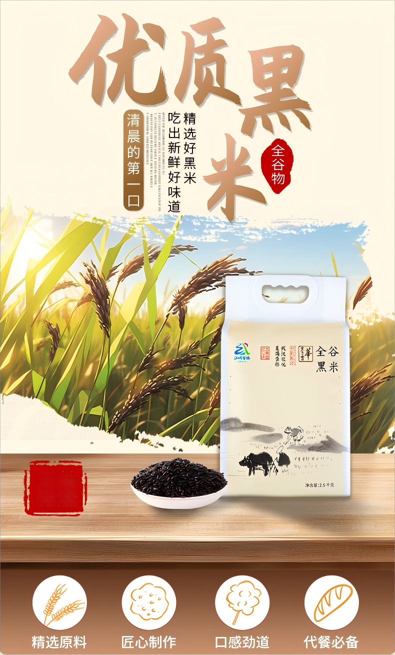 【江城百臻】华墨香米饭型全谷黑米2.5kg