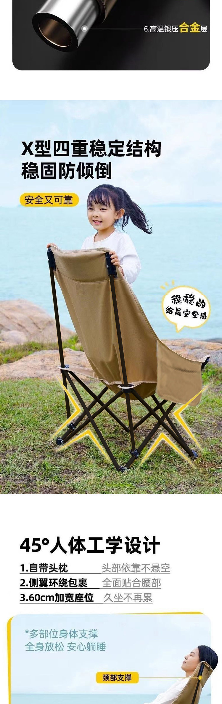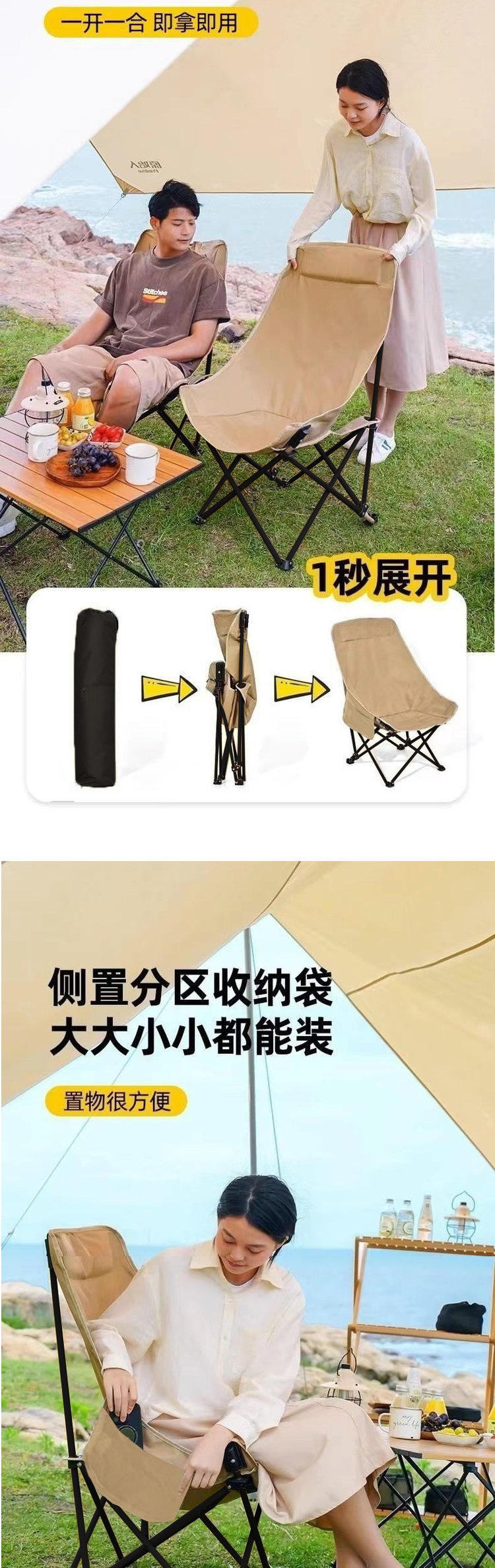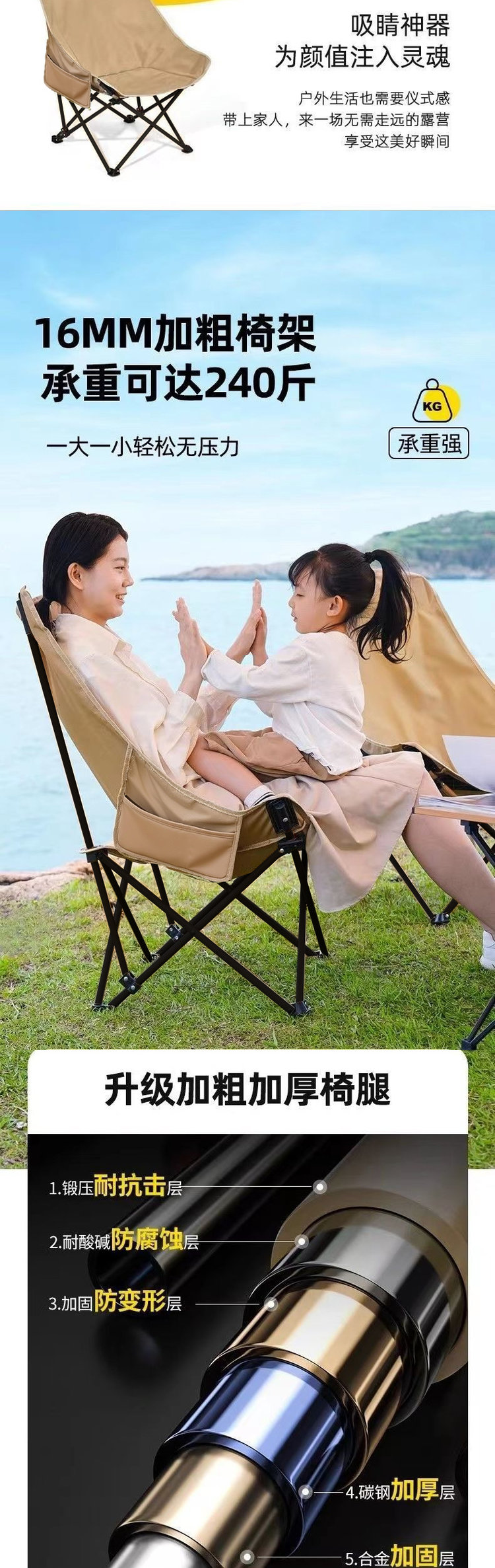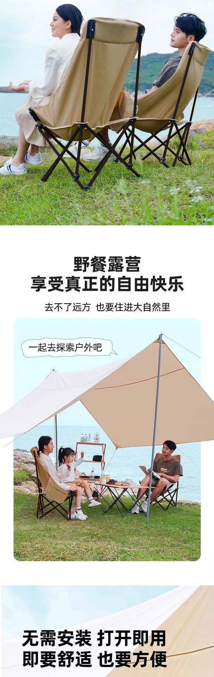 严选 | 老巴丁户外折叠椅 黑色/卡其/绿色