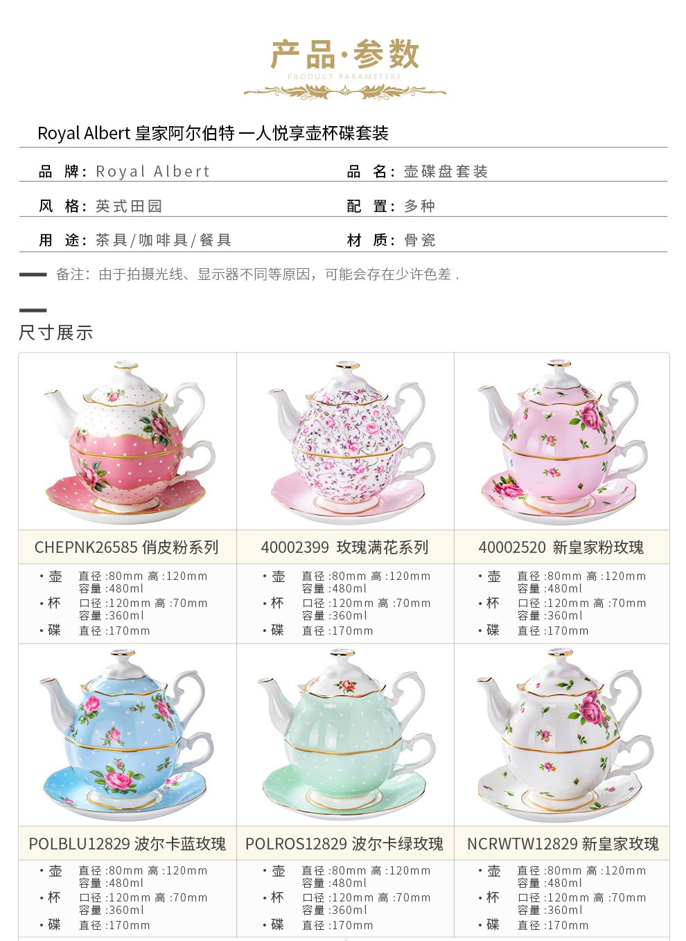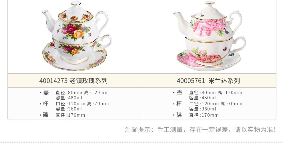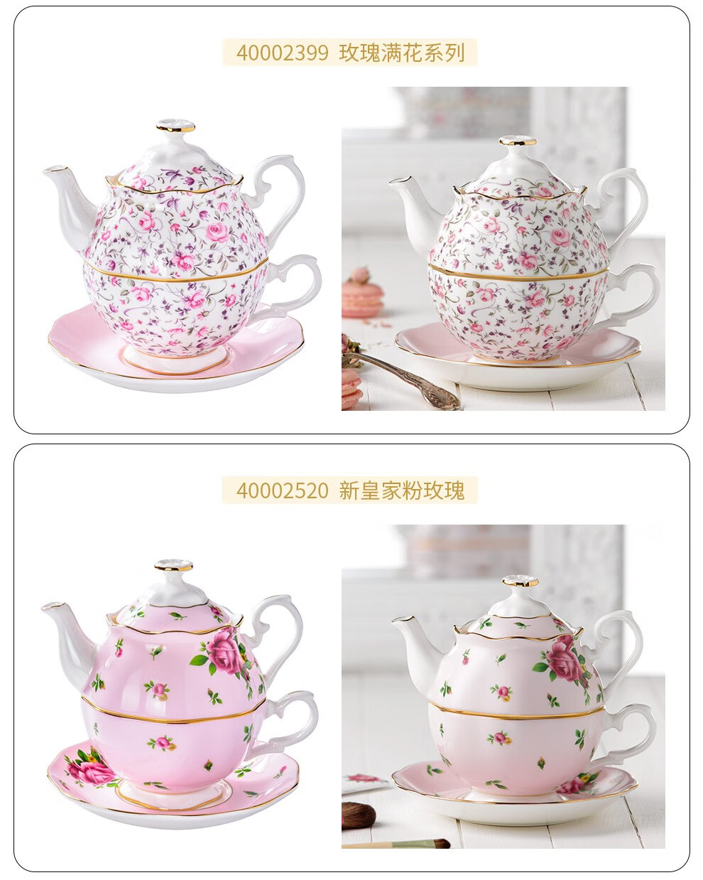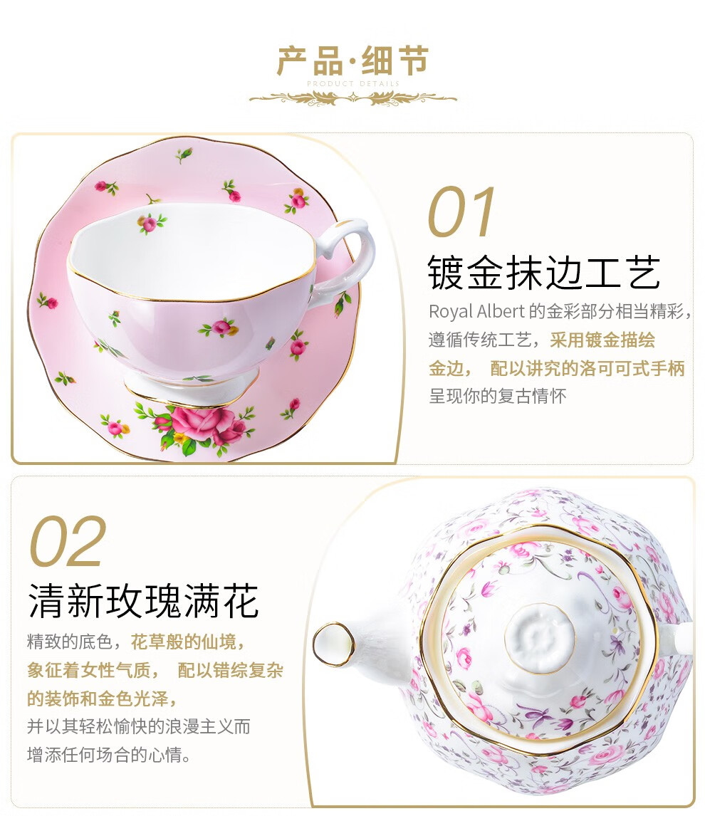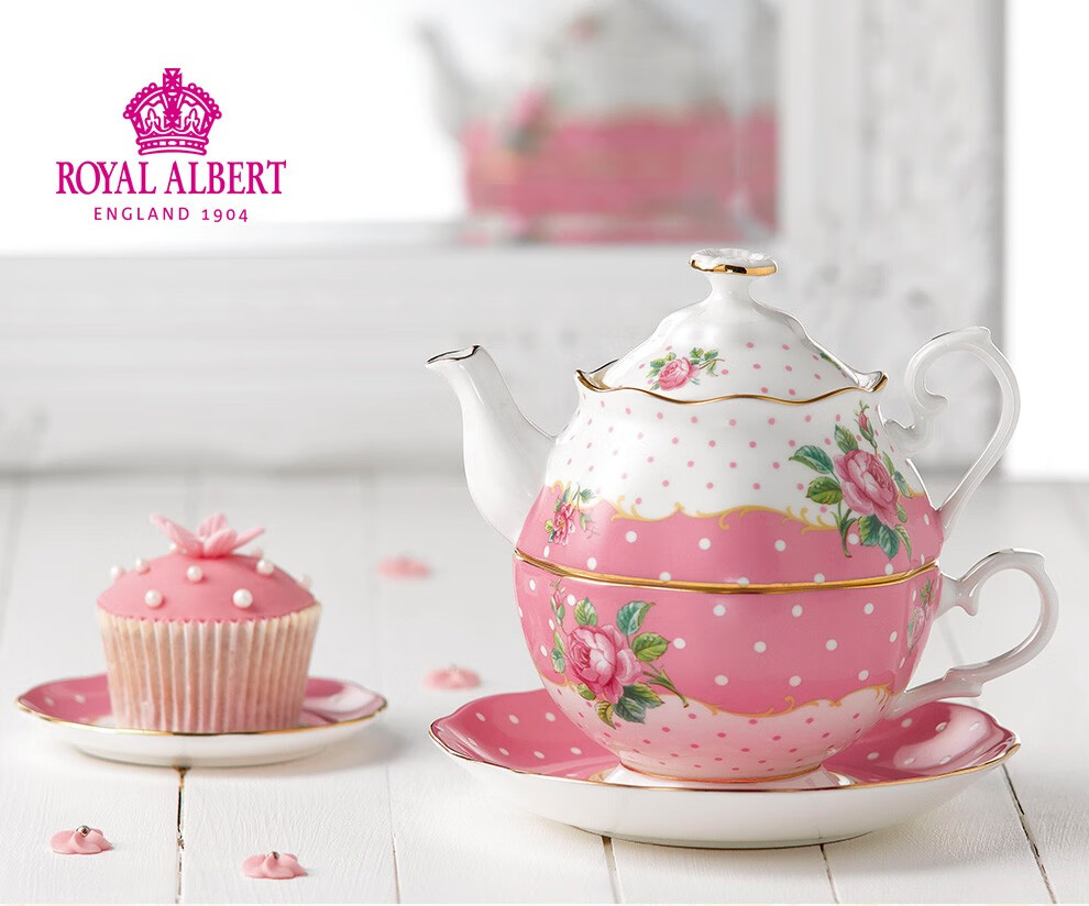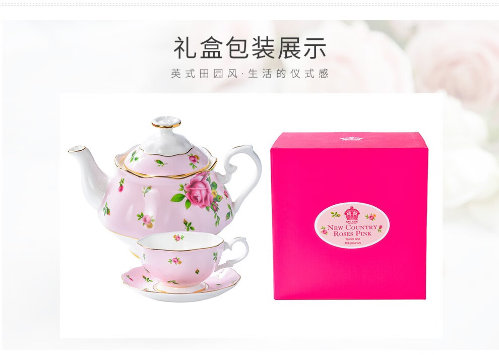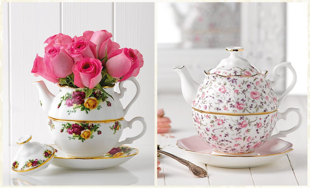 Royal Albert 玫瑰满花 一人悦享茶具套装 玫瑰满花骨瓷咖啡壶一人悦享英式茶具