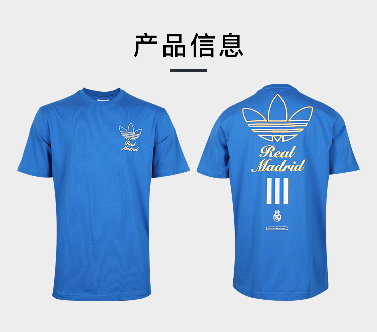 小李子正品ADIDAS阿迪达斯皇马复古风文化短袖T恤成人男JM2123