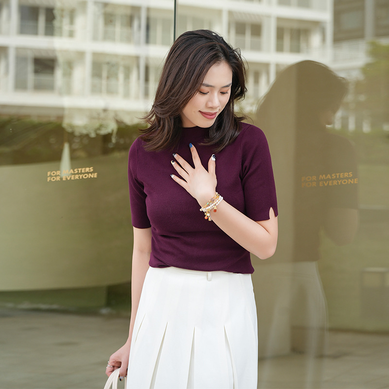 限时特惠239/2件 莱赛尔丝滑立领短袖前短后长开叉时尚针织T恤