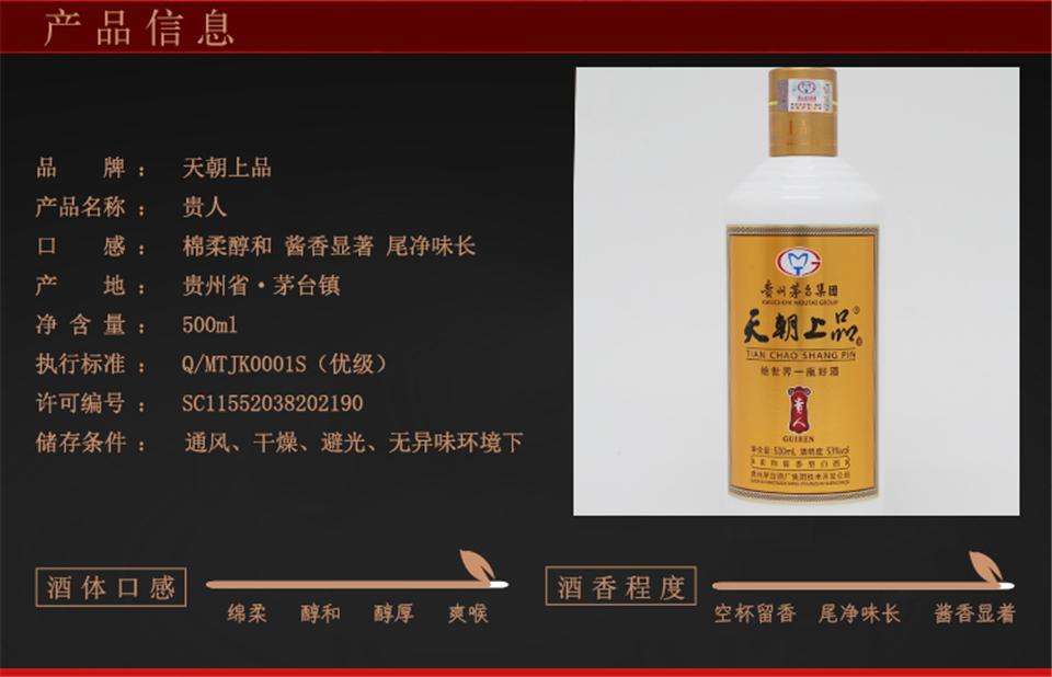 2018年天朝上品贵人酒 53度柔和酱香型白酒 整箱500ml*6瓶包邮