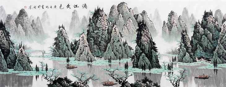 李兆生《漓江秀色》68*178cm 山水横幅作品 办公室/客厅/书法挂画