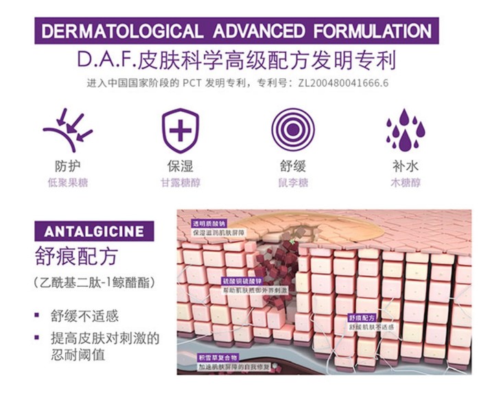 贝德玛家隐藏的宝藏,平价又好用!拥有贝德玛自己的D.A.F.专利,通过了欧洲专业的测试认证!有效应对皮肤泛红、起皮、干痒等种种不稳定状况,强韧角质基底,是弱敏肌的安心港湾,为你铸起城墙皮!不添加酒精、香精的,平时容易敏感的脸和刷酸后的脆弱脸都可以放心用。