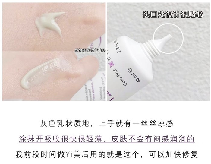 设计很贴心,包装管口为尖头型,用的时候很容易控制用量,可以在双颊、额头、鼻子、下巴五个地方各挤出绿豆大小,涂抹均匀。