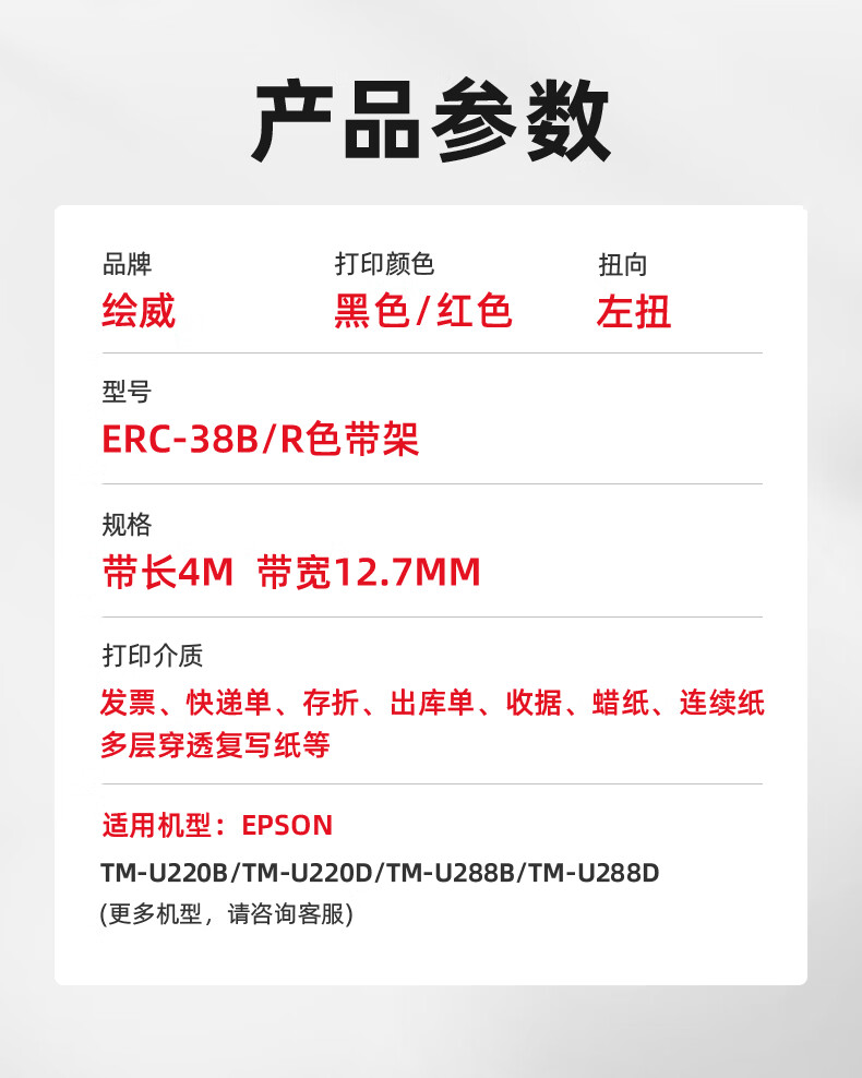 绘威ERC-38B/R色带架 适用爱普生EPSON TM-U220B U220D U288B U288D打印机色带含芯【黑红双色】
