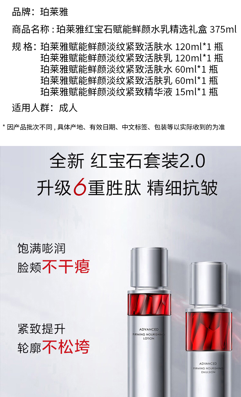 珀莱雅红宝石赋能鲜颜水乳精选礼盒