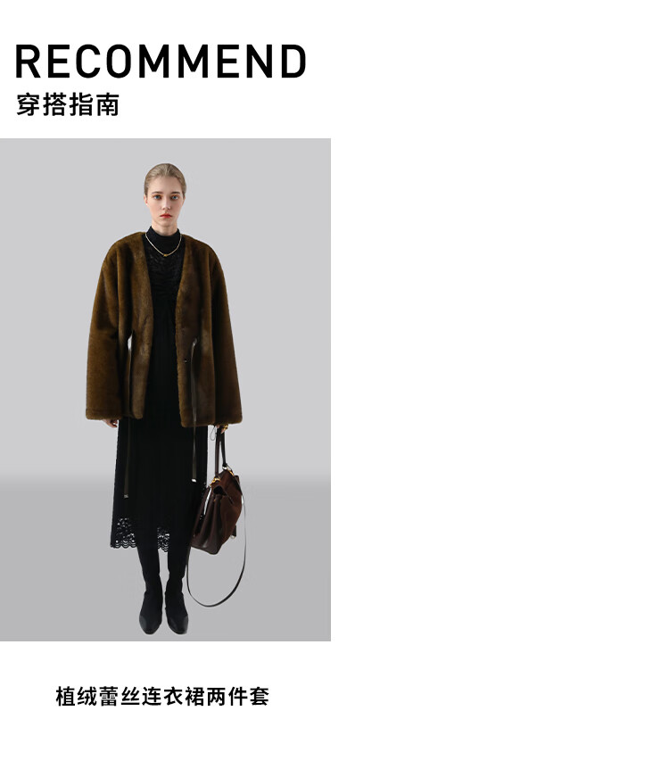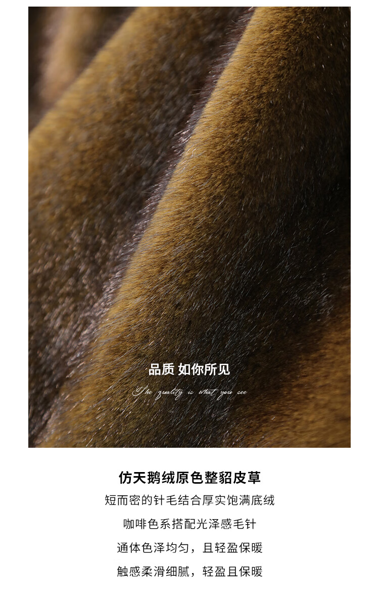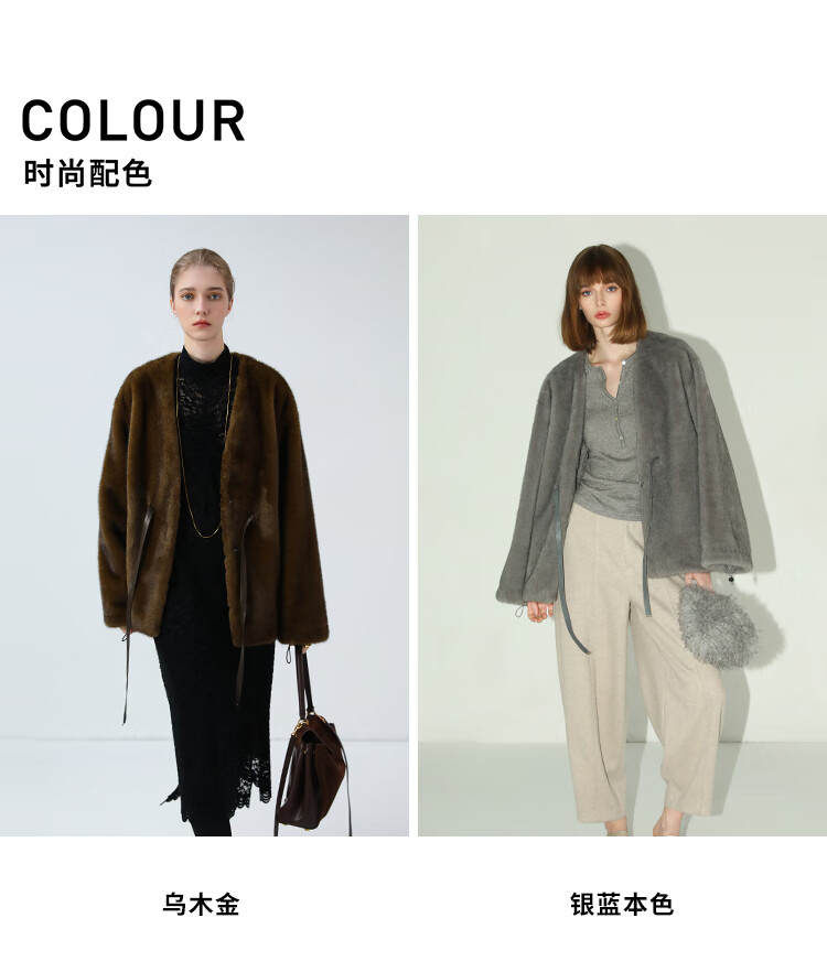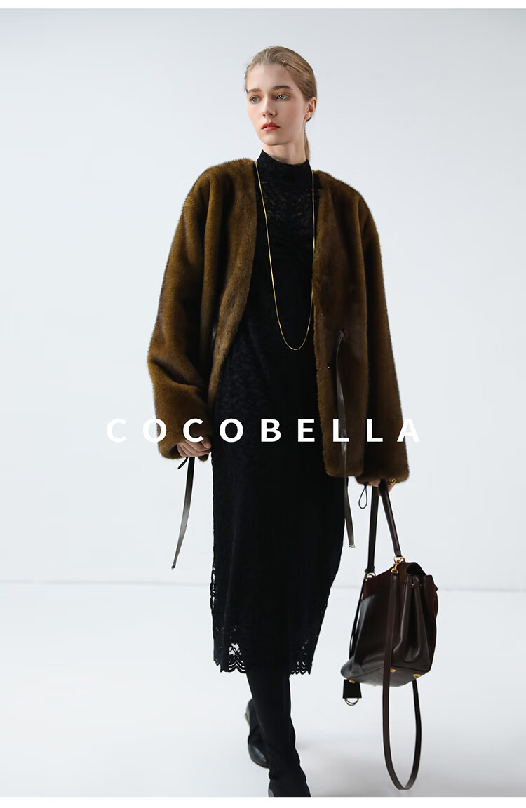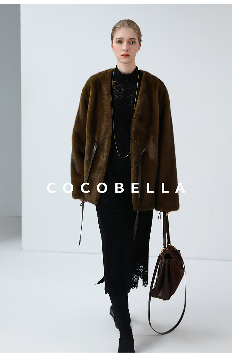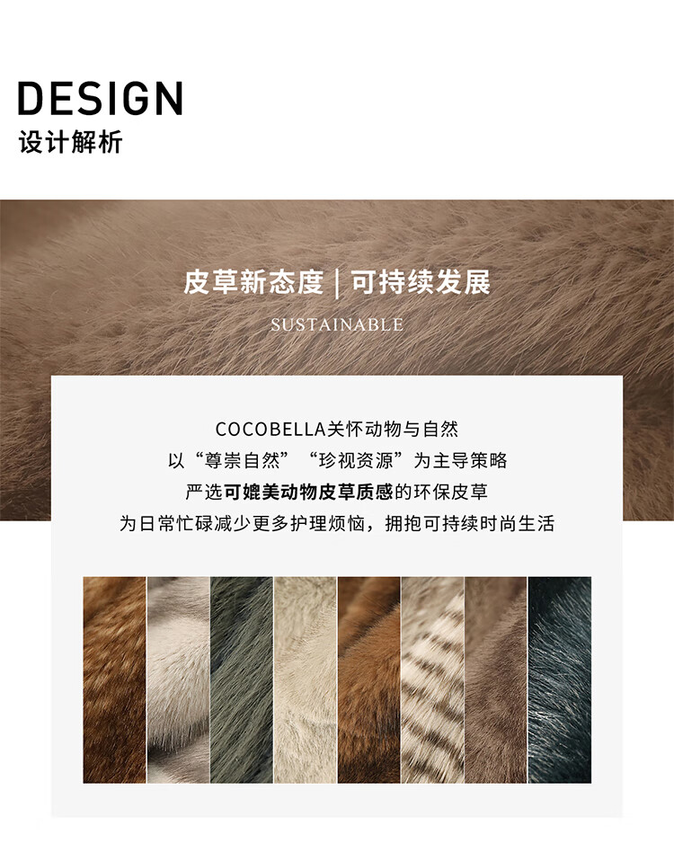 COCOBELLA高奢原色仿貂绒环保皮草外套PU腰带短款大衣FU3003-2