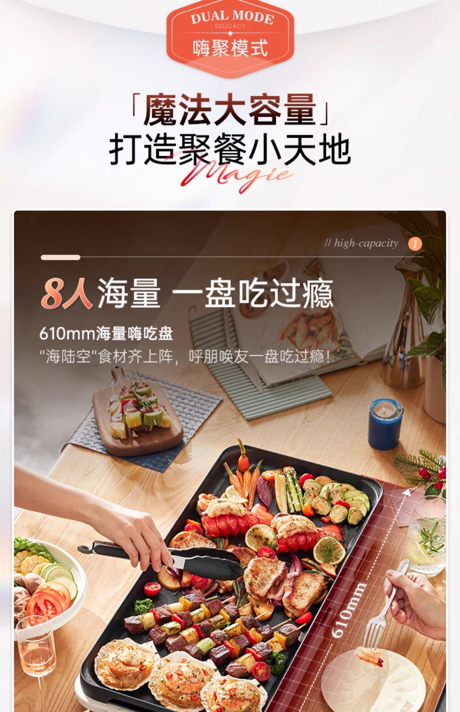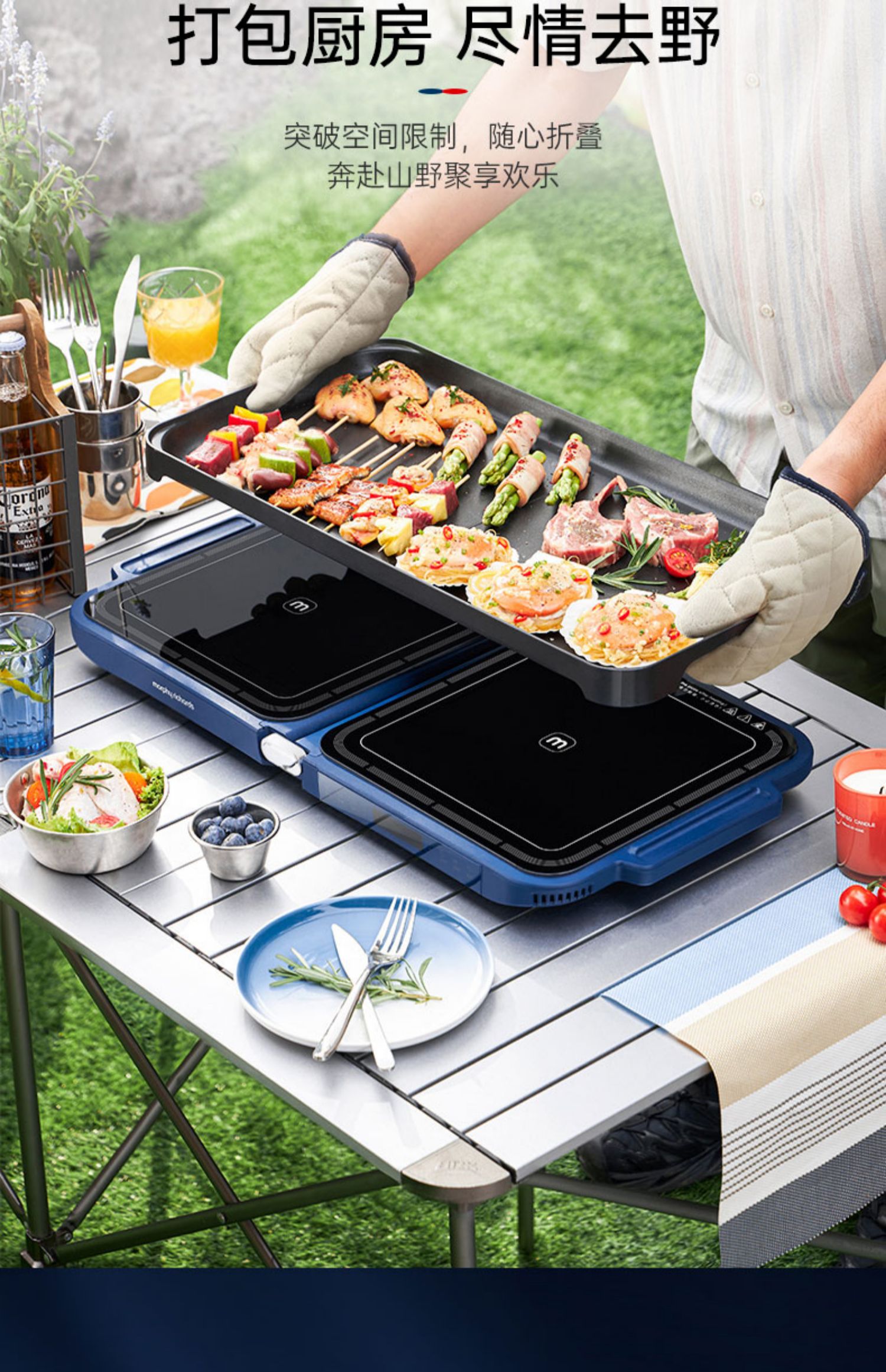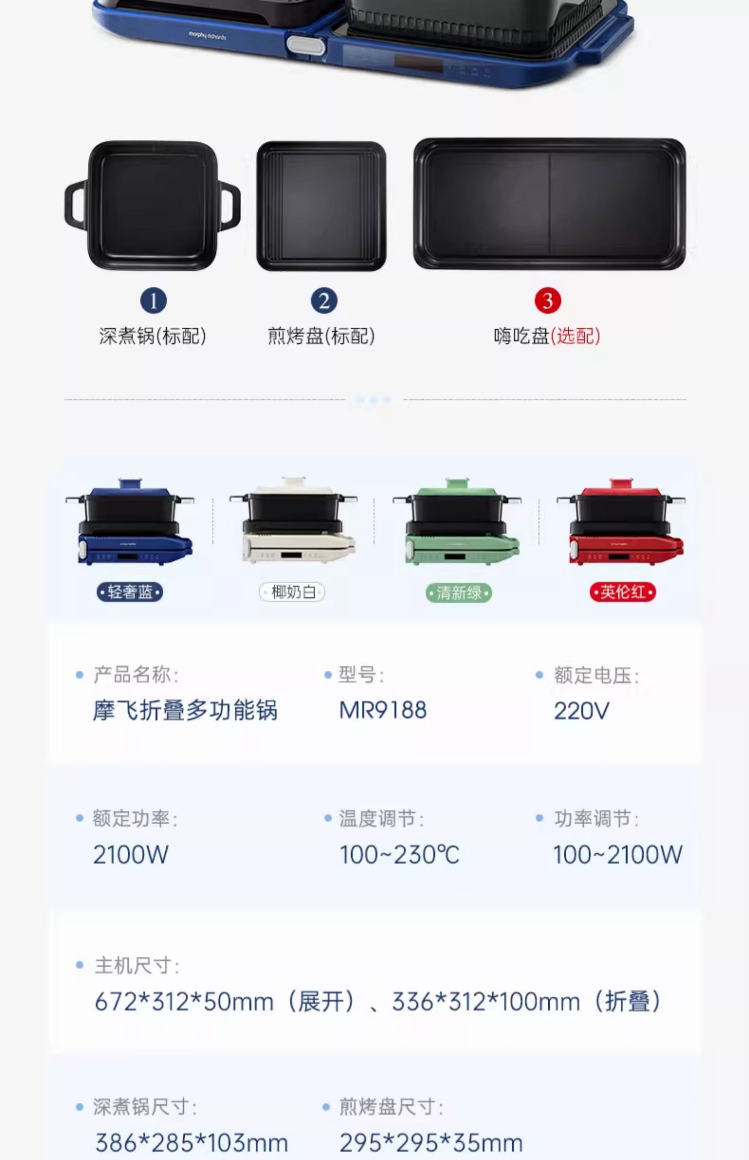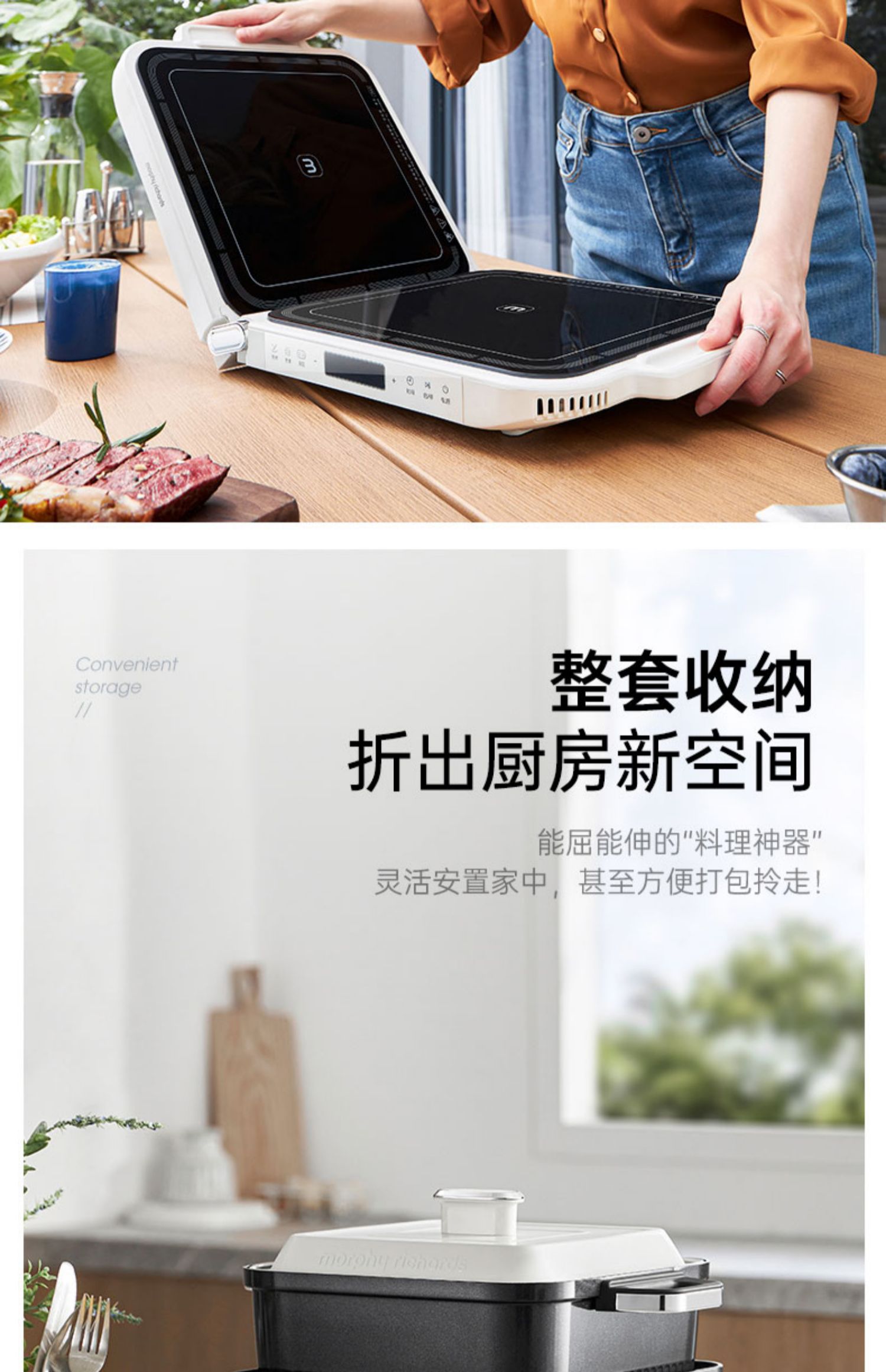 【摩飞多功能折叠料理锅】摩飞三代多功能料理锅折叠嗨吃锅烤肉涮一体电火锅蒸煮炒煎烤肉锅