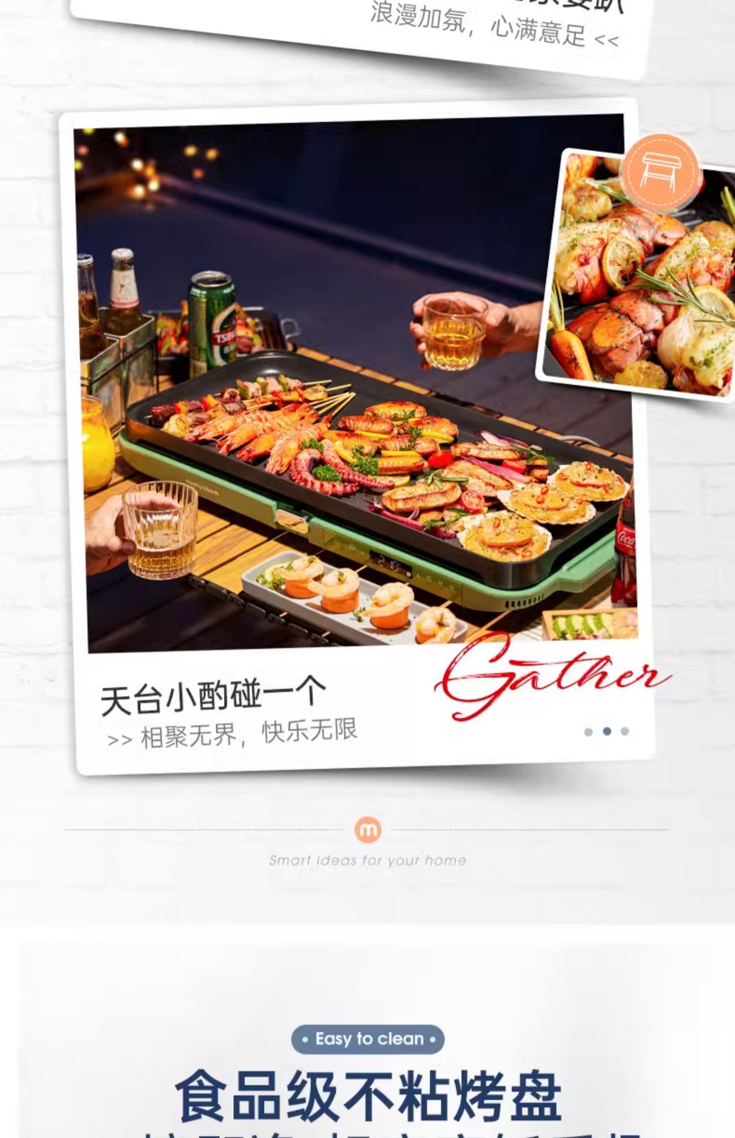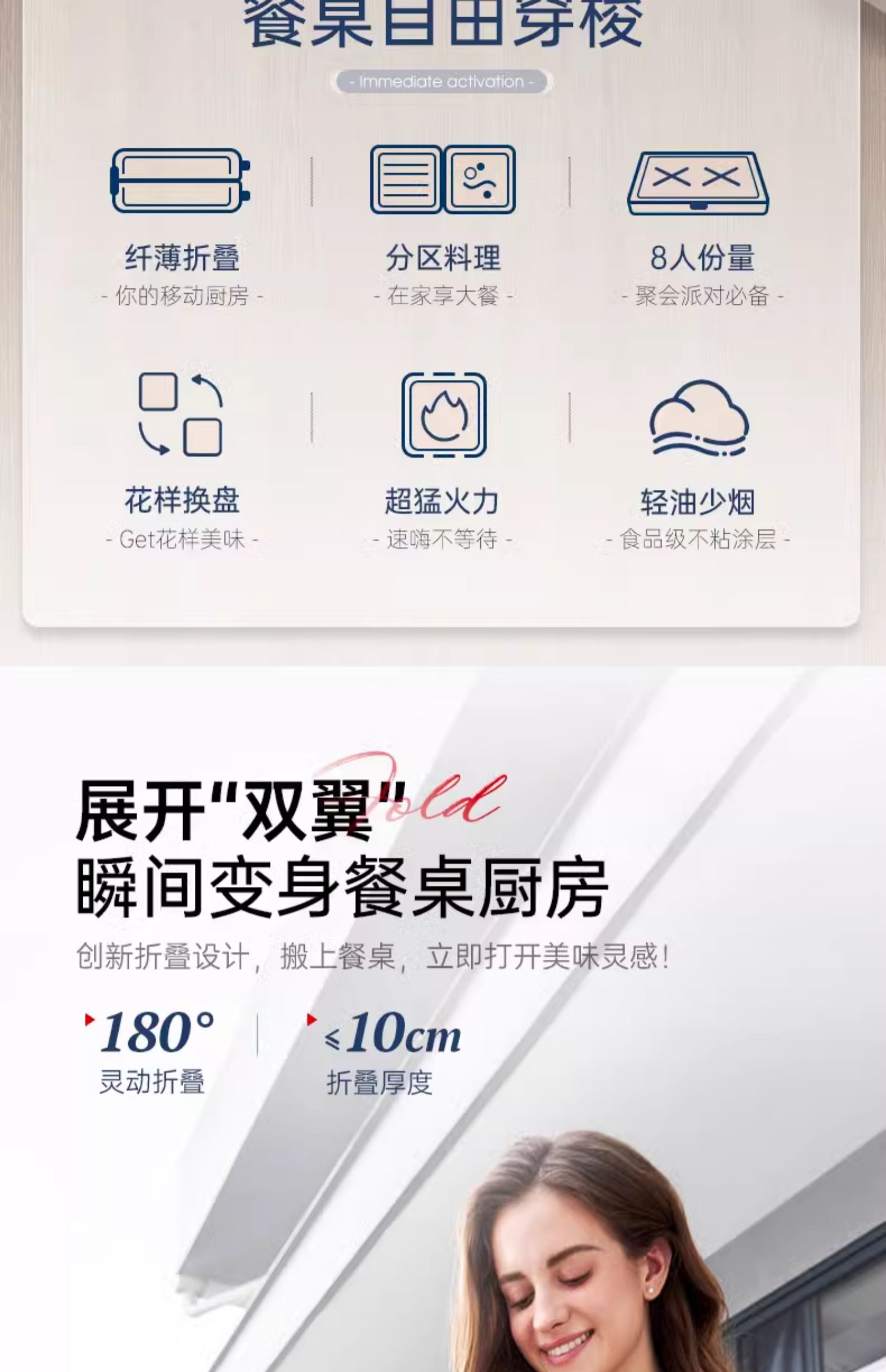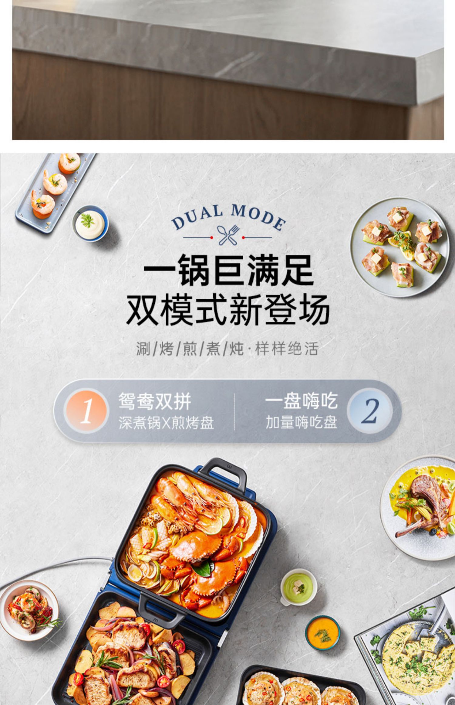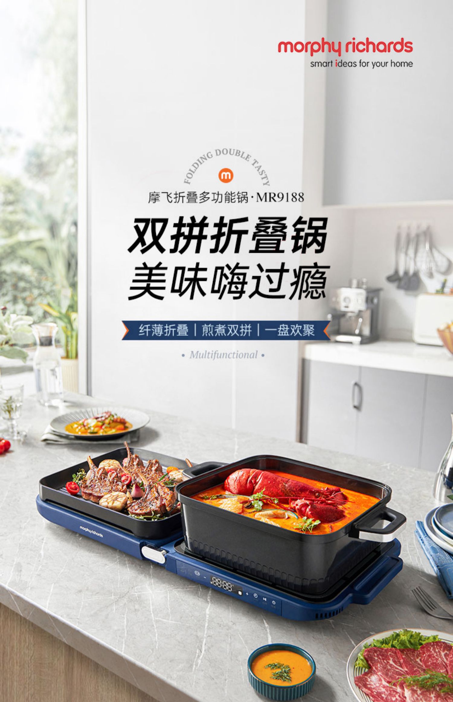 【摩飞多功能折叠料理锅】摩飞三代多功能料理锅折叠嗨吃锅烤肉涮一体电火锅蒸煮炒煎烤肉锅