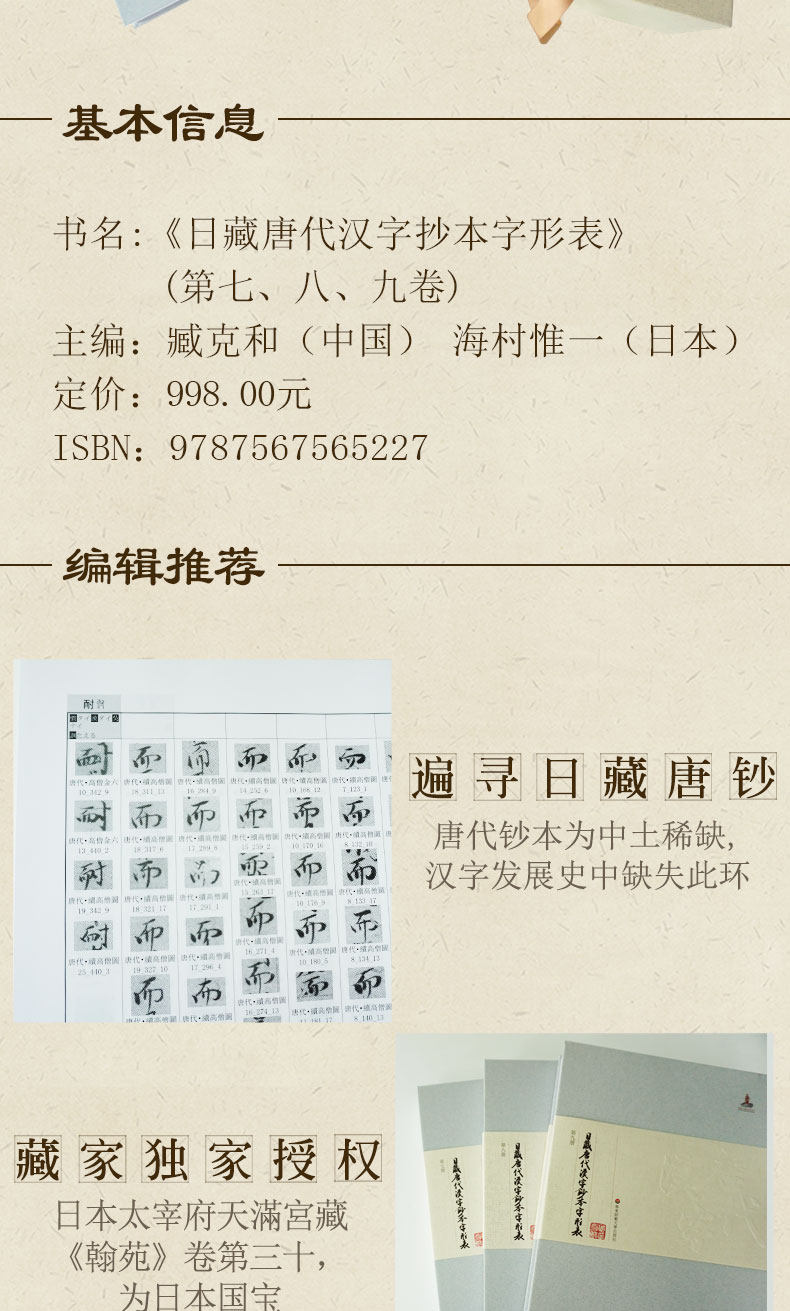 日藏唐代汉字抄本字形表(第七、八、九卷) 唐代钞本国宝 臧克和 海村惟一