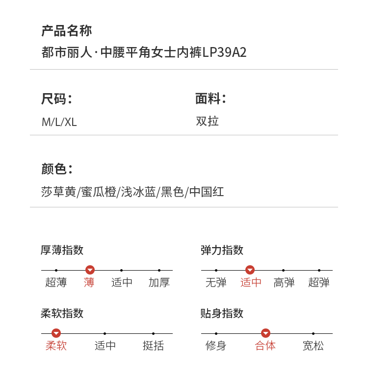都市丽人舒软挺塑系列双拉面料中腰平角塑身配裤新年本命年红品LP39A2