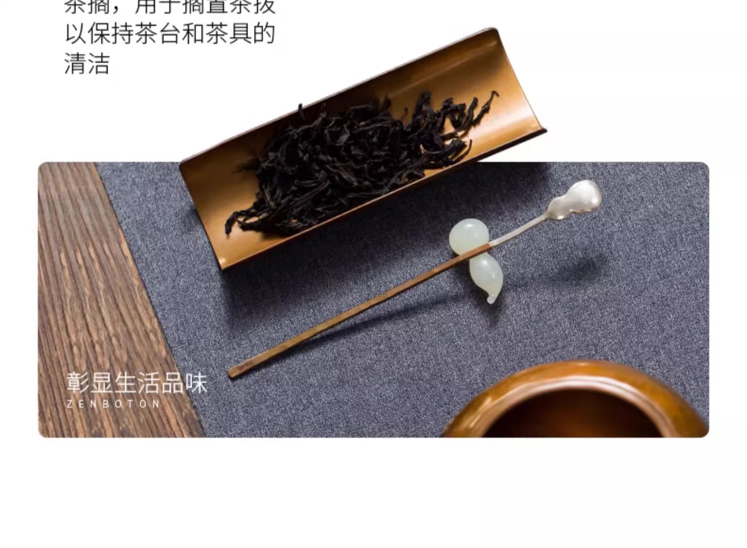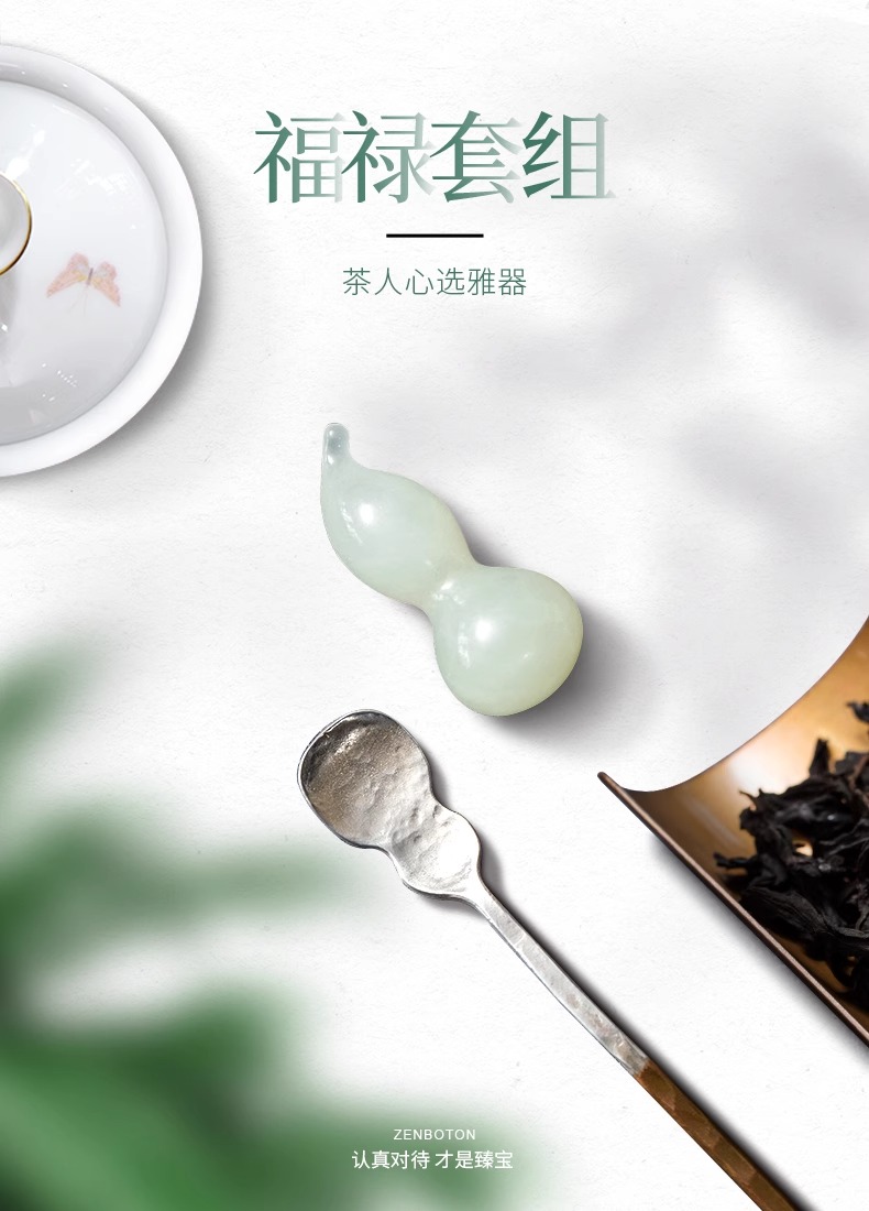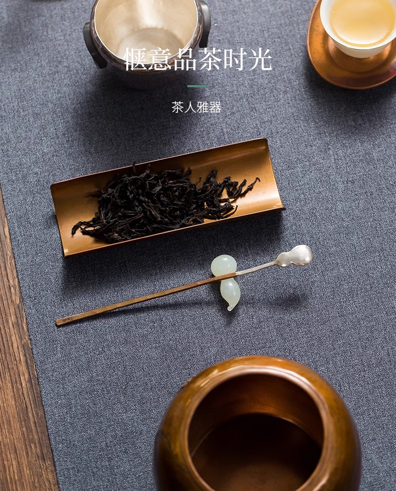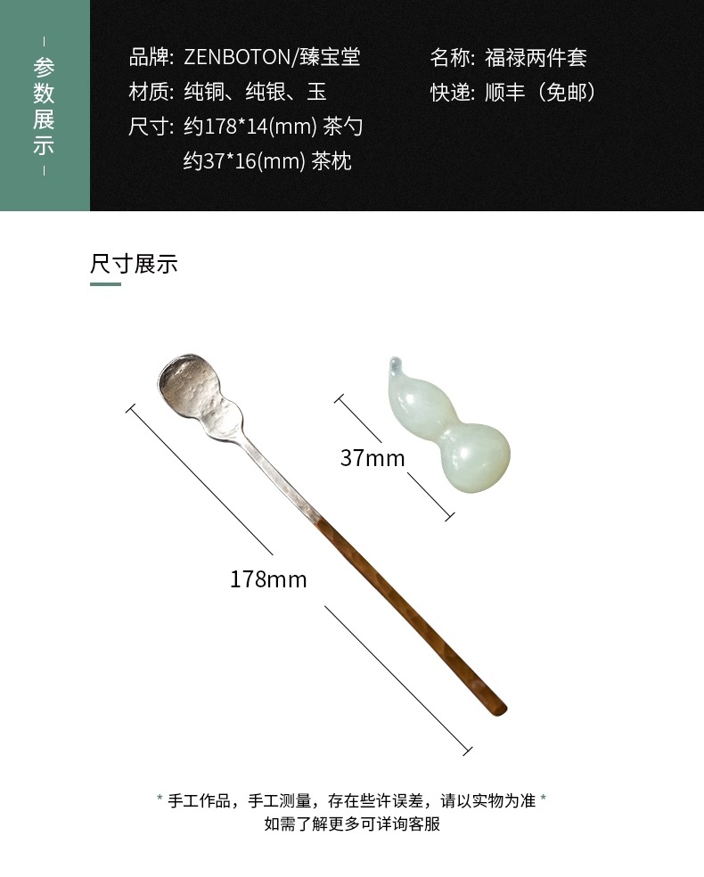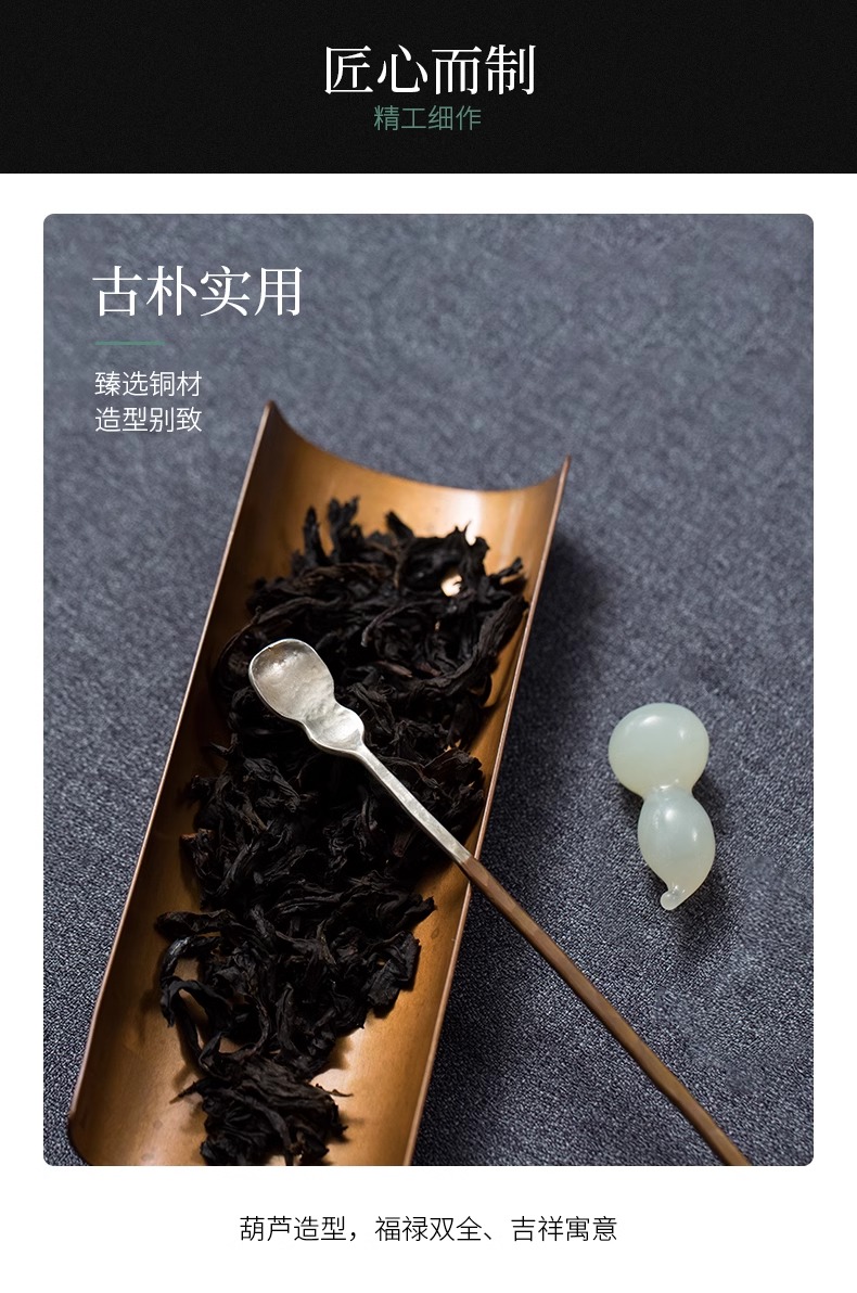 臻宝堂银铜茶匙茶枕取茶勺纯手工葫芦型茶具六君子配件福禄茶拨勺两件套