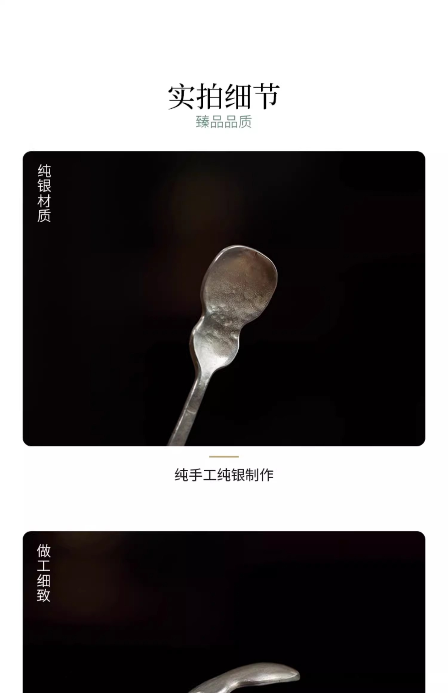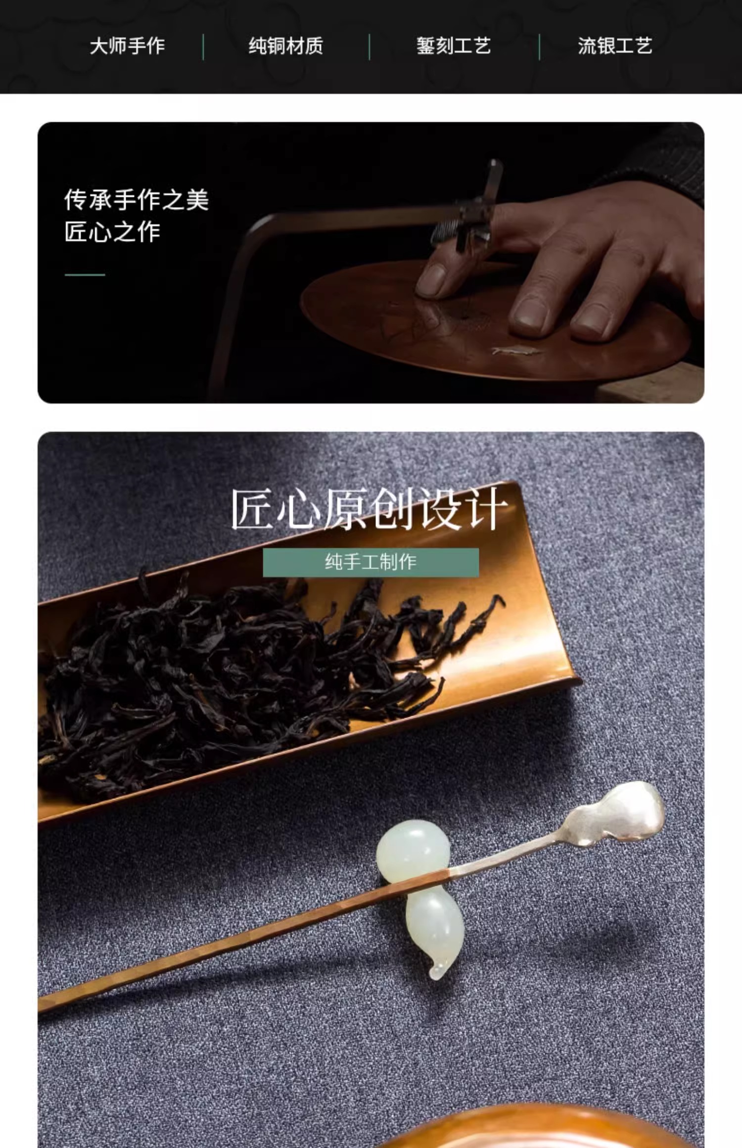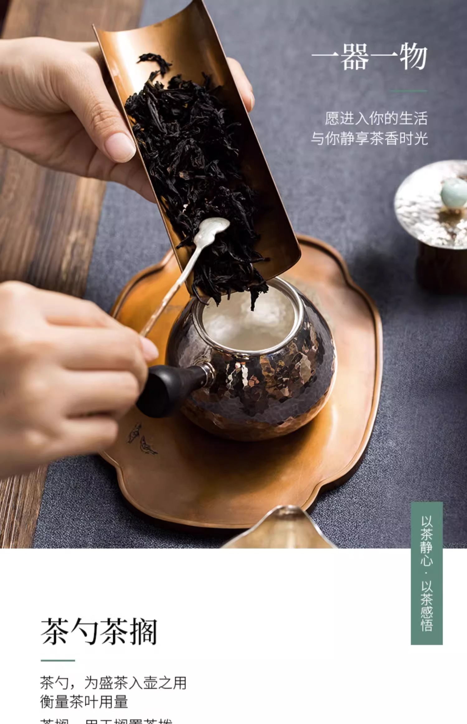 臻宝堂银铜茶匙茶枕取茶勺纯手工葫芦型茶具六君子配件福禄茶拨勺两件套