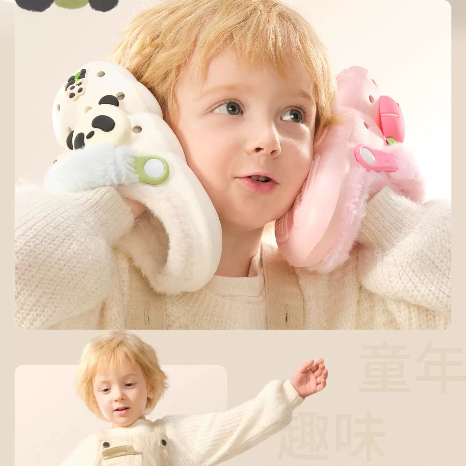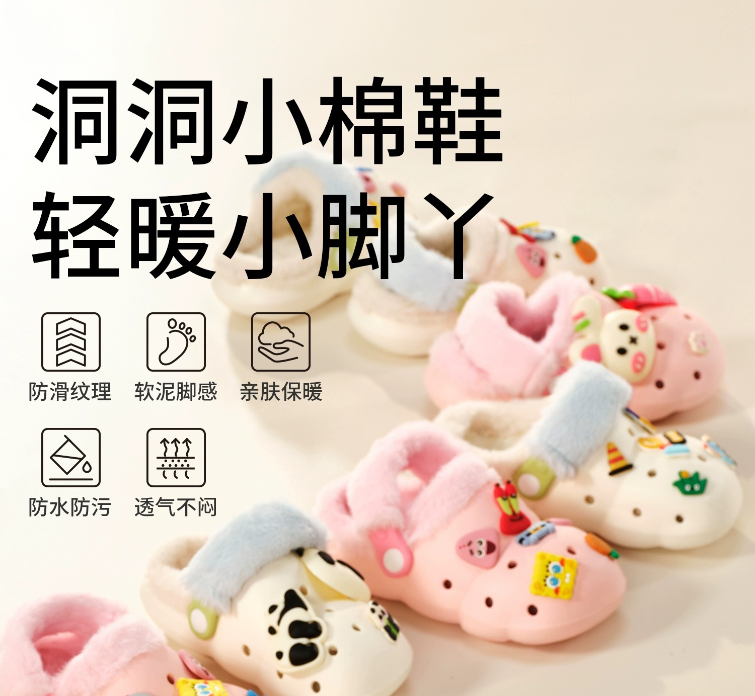 科巢儿童棉拖鞋洞洞鞋宝宝冬季防水滑加绒男女童室内家居秋天保暖