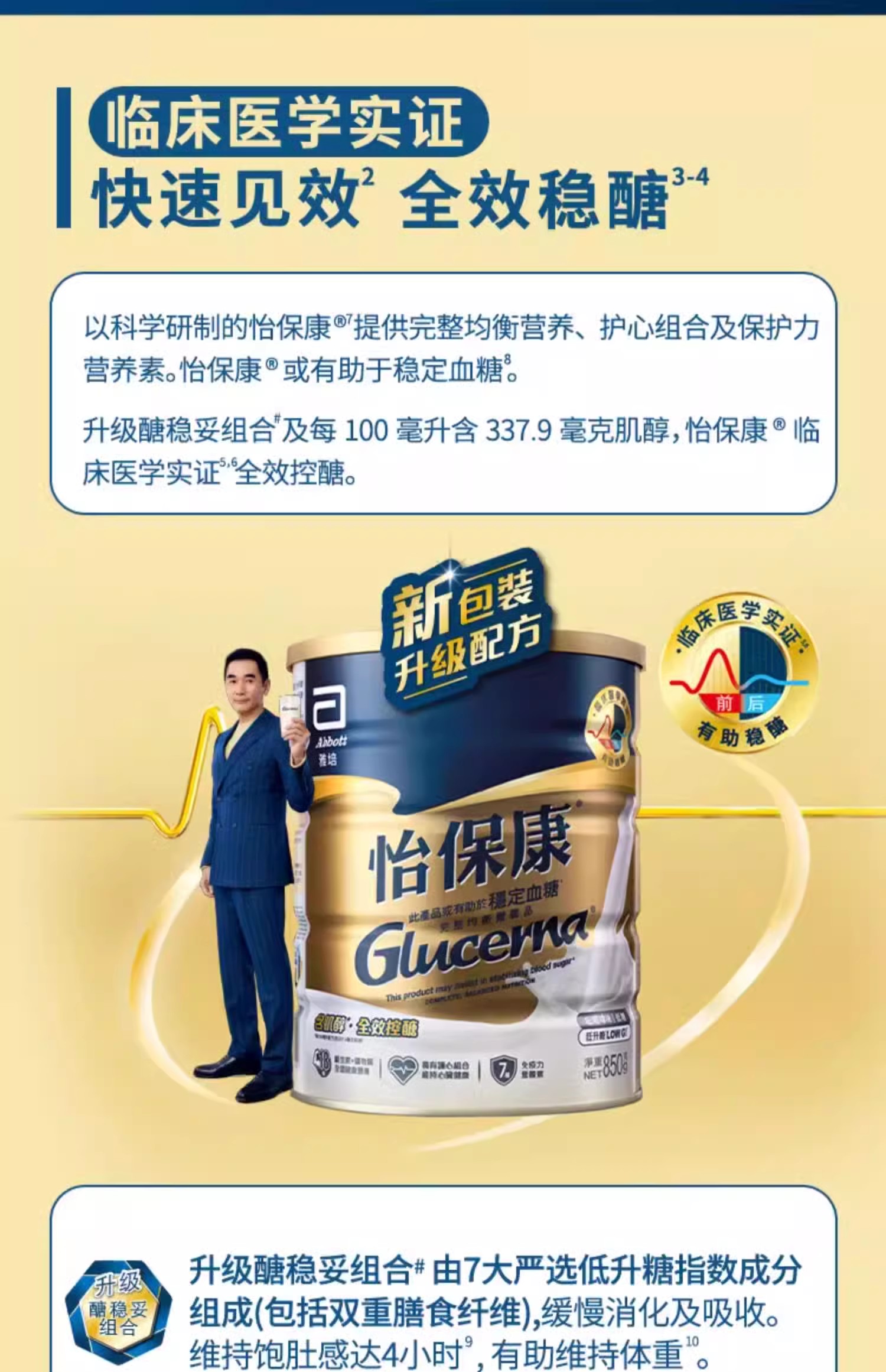 港版雅培 Abbott怡保康控制血糖 蛋白粉) 850g 成人奶粉