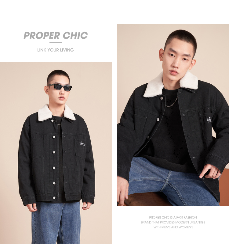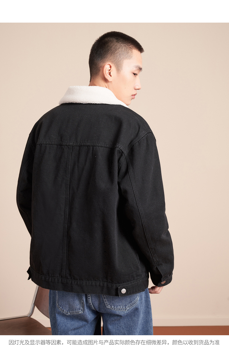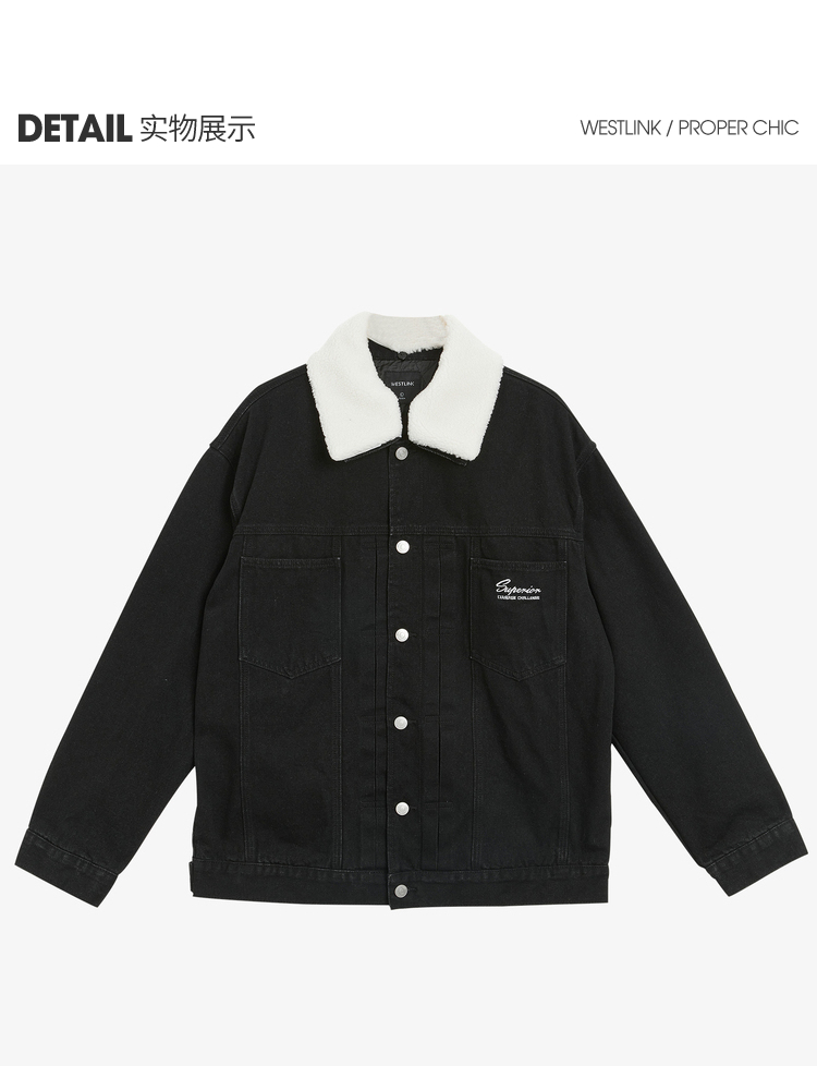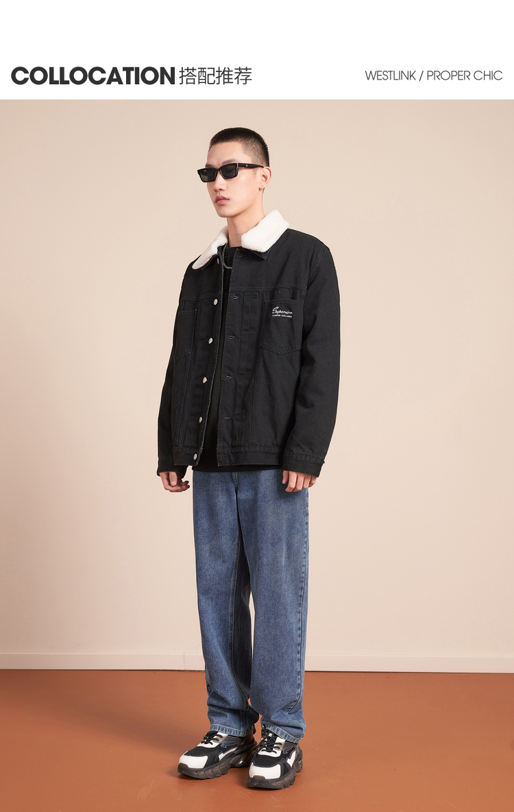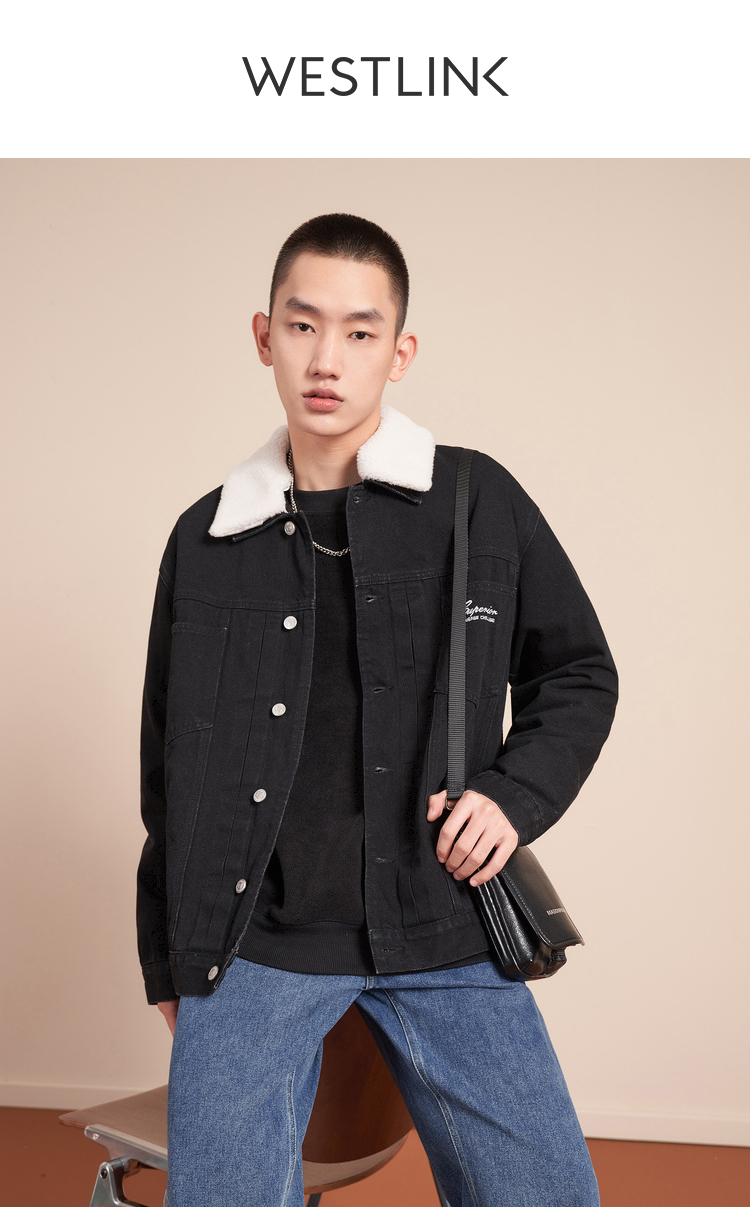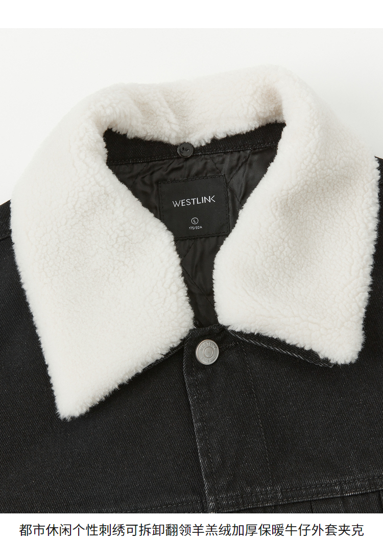 西遇加厚羊羔绒牛仔外套男2023年冬款翻领保暖刺绣夹克11922390