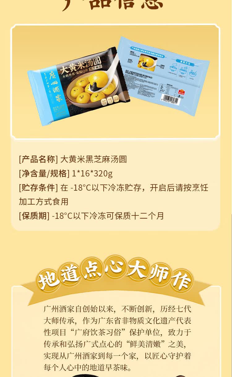 广州酒家大黄米黑芝麻汤圆320g/袋