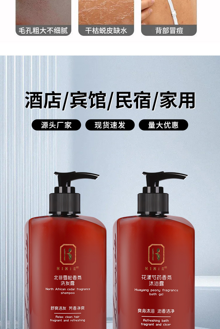 酒店小瓶洗发水沐浴露液洗漱用品高档宾馆民宿专用300ml瓶装批发 商品图4