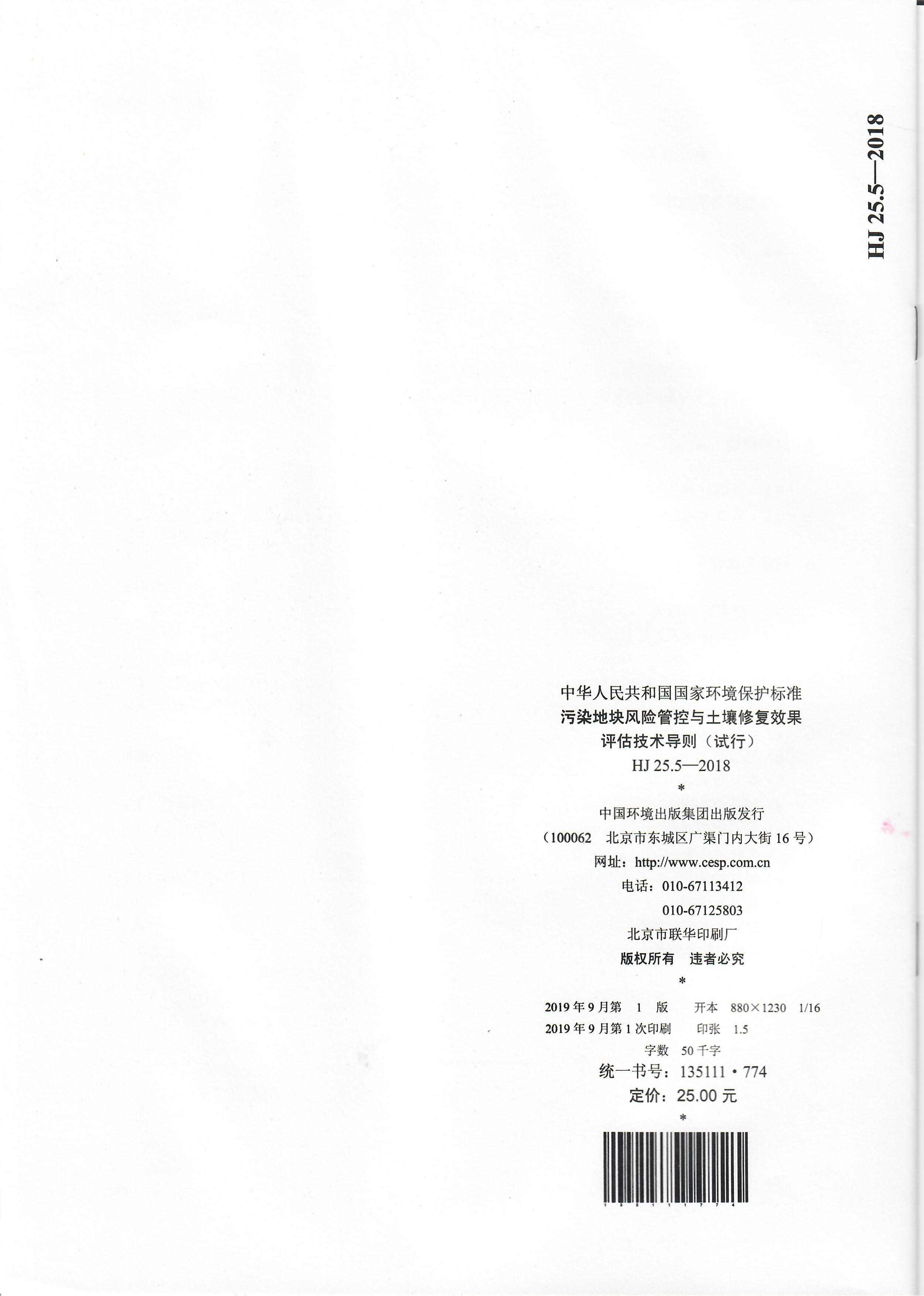 HJ25.5-2018 污染地块风险管控与突然修复效果评估技术导则(试行) 中国环境