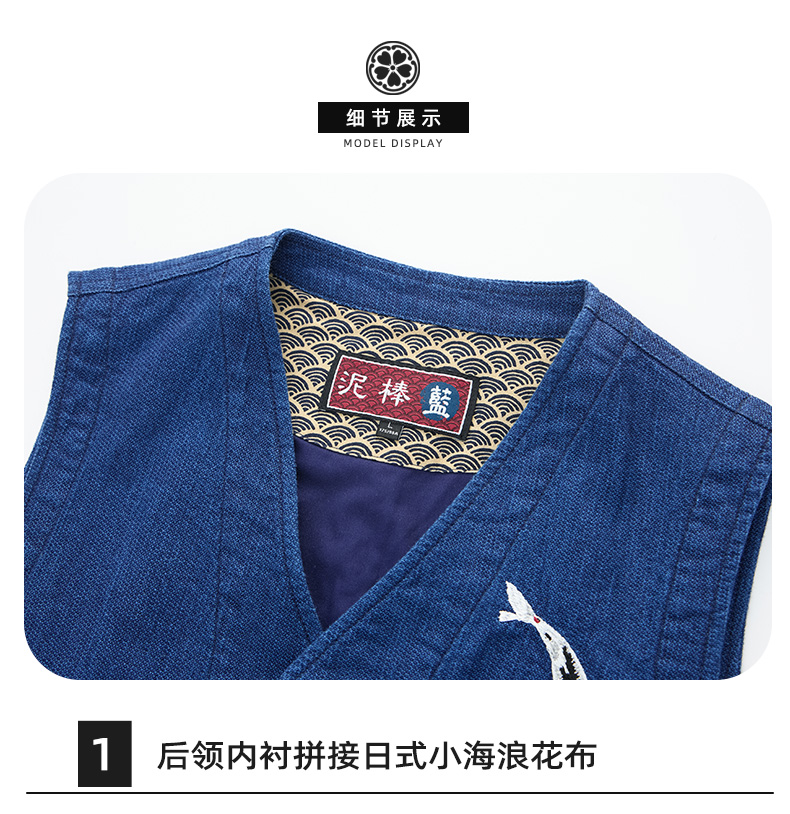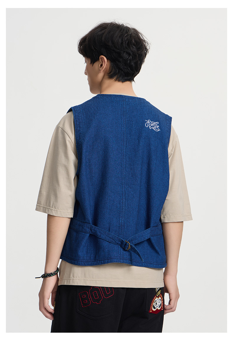 ONIARAI/鬼洗25春夏棒系列手绘锦鲤复古靛蓝提花马甲男 N340212
