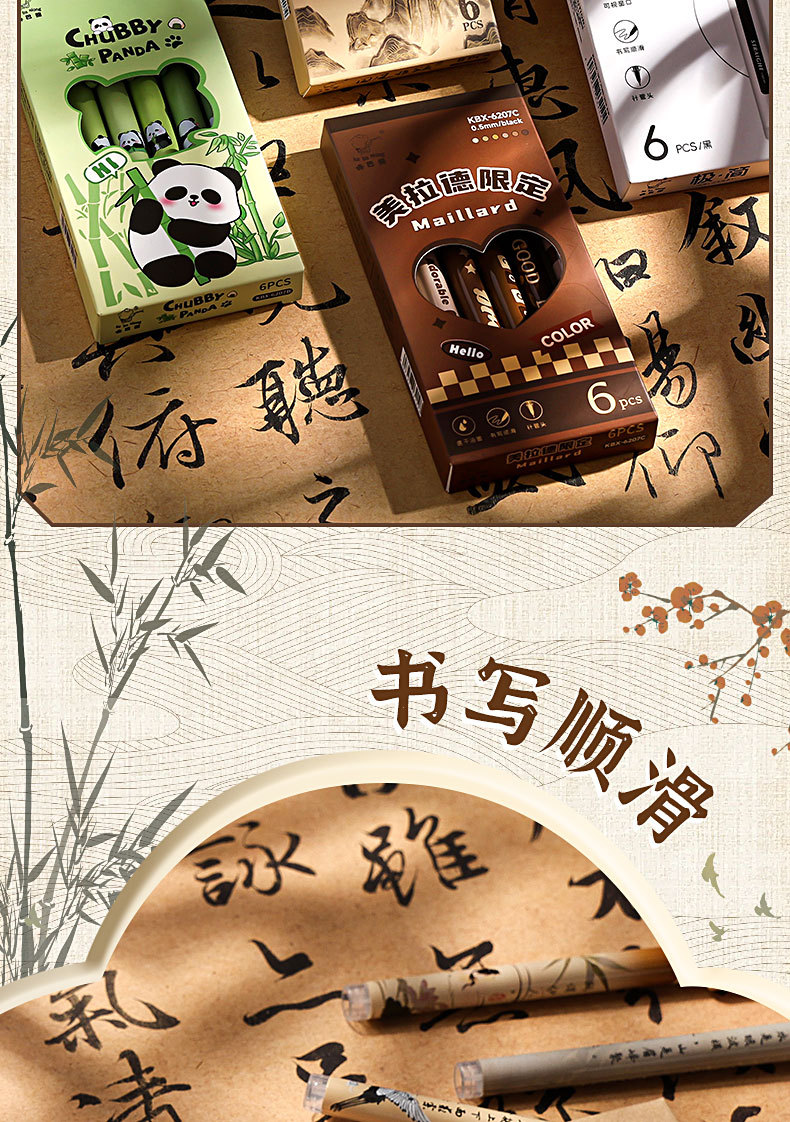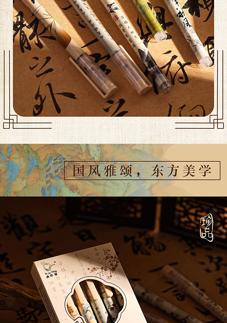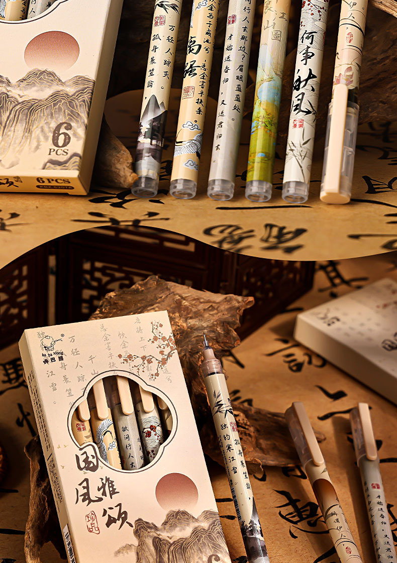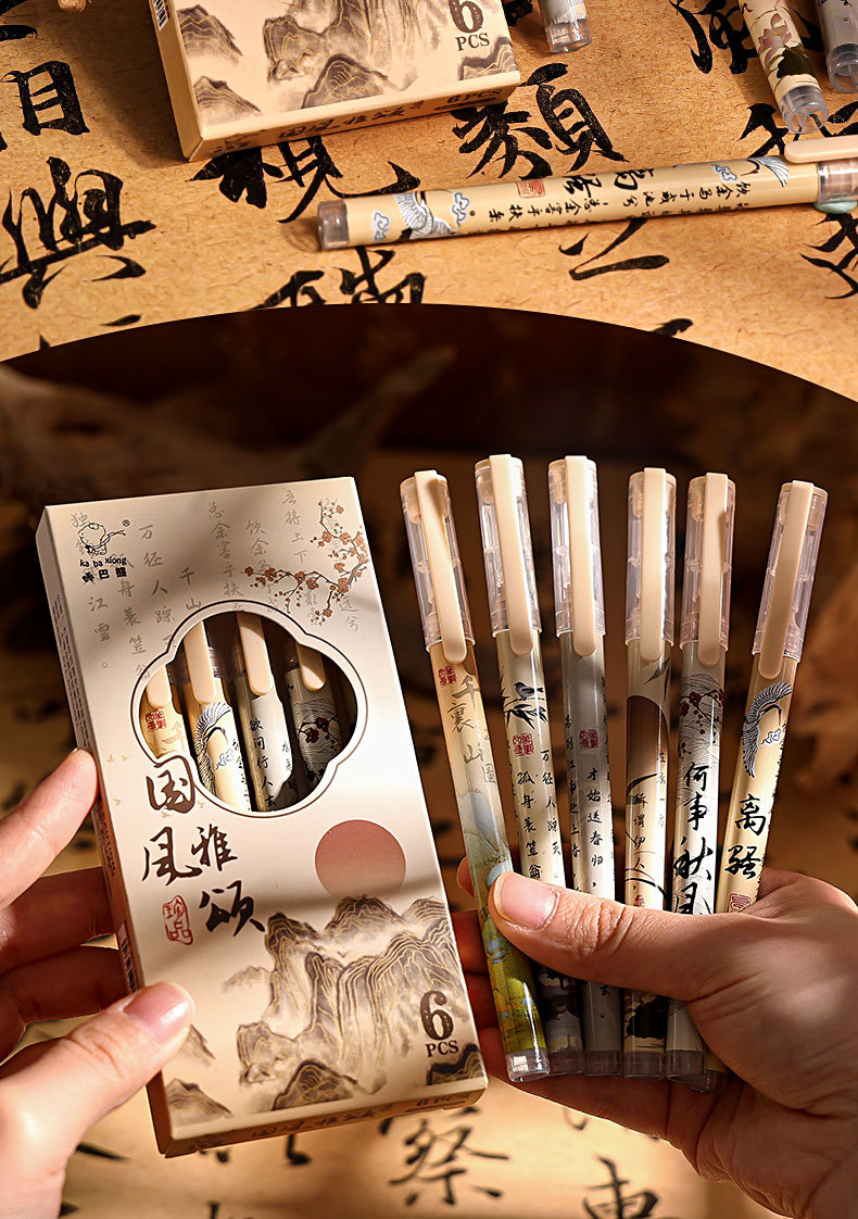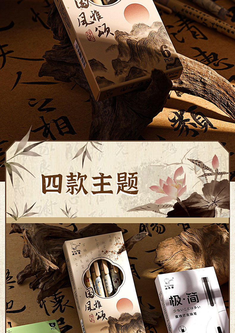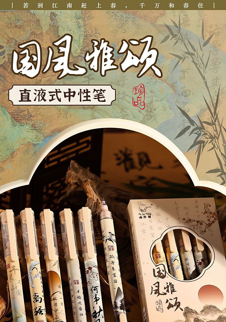 【速抢❗️9.9秒6支🔥新国风走珠笔】东方美学,书写顺畅,字迹清晰,速干成型!开学季学生考试古风速干直液式中性笔刷题笔0.5黑笔笔芯顺滑水笔