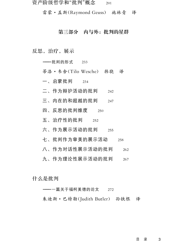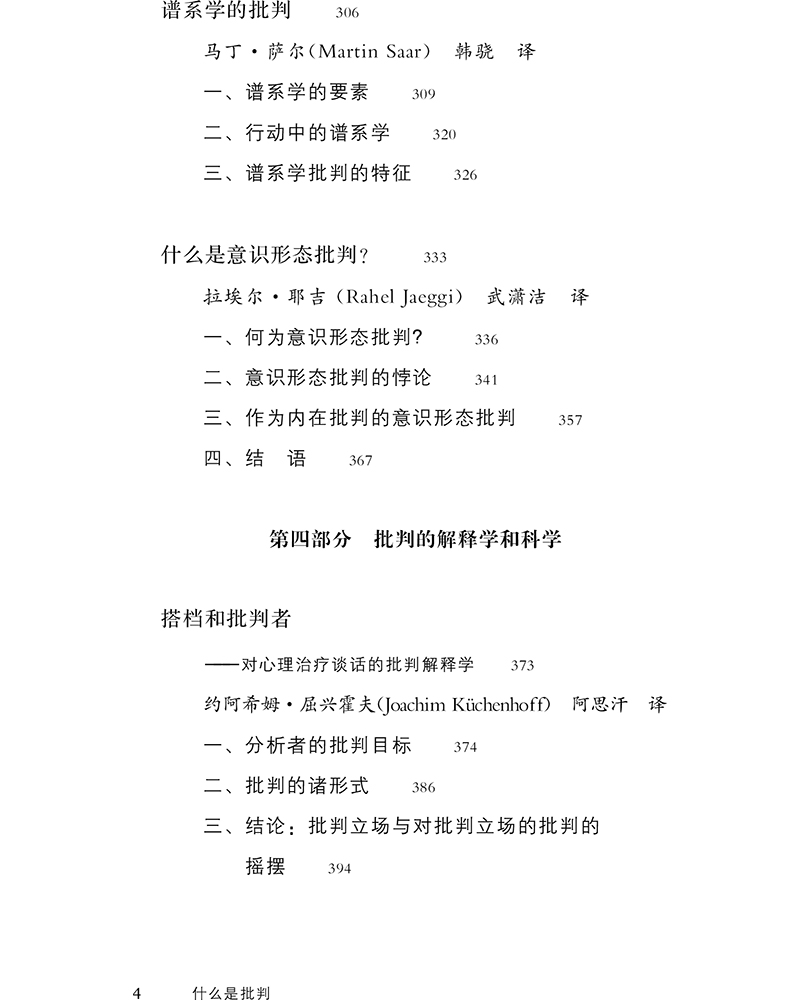 该论文集集合了与批判理论相关的一流学者对此问题的思考,不仅包含耶吉等新一代法兰克福学派的基本主张,而且还包括解释学、后结构主义等学派的批评反思。该论文集对我们深入了解批判的内涵、规范性基础及其与科学的关系等一系列关键主题都具有重要的参考价值。