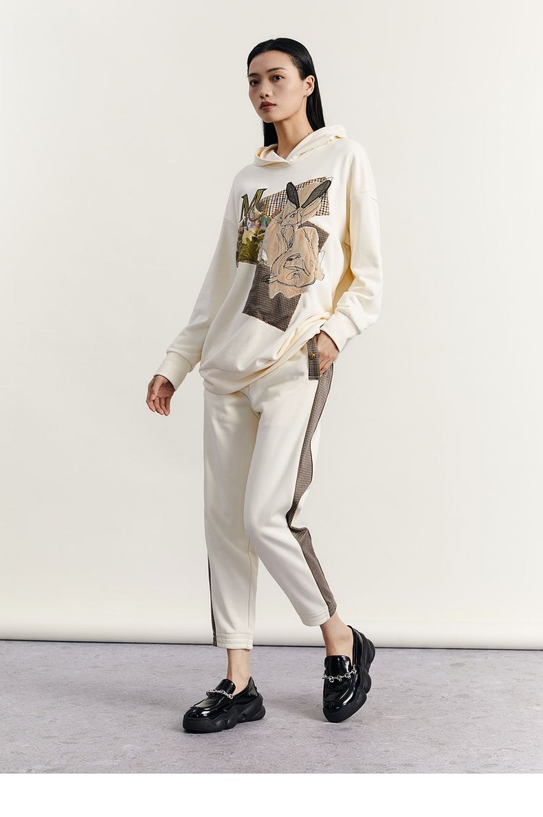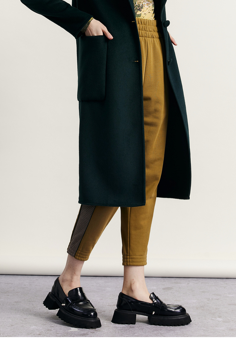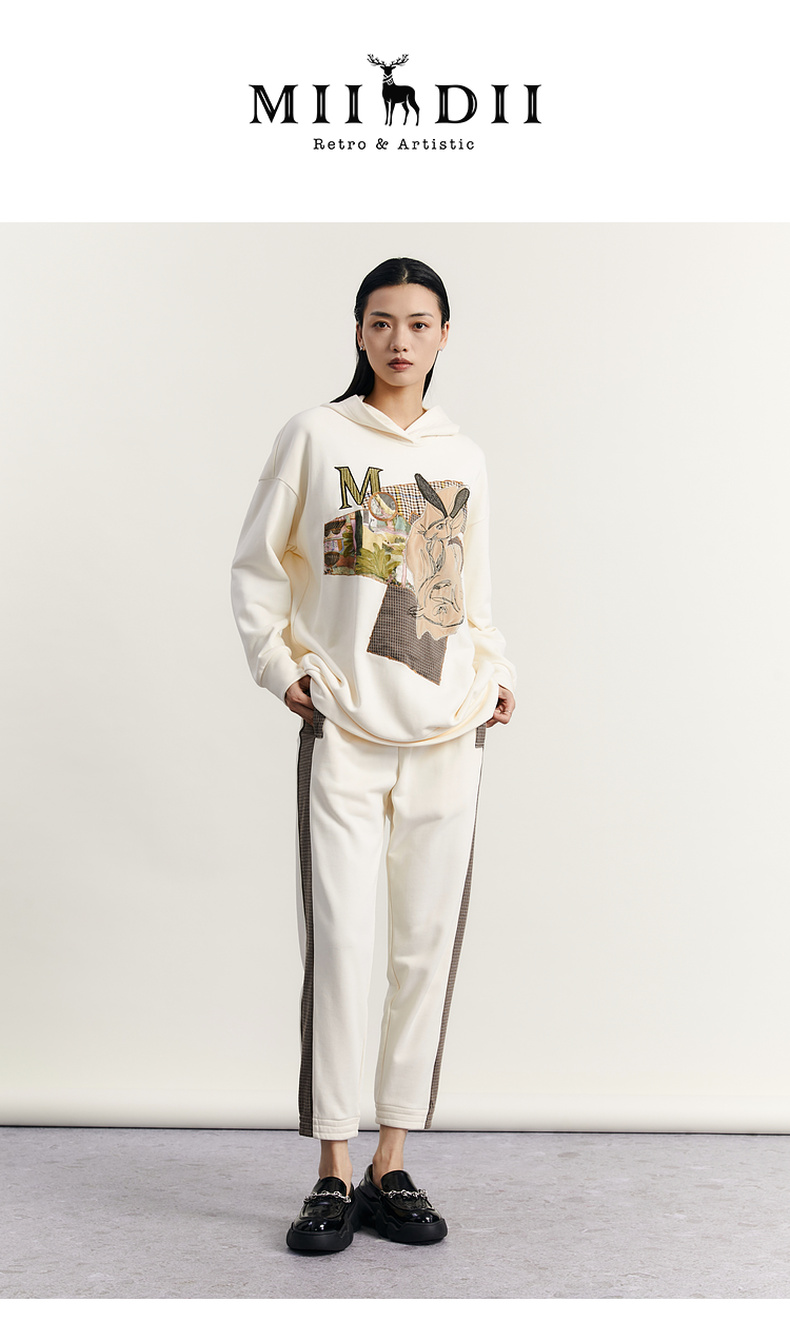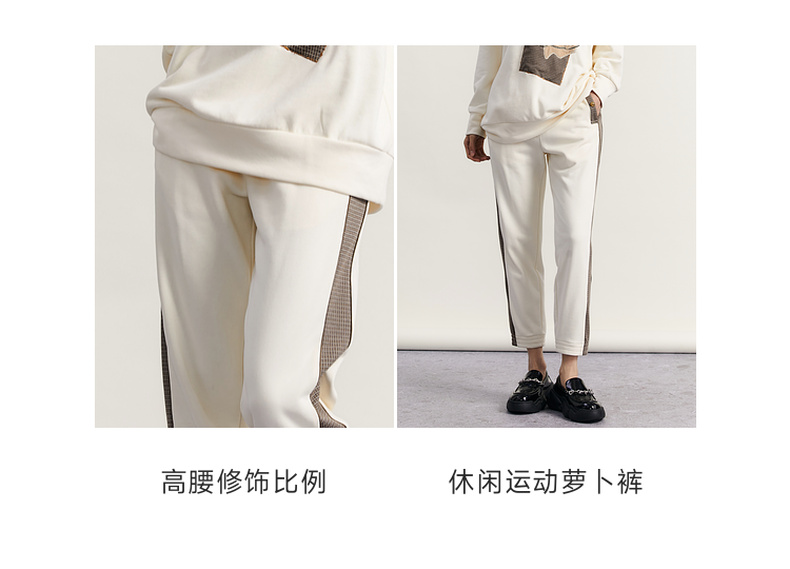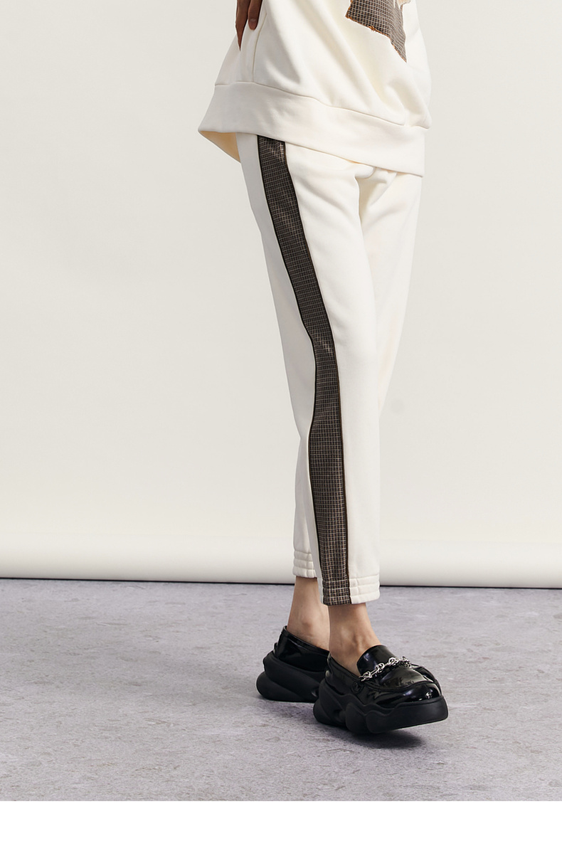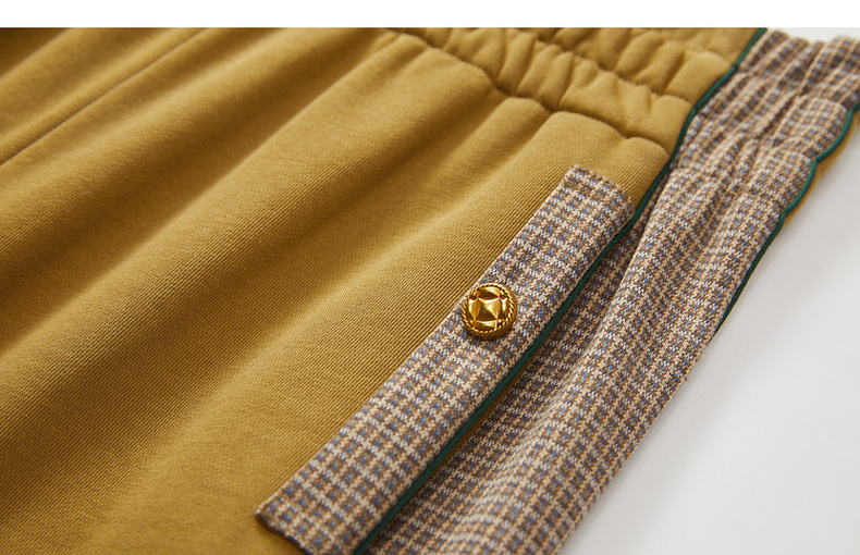 谜底休闲裤女2023秋新款复古拼接宽松百搭松紧腰九分裤233MK1064