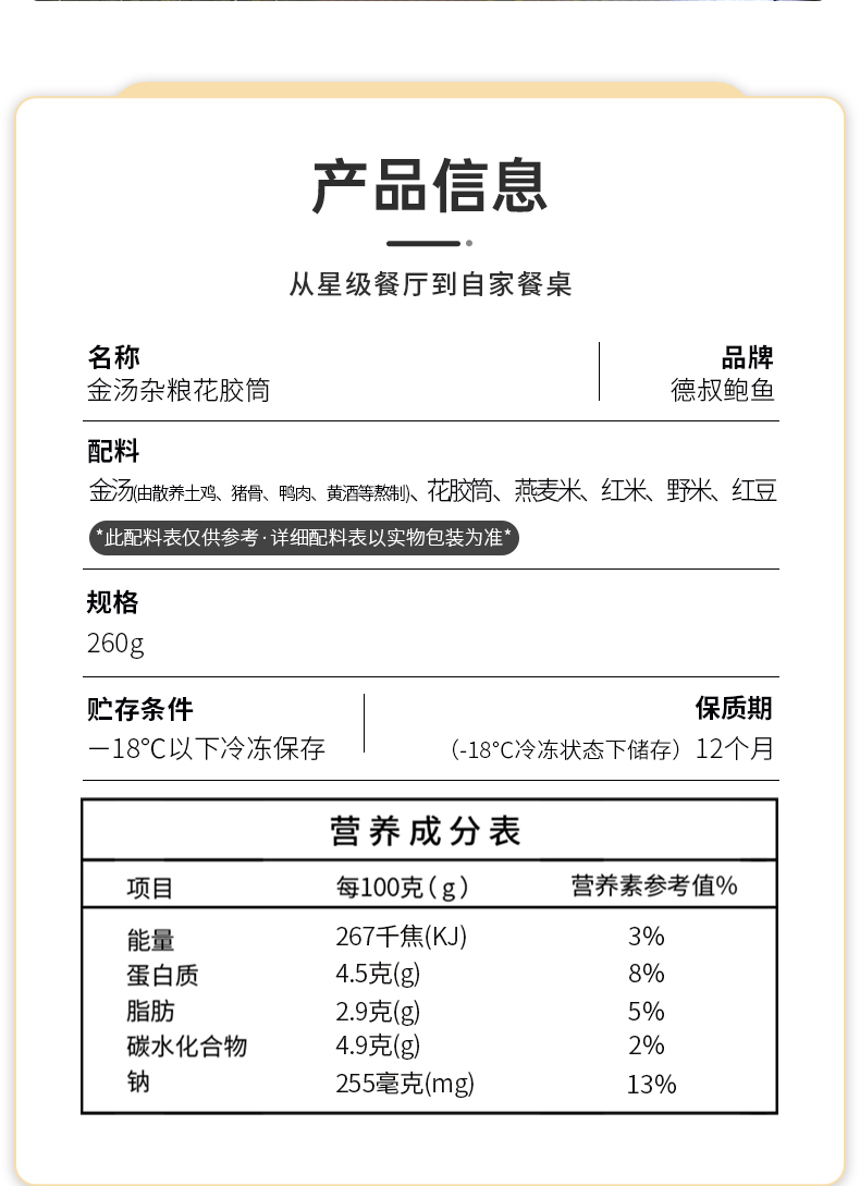 【清仓秒杀·不叠加使用复购礼】德叔鲍鱼金汤杂粮花胶筒260g燕麦野米粗粮鱼胶即食海鲜粥代餐粥【生产日期2025.3.10号,介意慎拍】【冷冻储存】
